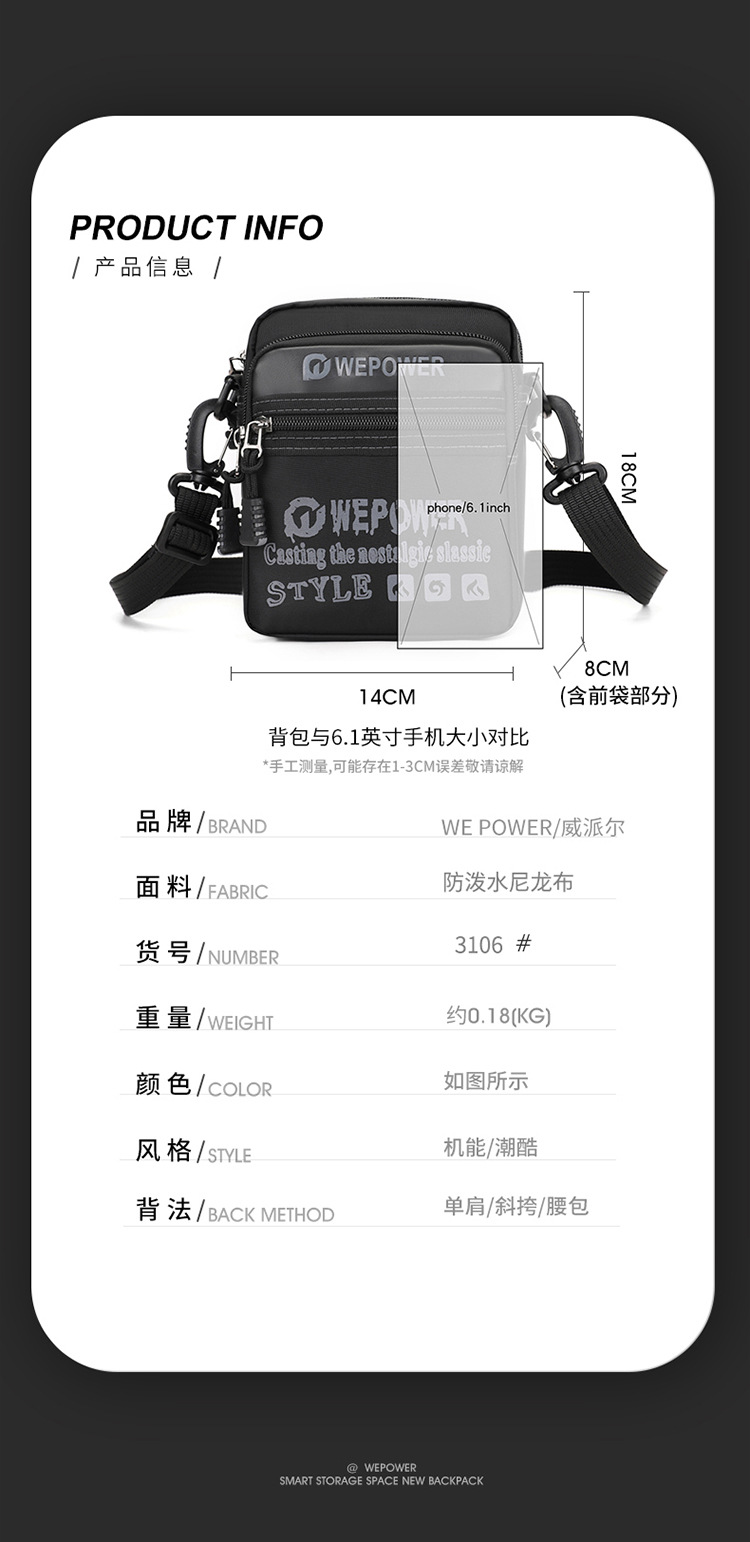 【产品货号】3106#单肩、斜挎包、可穿戴腰包