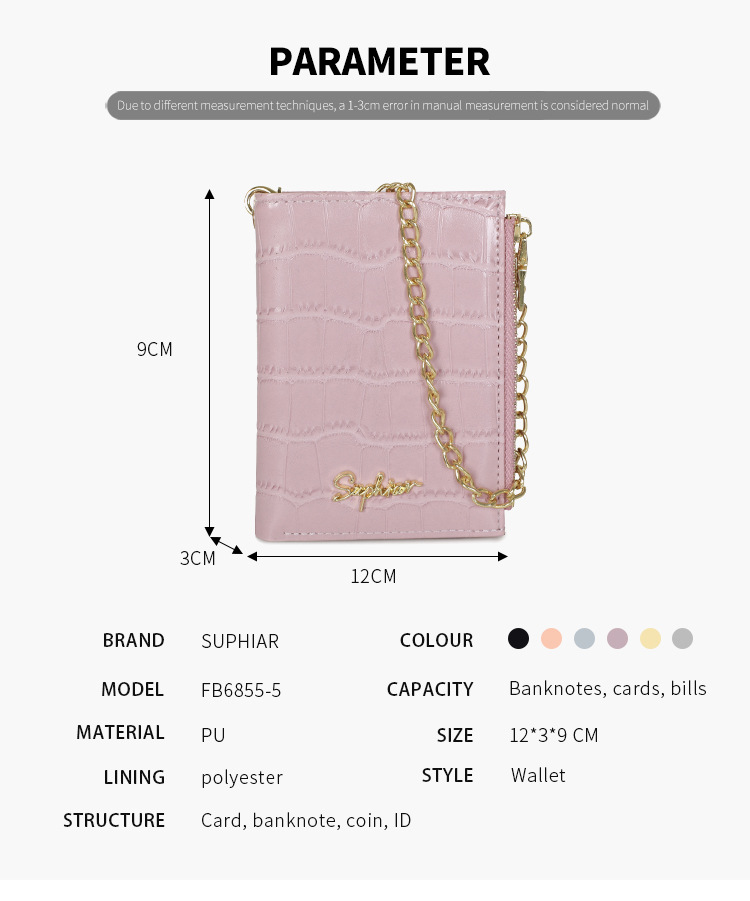 | Atributos | Cartera de mano multifuncional de mujer |