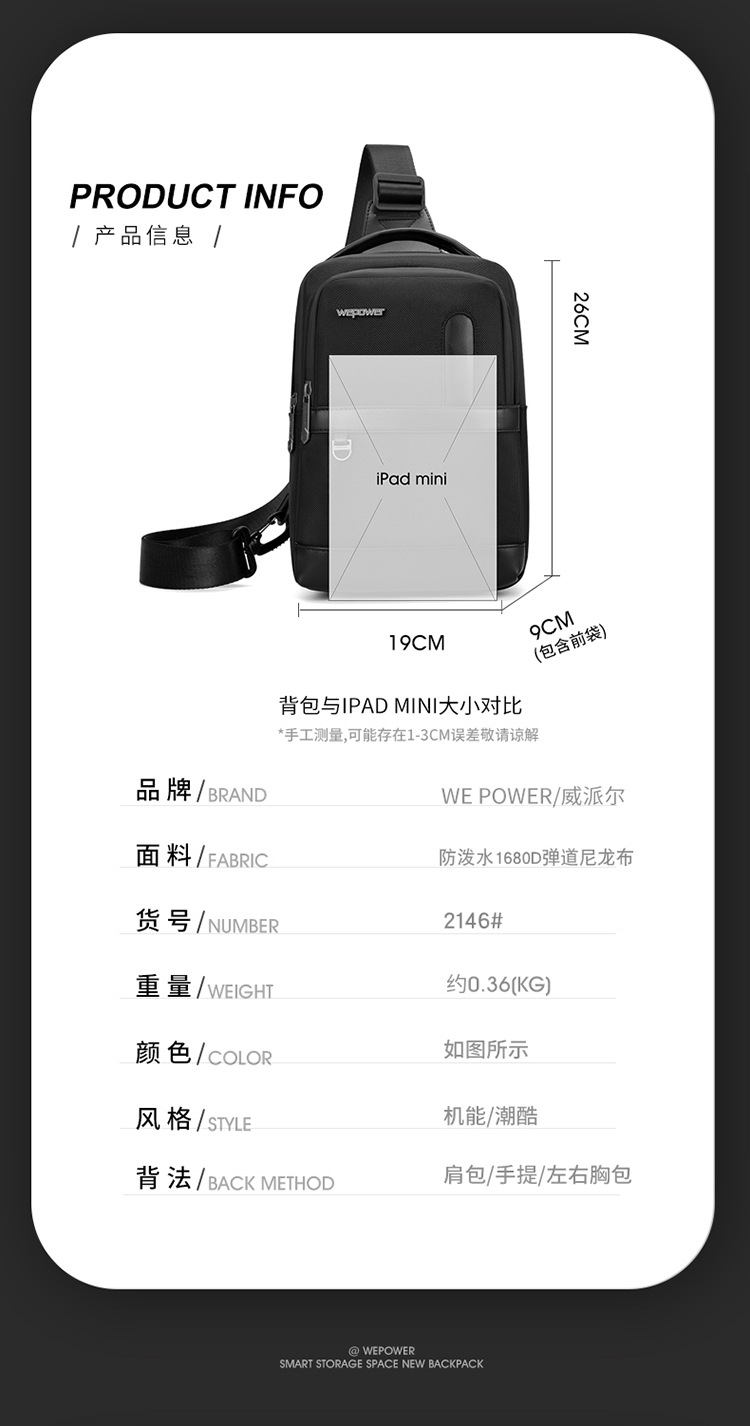 【产品货号】2146#胸包、单肩、斜挎包、可手提