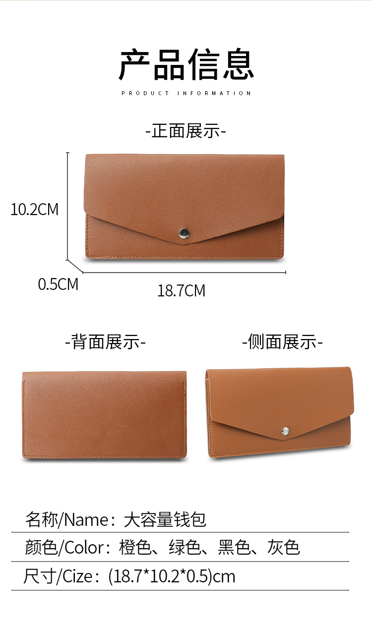 De las mujeres de estilo coreano simple cartera larga cremallera Cartera de cuero de color a juego de moda moneda monedero titular de la tarjeta bolso