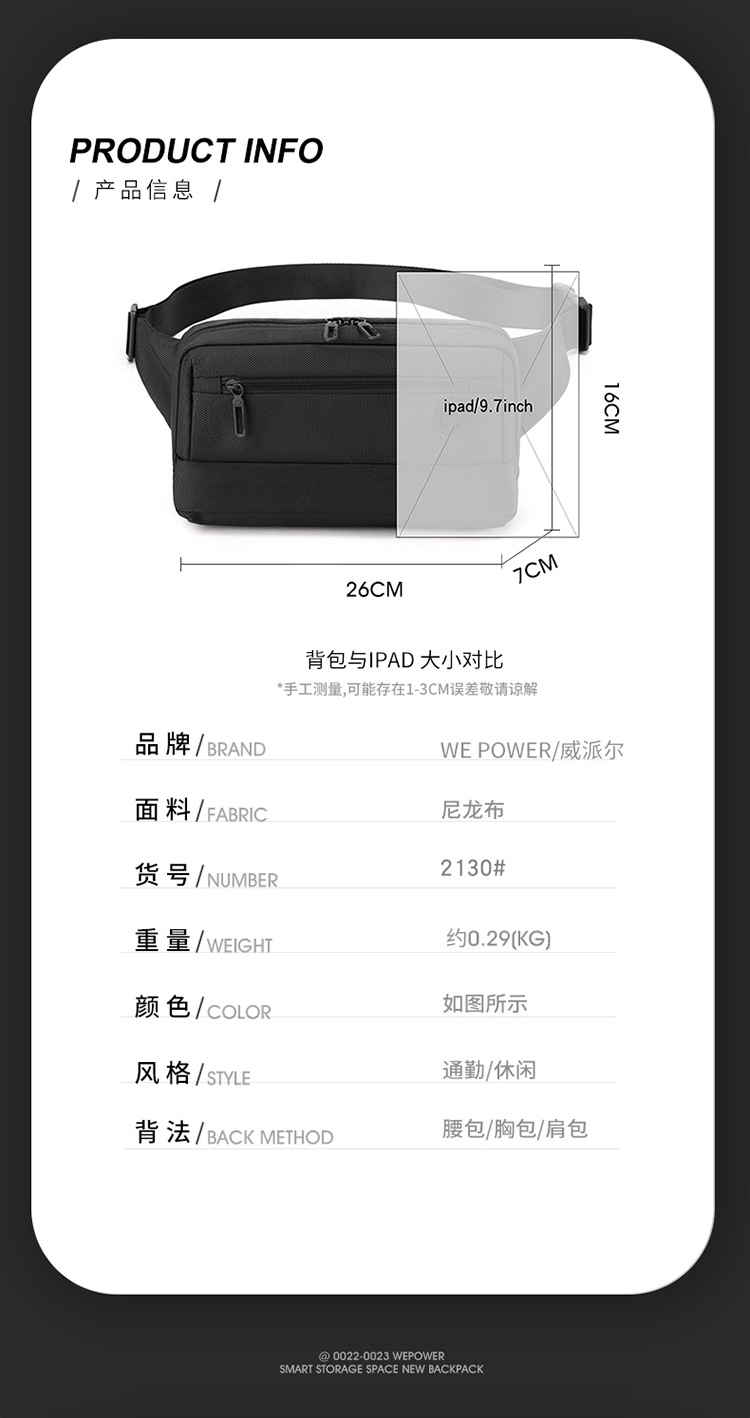 【产品货号】2130#腰包、胸包、单肩、斜挎包、