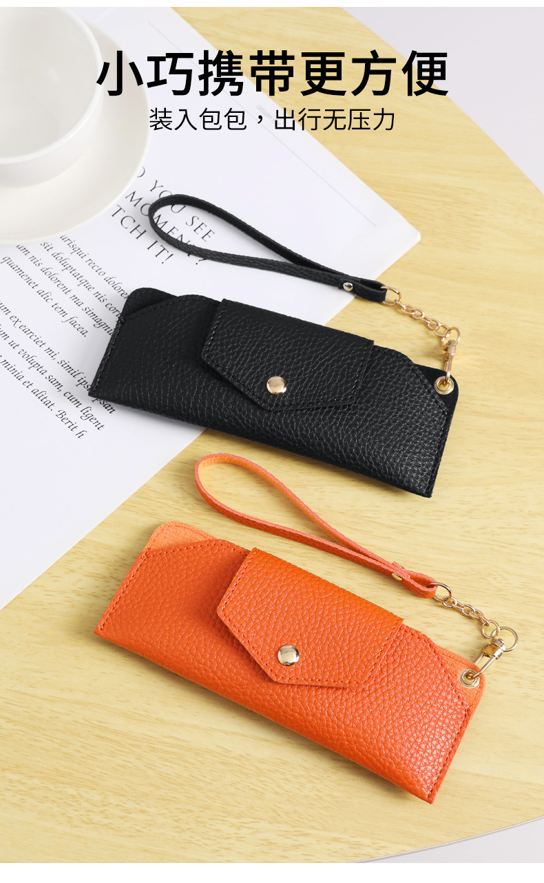 Bolsa de almacenamiento para gafas planas de hierro con cubierta de cuero PVC, gafas de sol portátiles de cuero suave a la moda, bolsa de gafas de cuero resistente a la presión