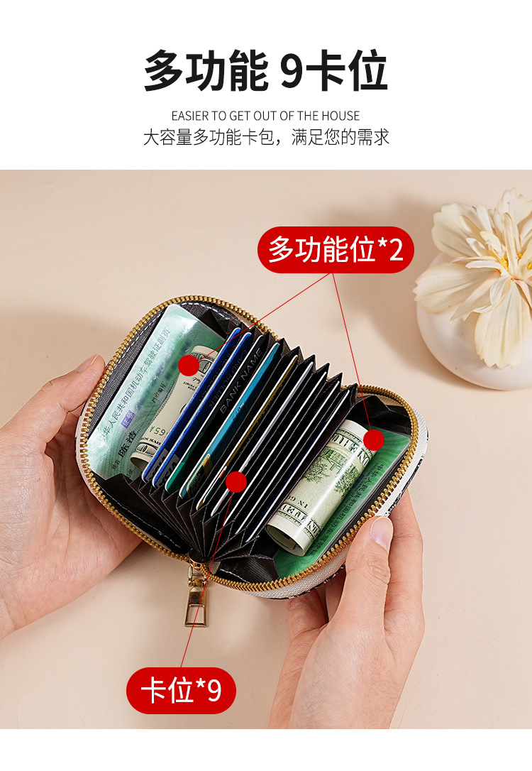 Nuevo tarjetero con cremallera para mujer, exquisito tarjetero de tarjetas múltiples de alta gama, versión coreana de monedero corto y pequeño