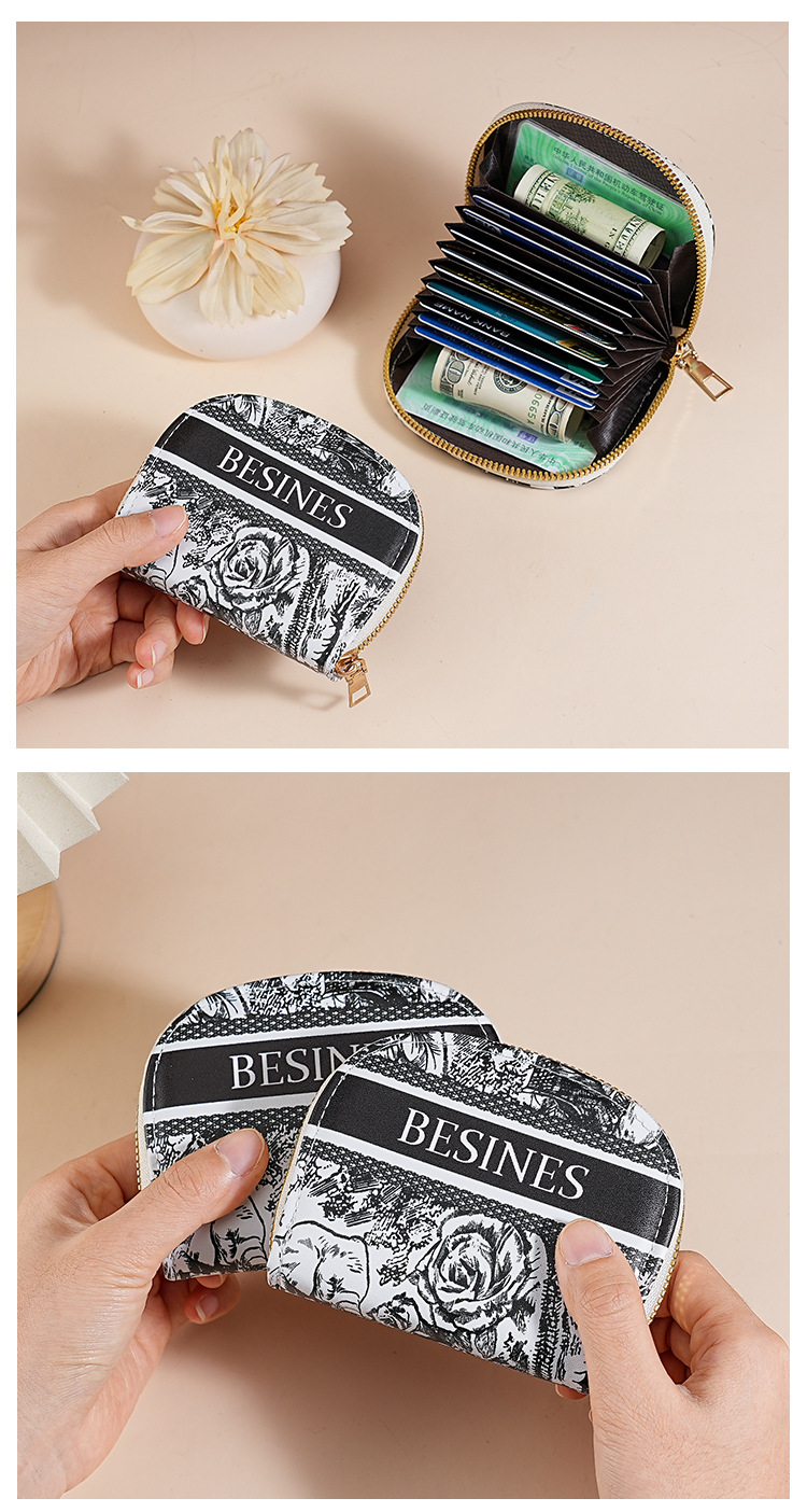 Transfronterizo emitió una pequeña bolsa de tarjetas de órgano semicircular de concha fresca, funda protectora de tarjeta de múltiples tarjetas, bolsa de almacenamiento de tarjeta de crédito