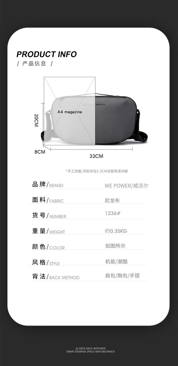 【产品货号】1236#多功能胸包、单肩、斜挎包、可手提