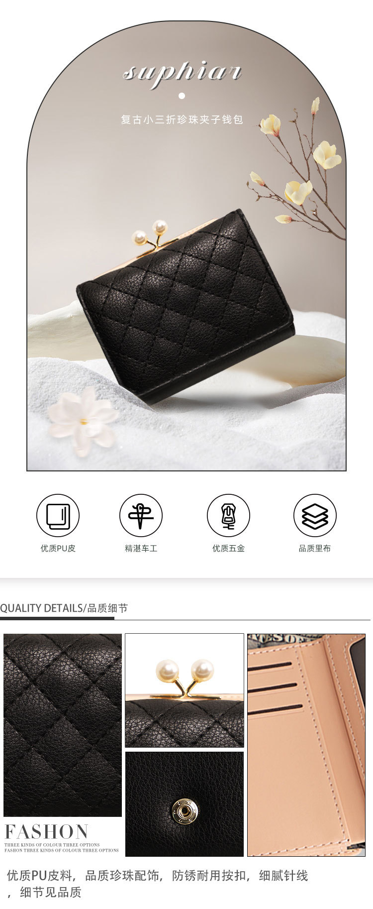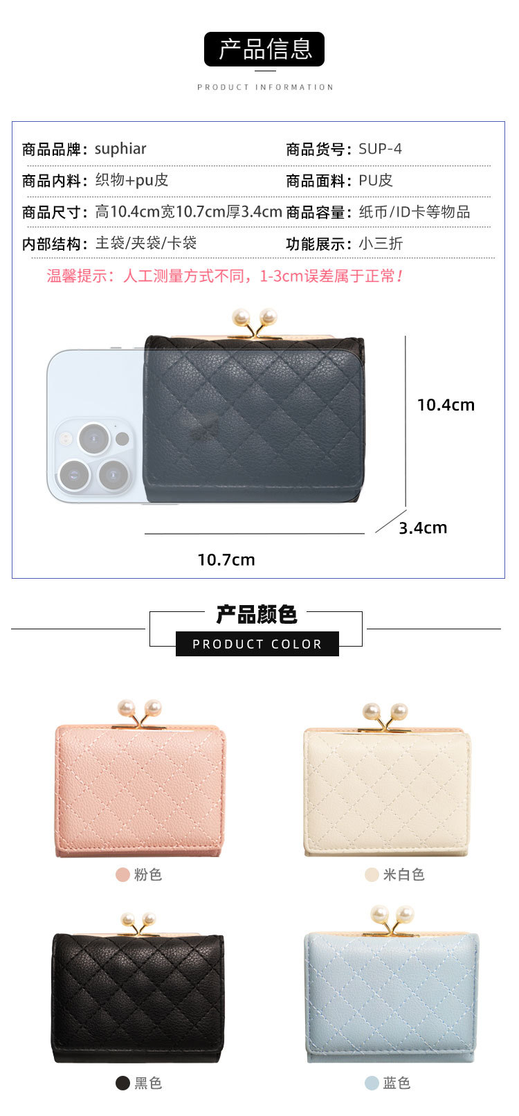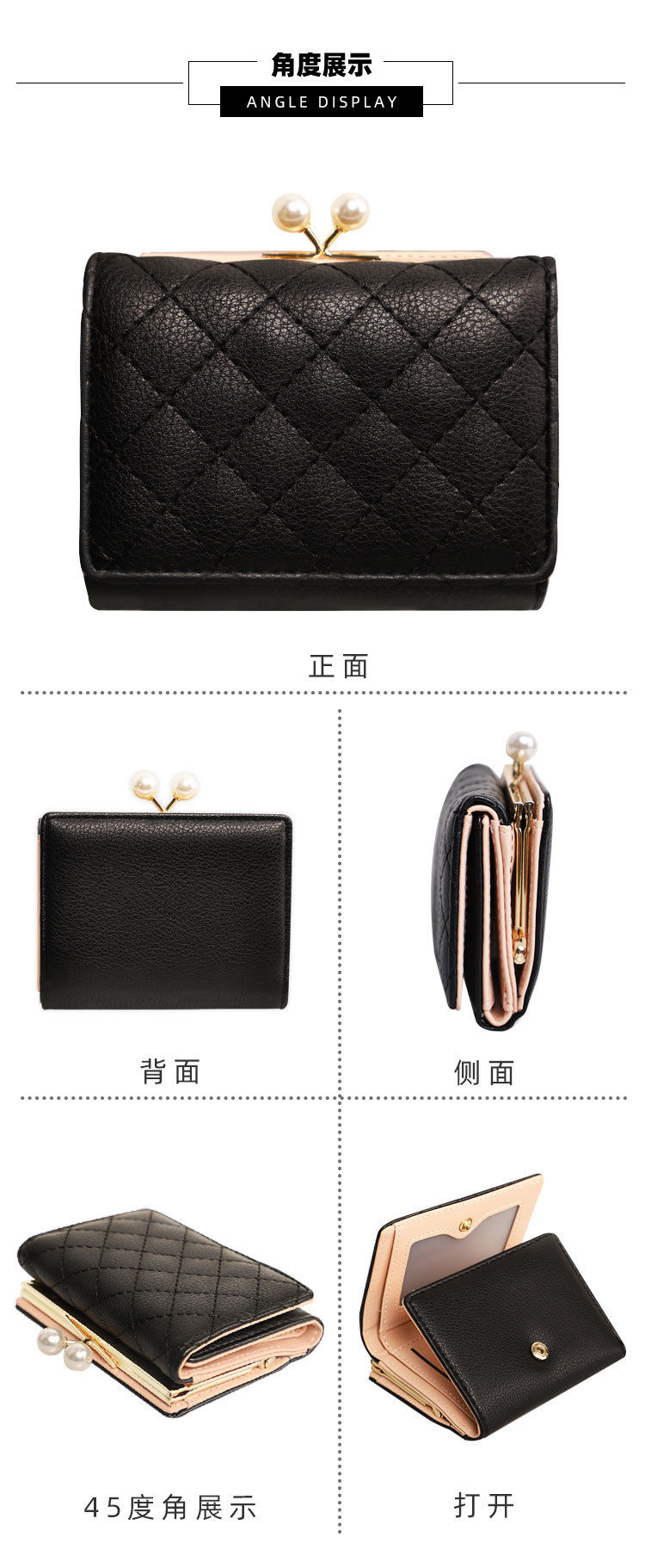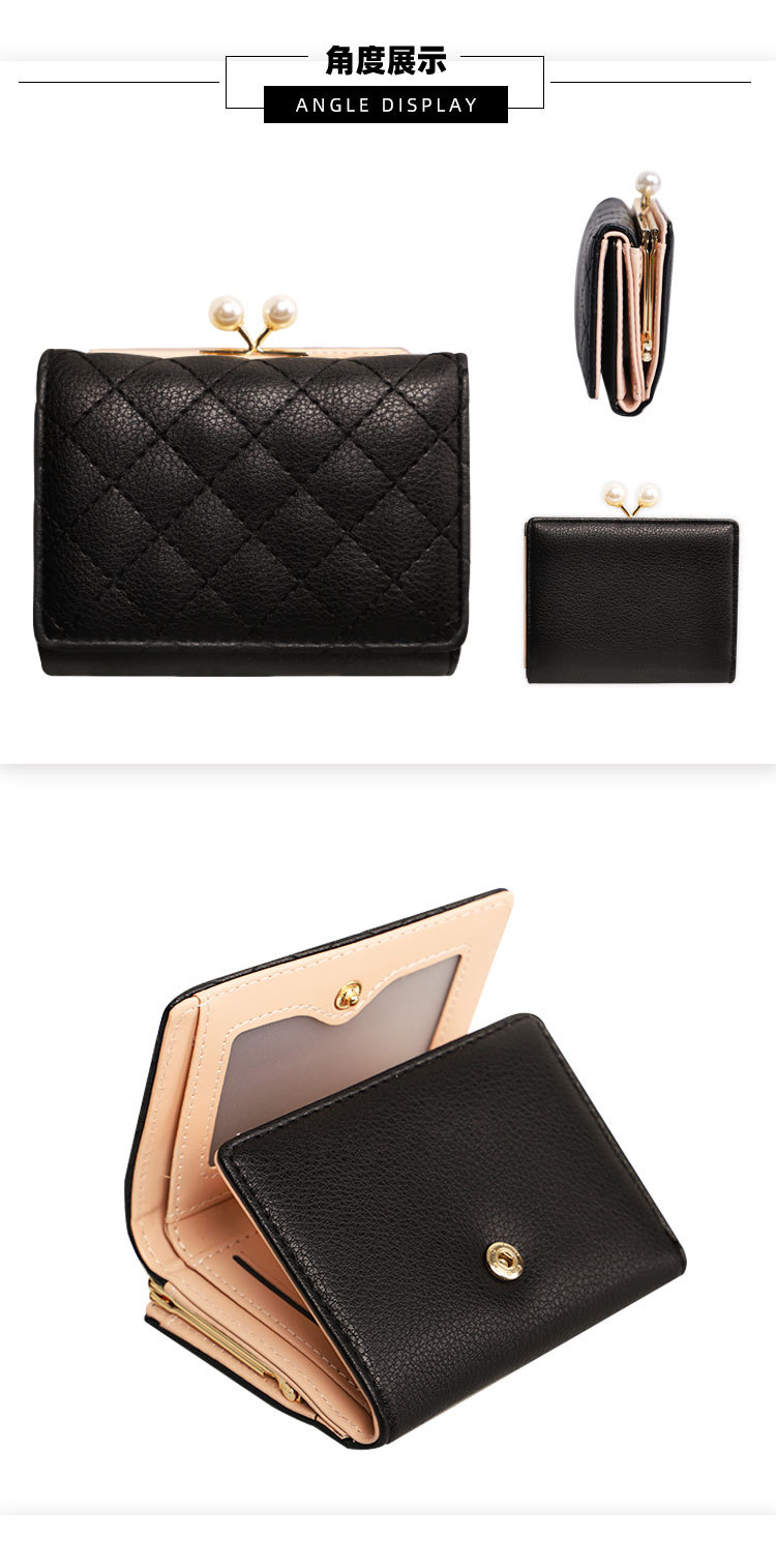 Cartera con cremallera para mujer, estilo nuevo 2024, con cierre, estilo corto triple, diseño de diamantes para estudiantes, tarjetero de PU con múltiples ranuras para tarjetas, monedero