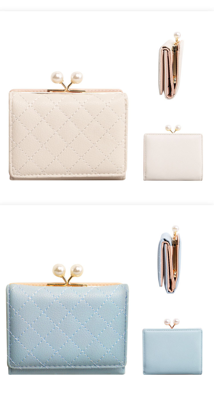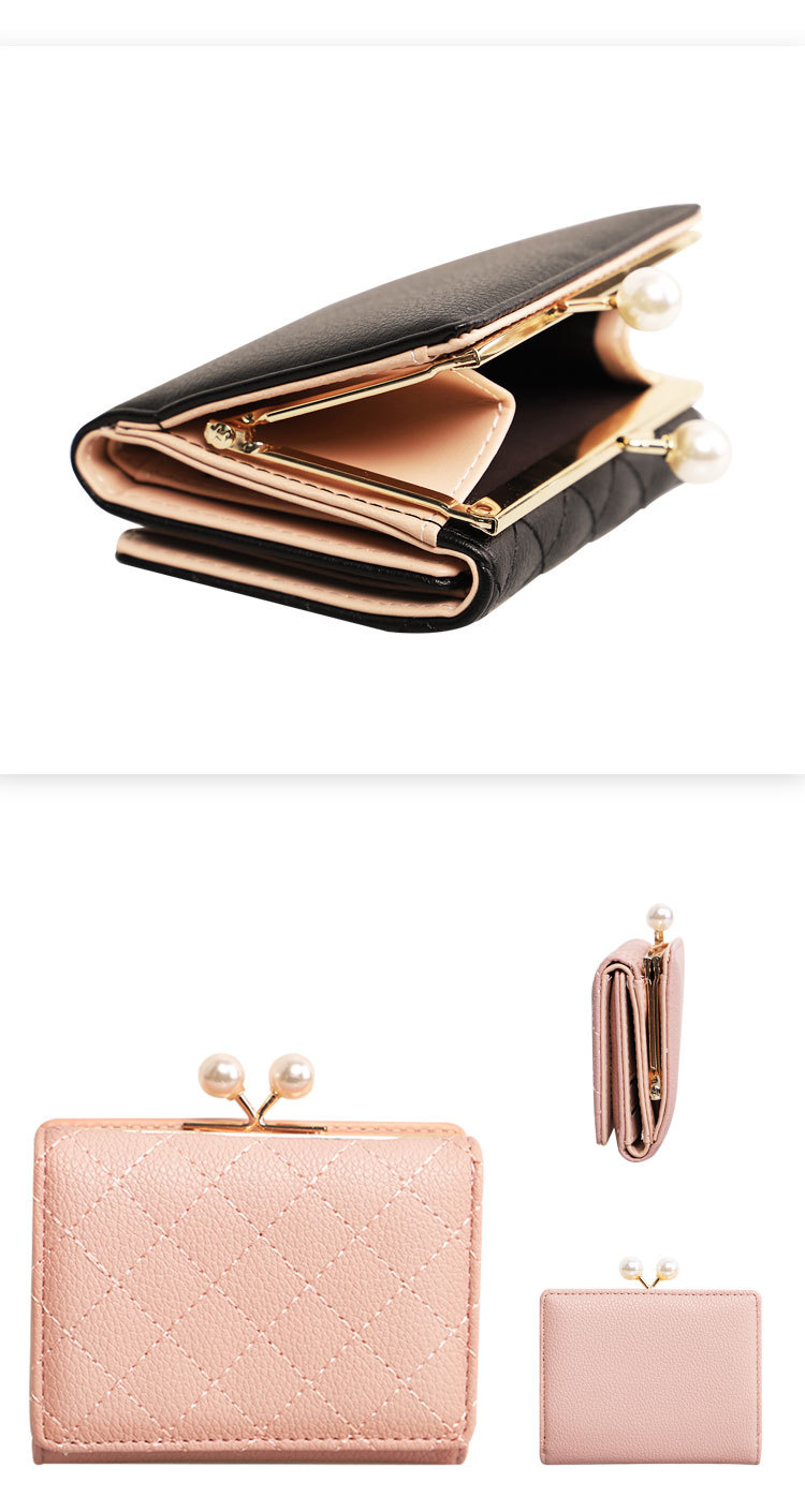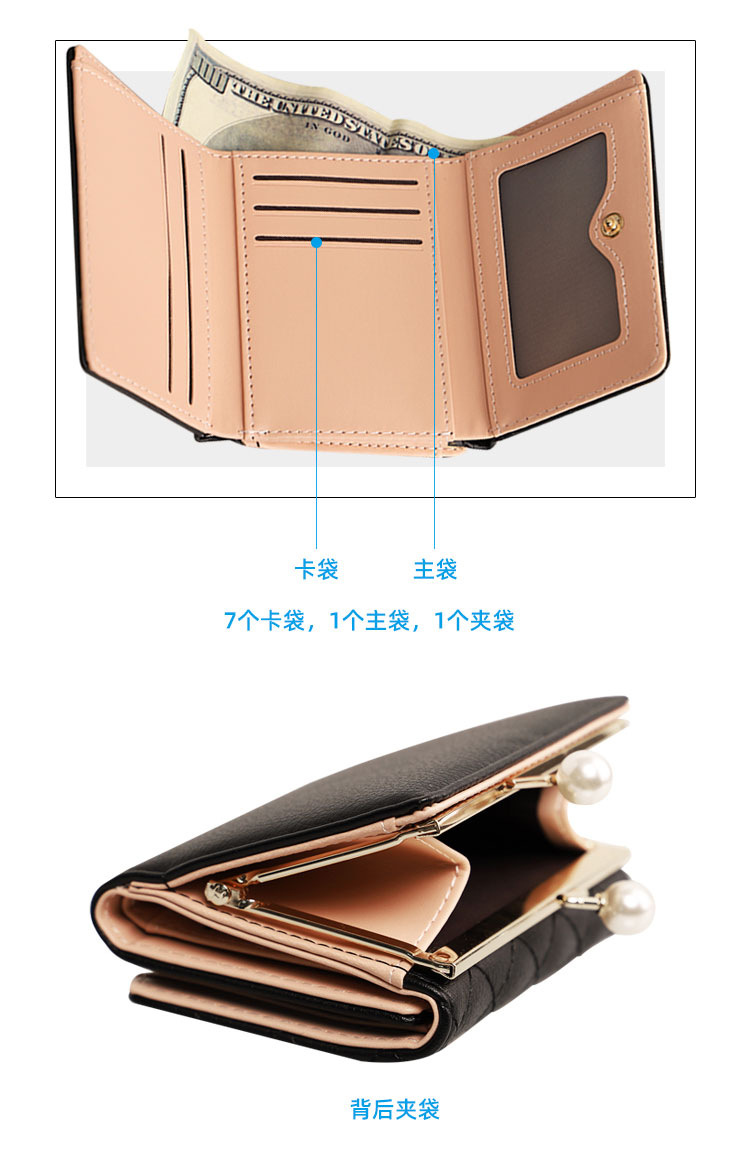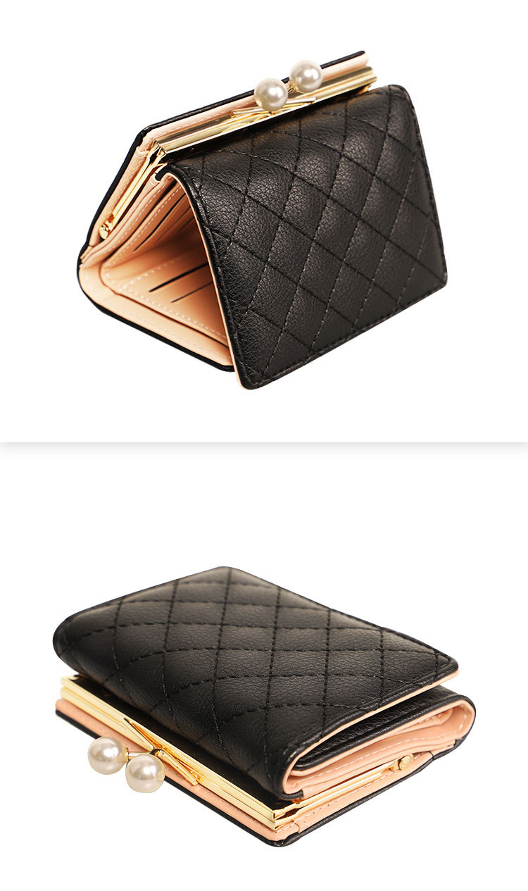 Cartera con cremallera para mujer, estilo nuevo 2024, con cierre, estilo corto triple, diseño de diamantes para estudiantes, tarjetero de PU con múltiples ranuras para tarjetas, monedero