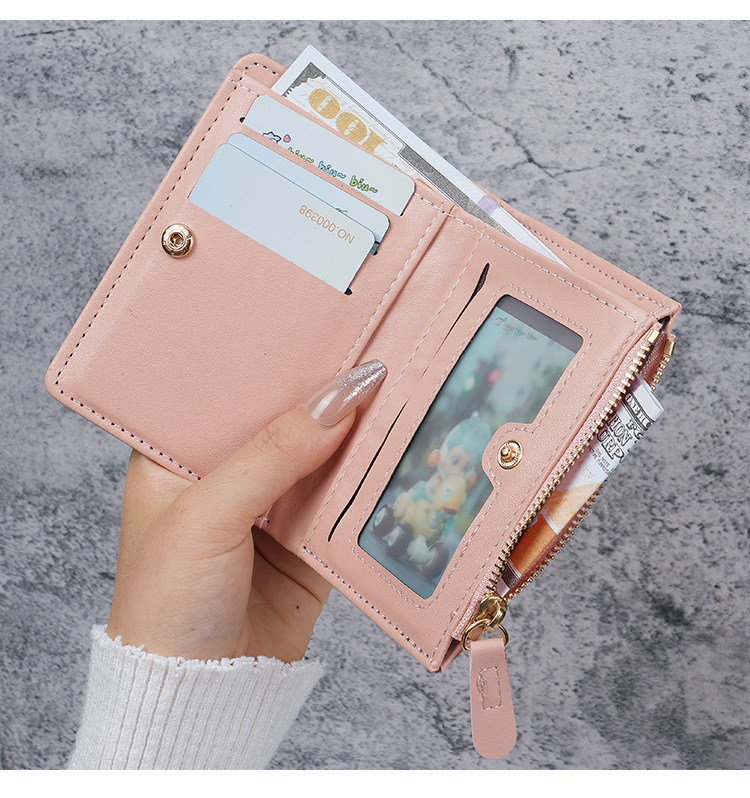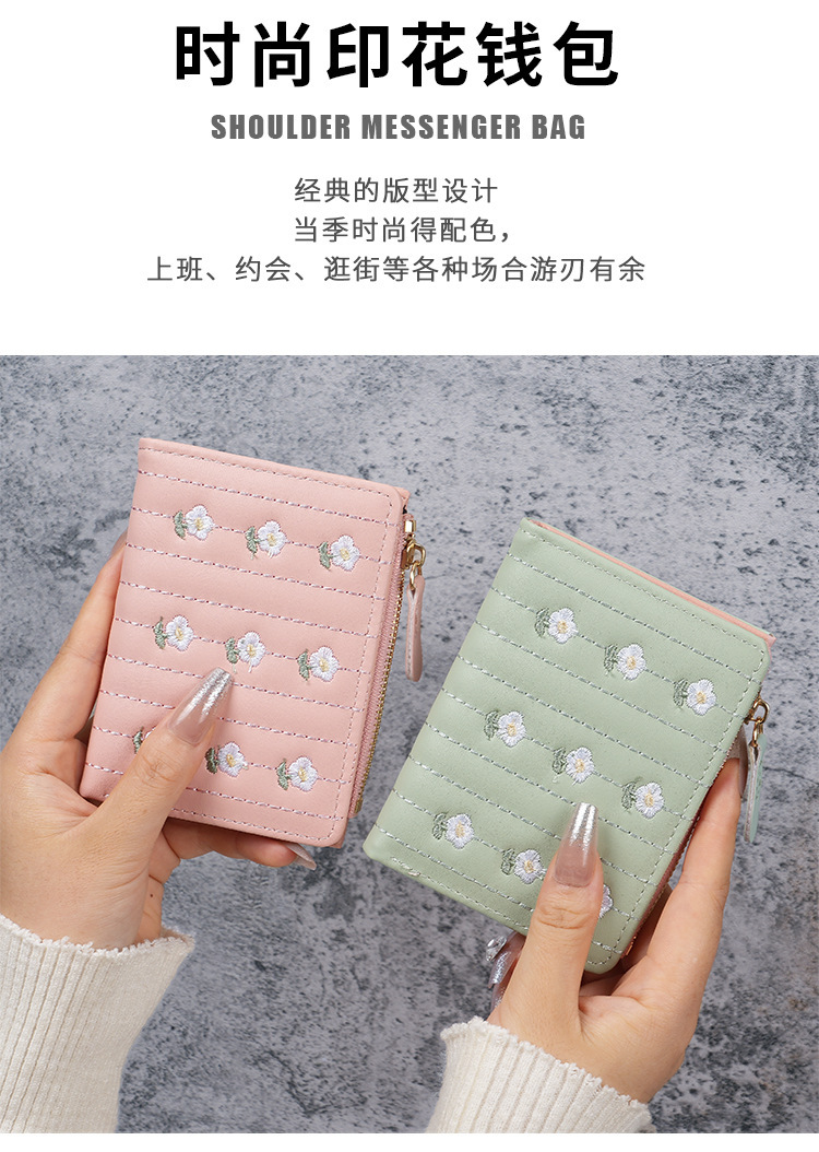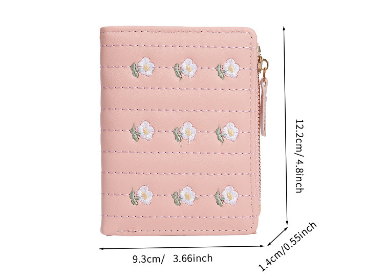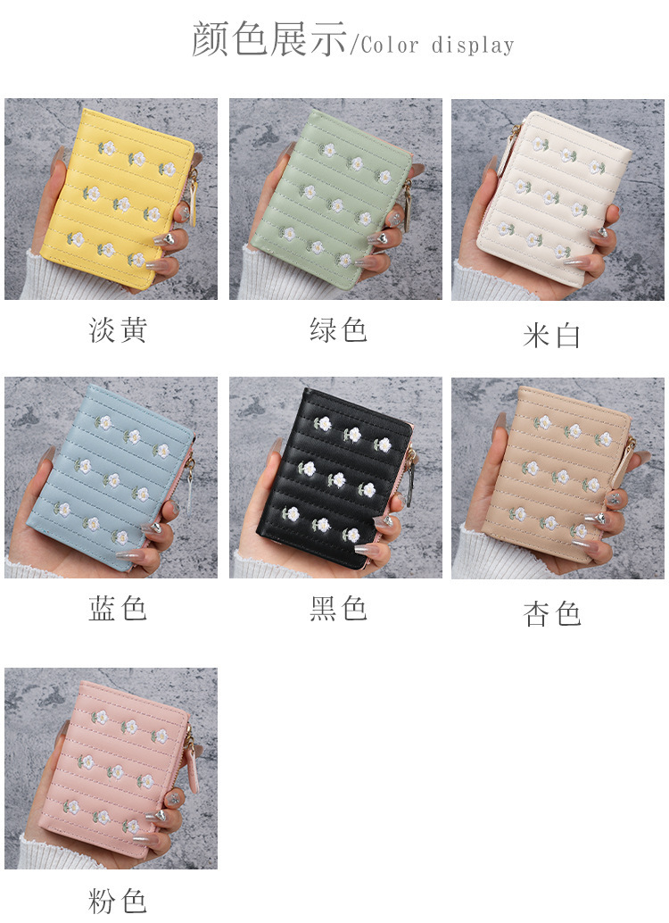 Nueva moda coreana linda billetera de mujer bordada al por mayor simple estilo corto dos veces cambio bolsa de tarjeta wallet