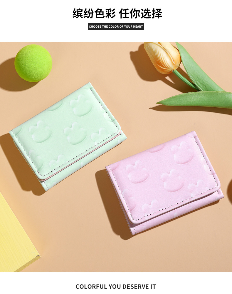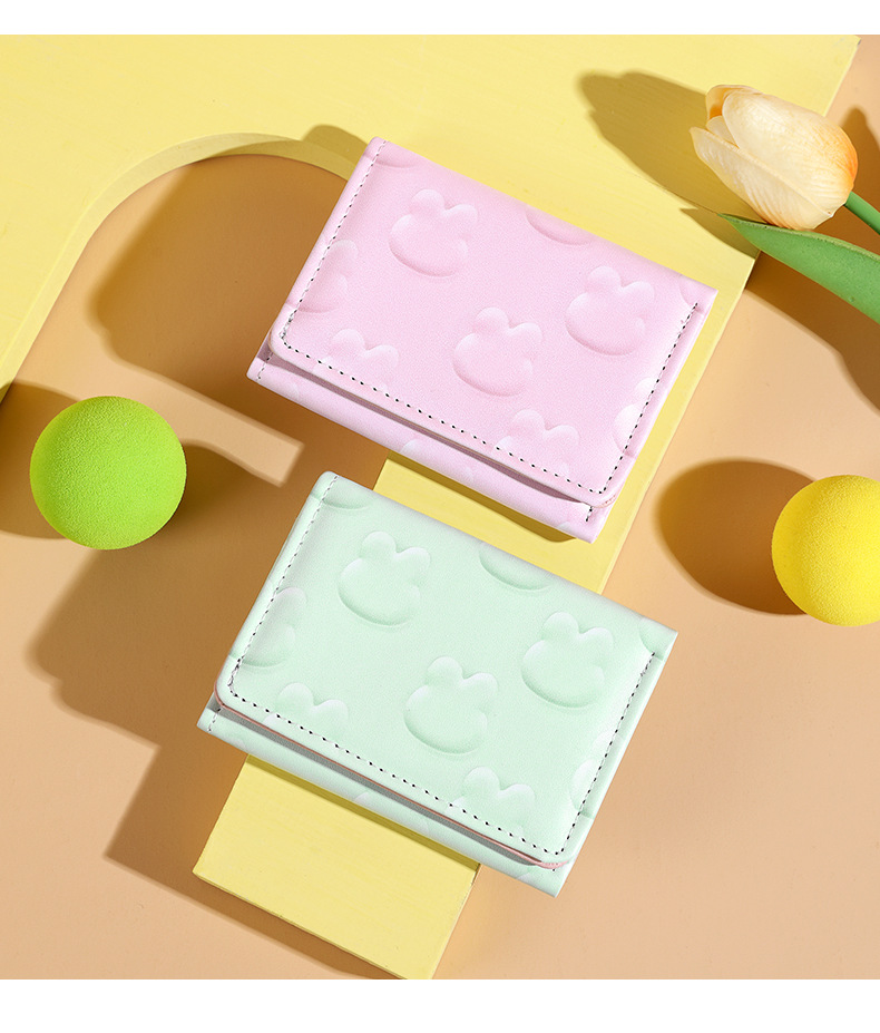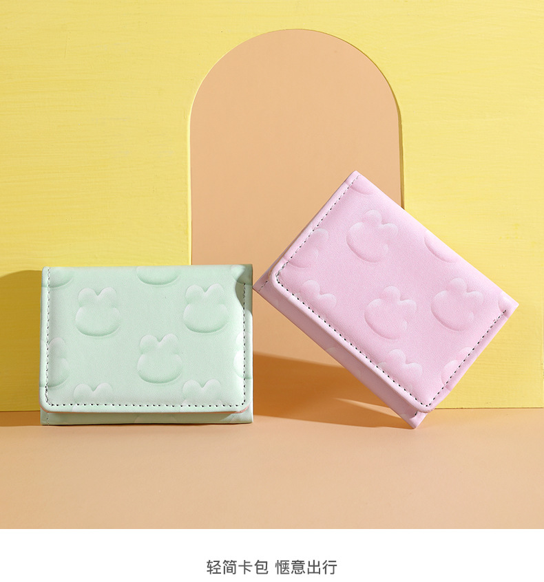 2024 nuevo diseño coreano de conejo fresco y lindo nicho de diseño de tres plegados corto multifuncional billetera estudiantil