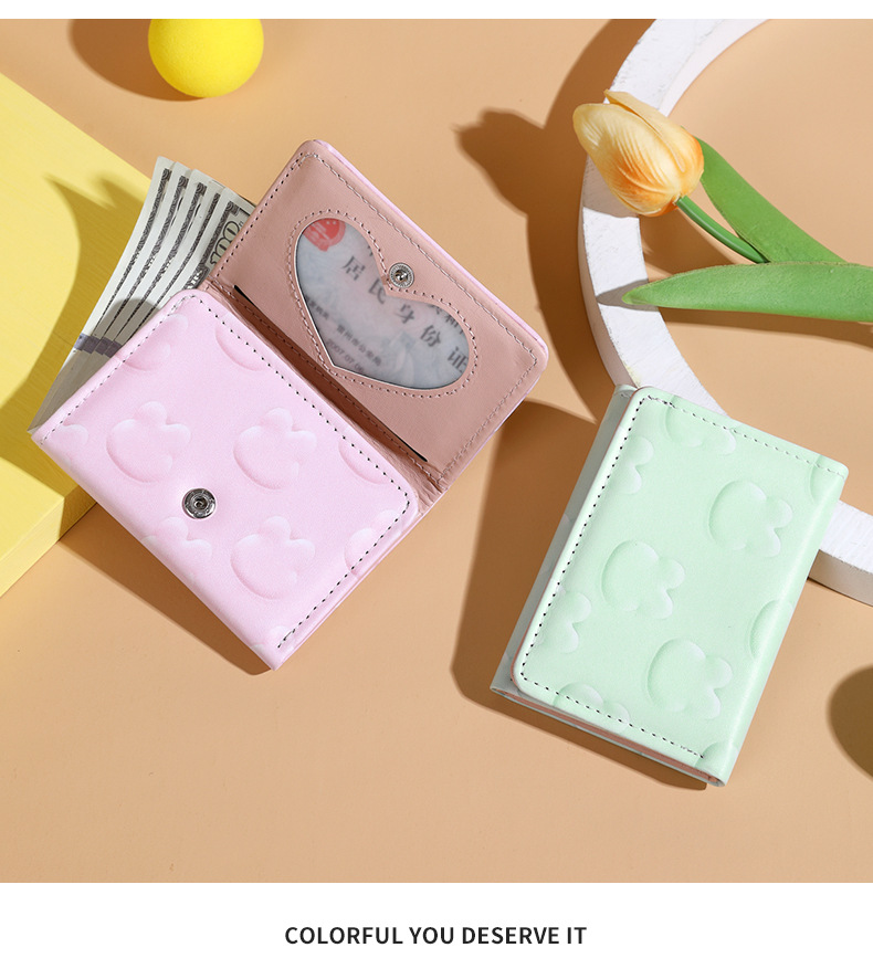[Adornos de amor] Yadas de las mujeres pequeña cartera al por mayor amor en relieve pu corto monedero cartera