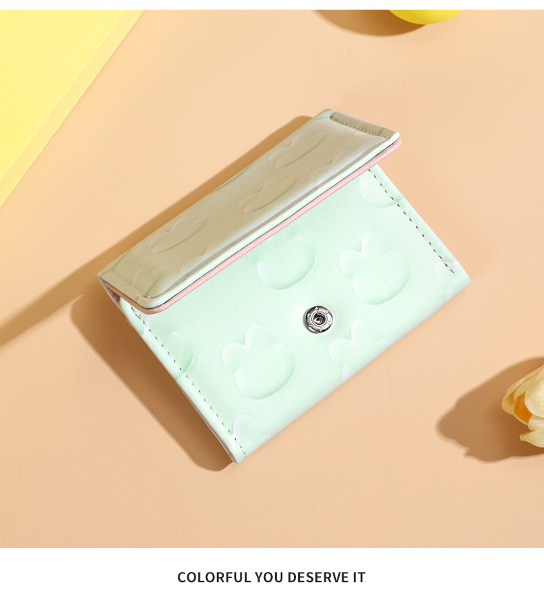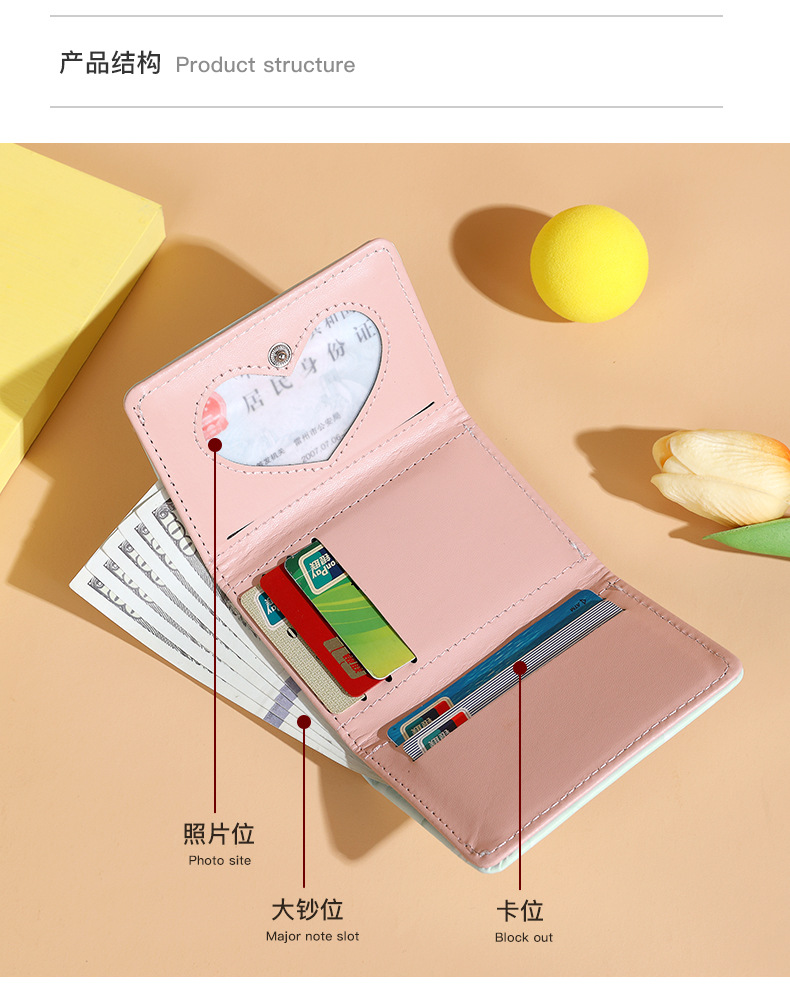 Estilo coreano pequeña cartera de las mujeres Tri-fold corto impreso lindo estudiante simple multi-tarjeta monedero de dibujos animados billetera de las mujeres