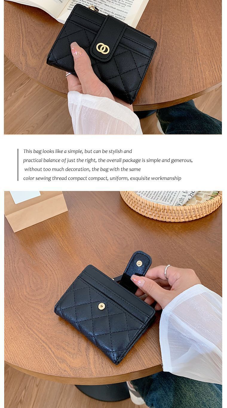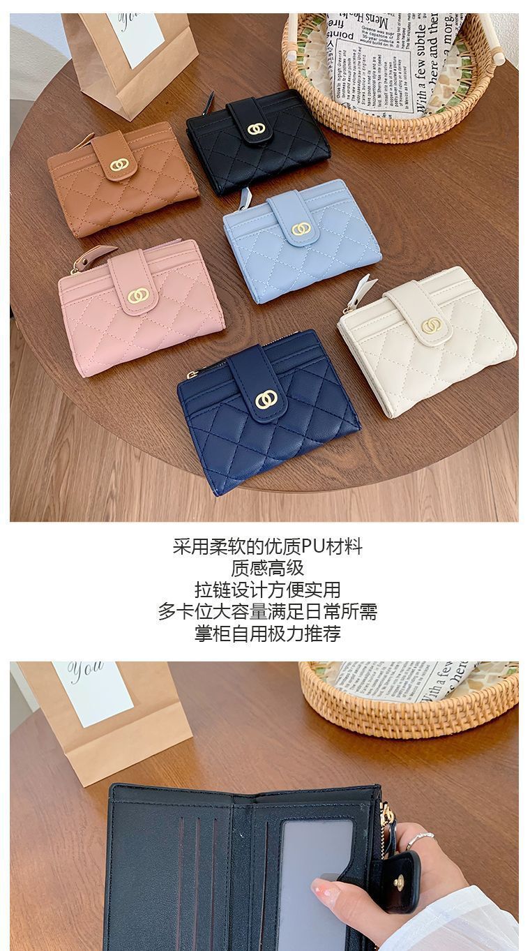 Versión coreana de la billetera de las señoras, bordado de fragancia pequeña, monedero de PU multifuncional, billetera transfronteriza de sentido avanzado para mujer
