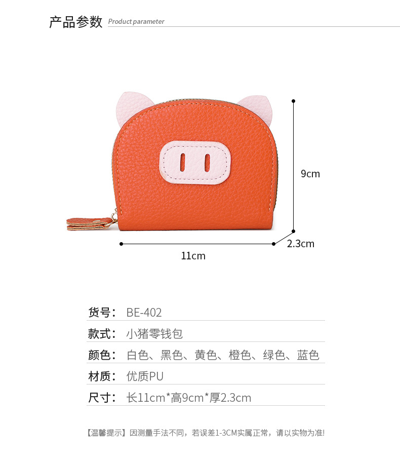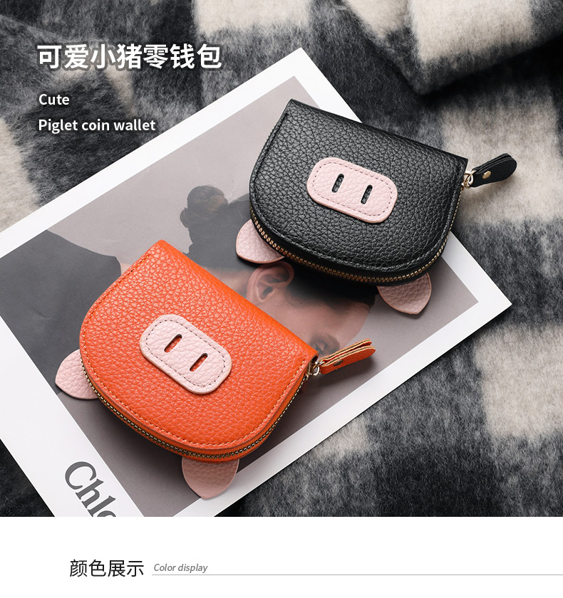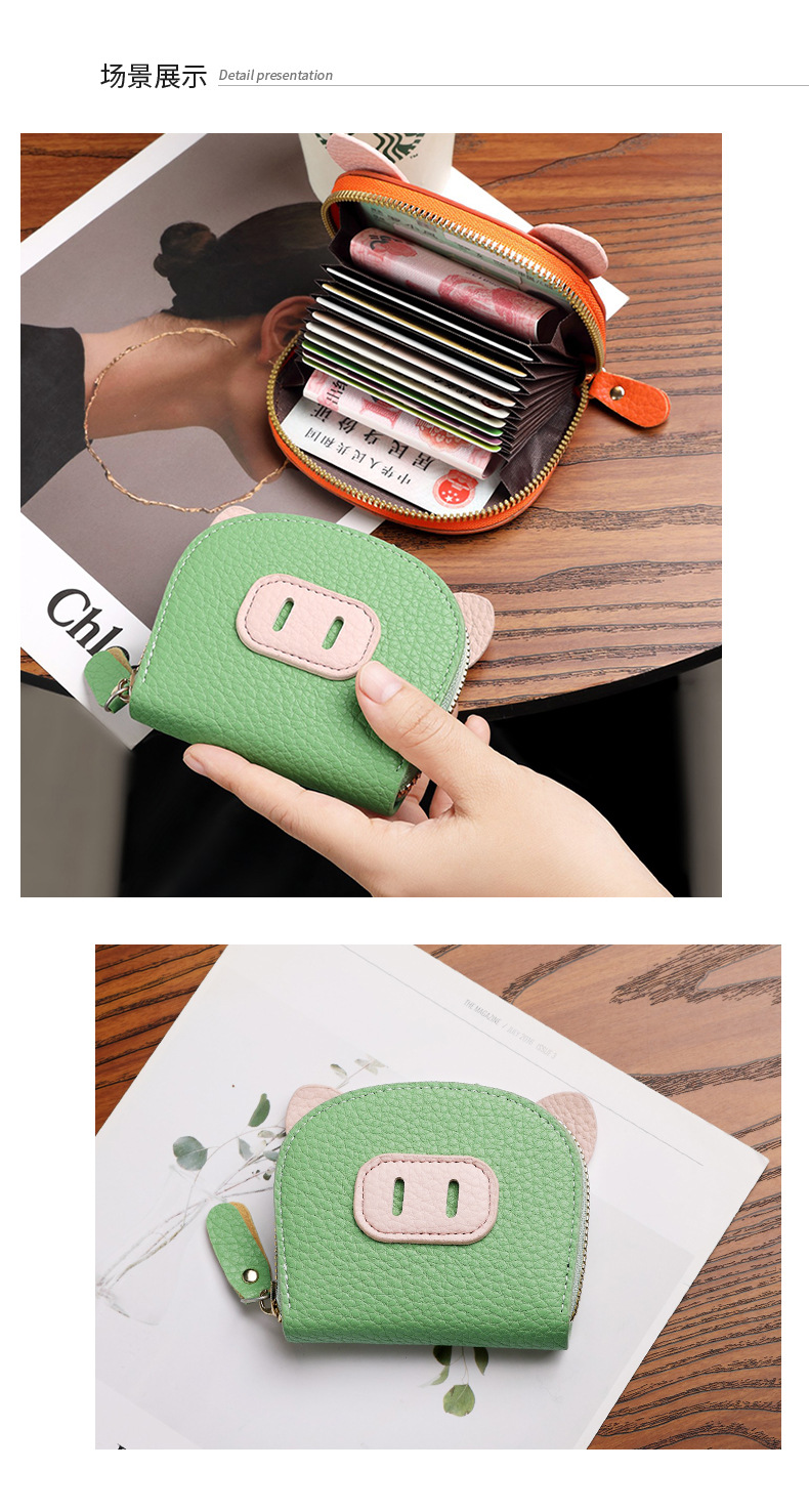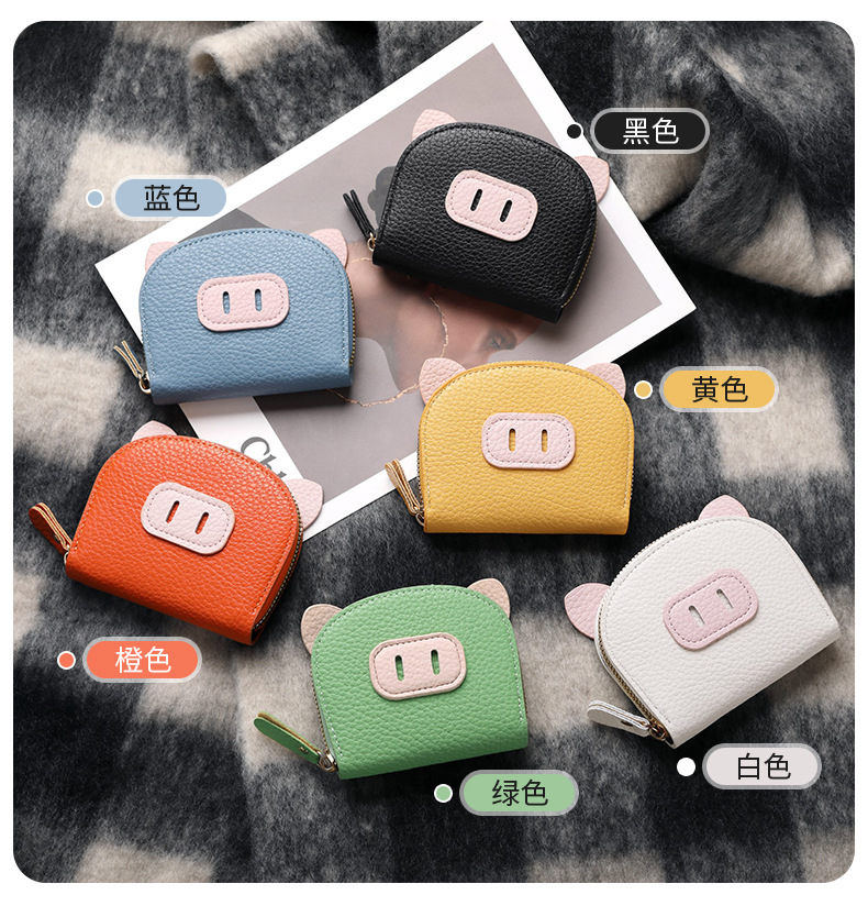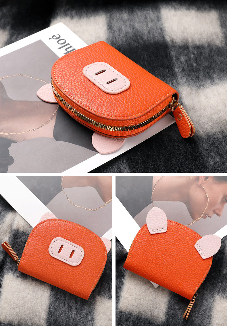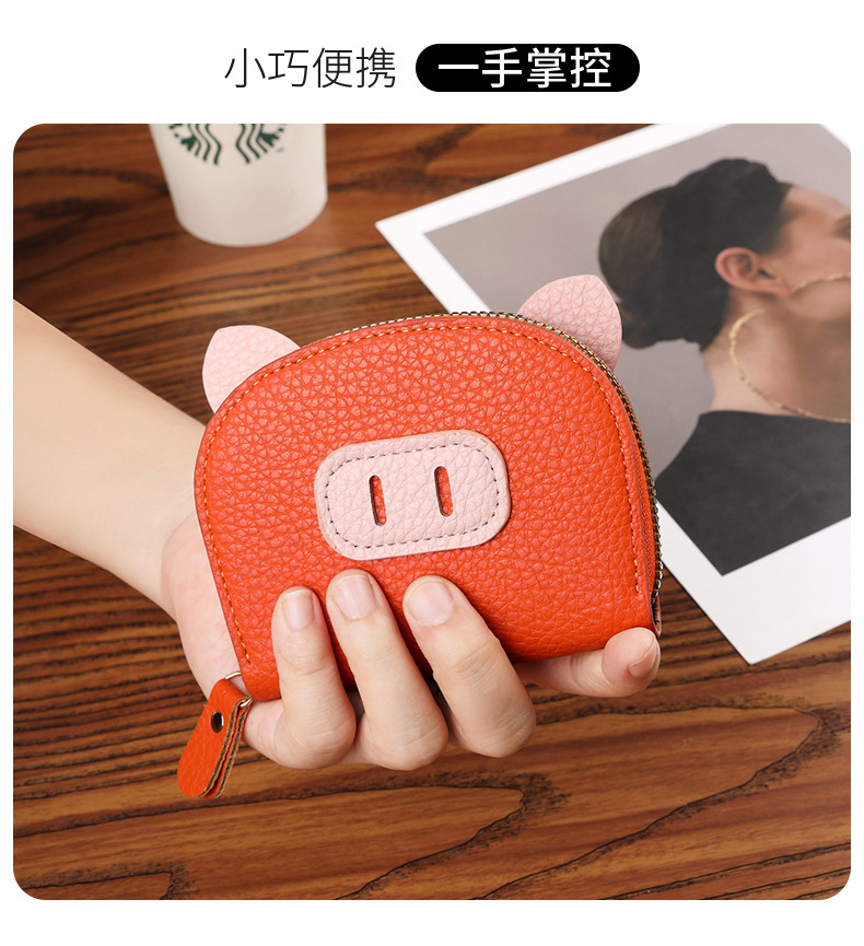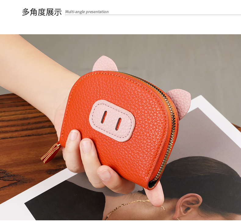 Nuevo tarjetero de órgano de celebridades de Internet, femenino, ligero, estudiante, cerdo, cremallera de cerdo, tarjetero de múltiples posiciones, tarjetero de cuero suave, monedero