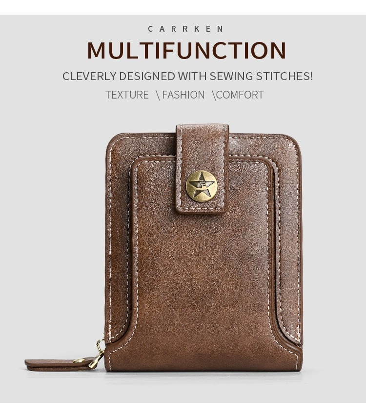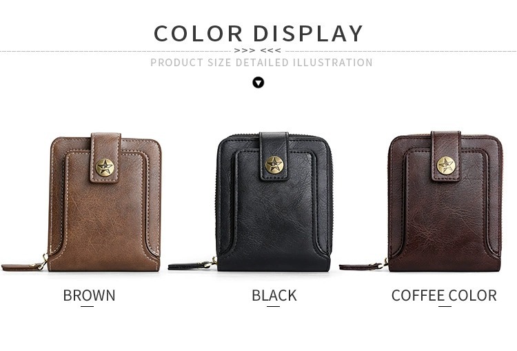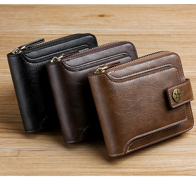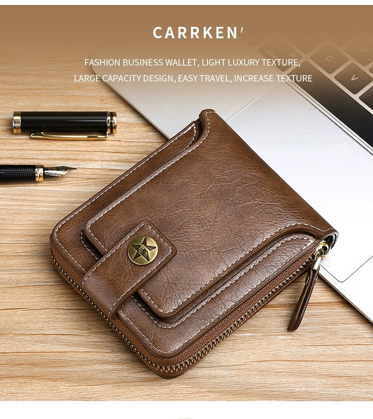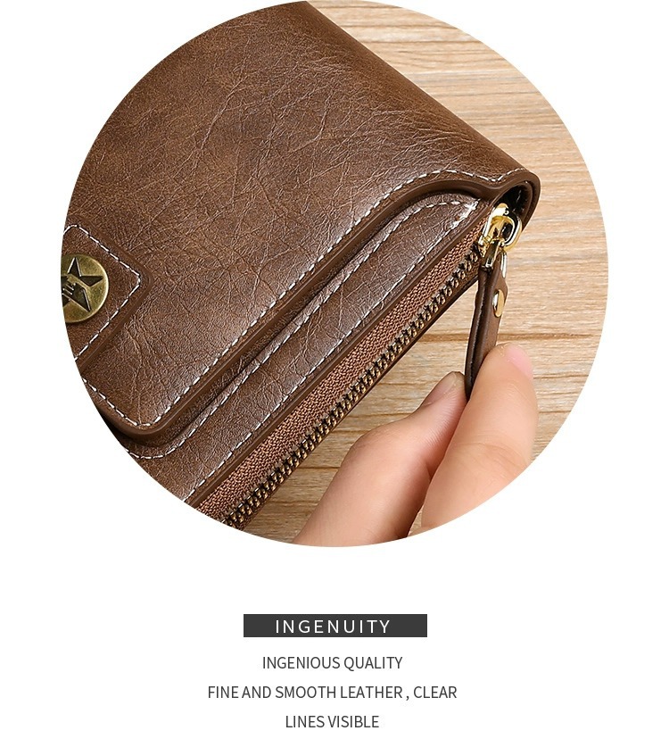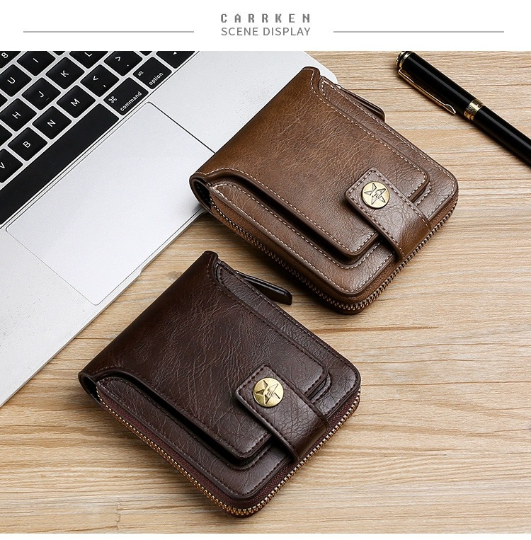 Cartera corta de hombre de comercio exterior Europa y América de moda multifuncional retro cartera horizontal con cremallera bolsa de tarjeta de cremallera