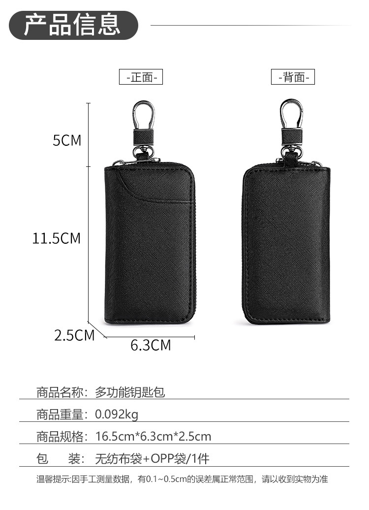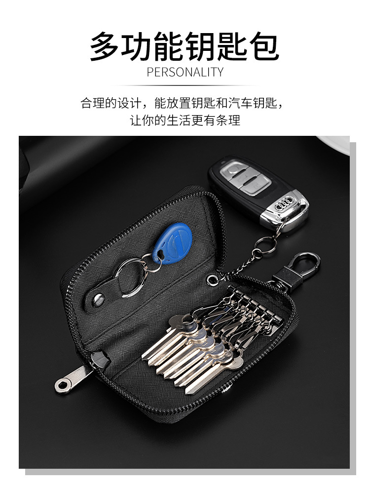 Nuevo paquete de llaves de automóvil con cremallera de gran capacidad para hombres, bolsas de tarjetas de cintura para mujeres, llaveras de moda multifuncionales para parejas