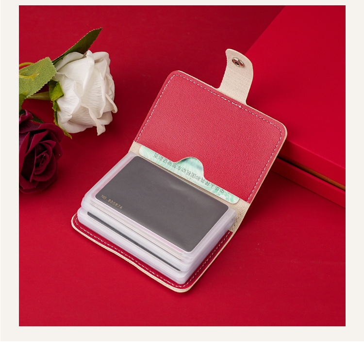 Engrosado extraíble titular de la tarjeta de almacenamiento multi-Tarjeta pu apilado titular de la tarjeta de visita de cuero con botón a presión titular de la tarjeta de lote pequeño