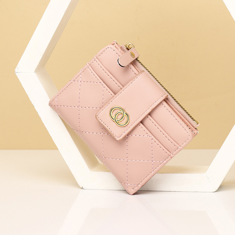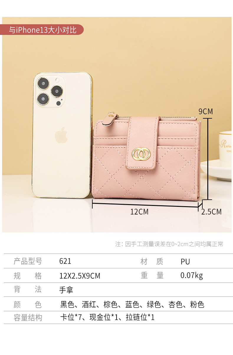 Cartera nueva para mujer, bordado de fragancia pequeña, posición de varias tarjetas, monedero delgado, billetera corta para mujer, billetera triple para mujer