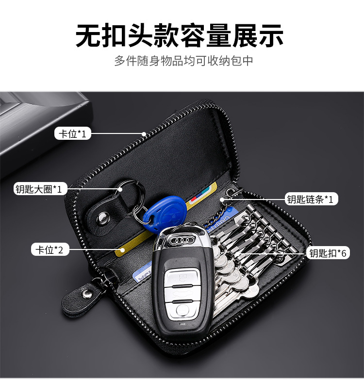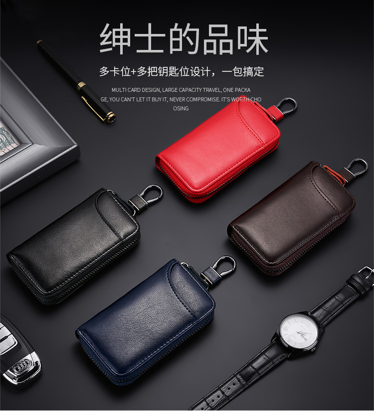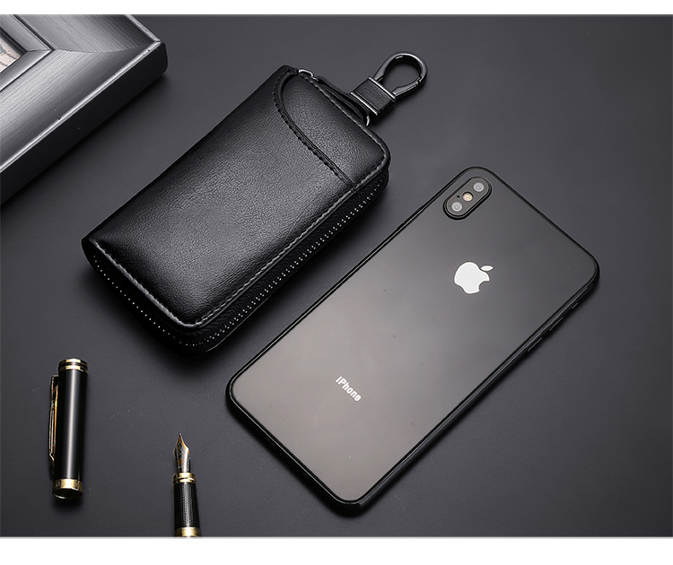 Bolso de llave bolso de la llave de los hombres de gran capacidad de cuero suave negocio hogar simple cremallera cintura colgando coche Multi-Función bolsa de la Tarjeta