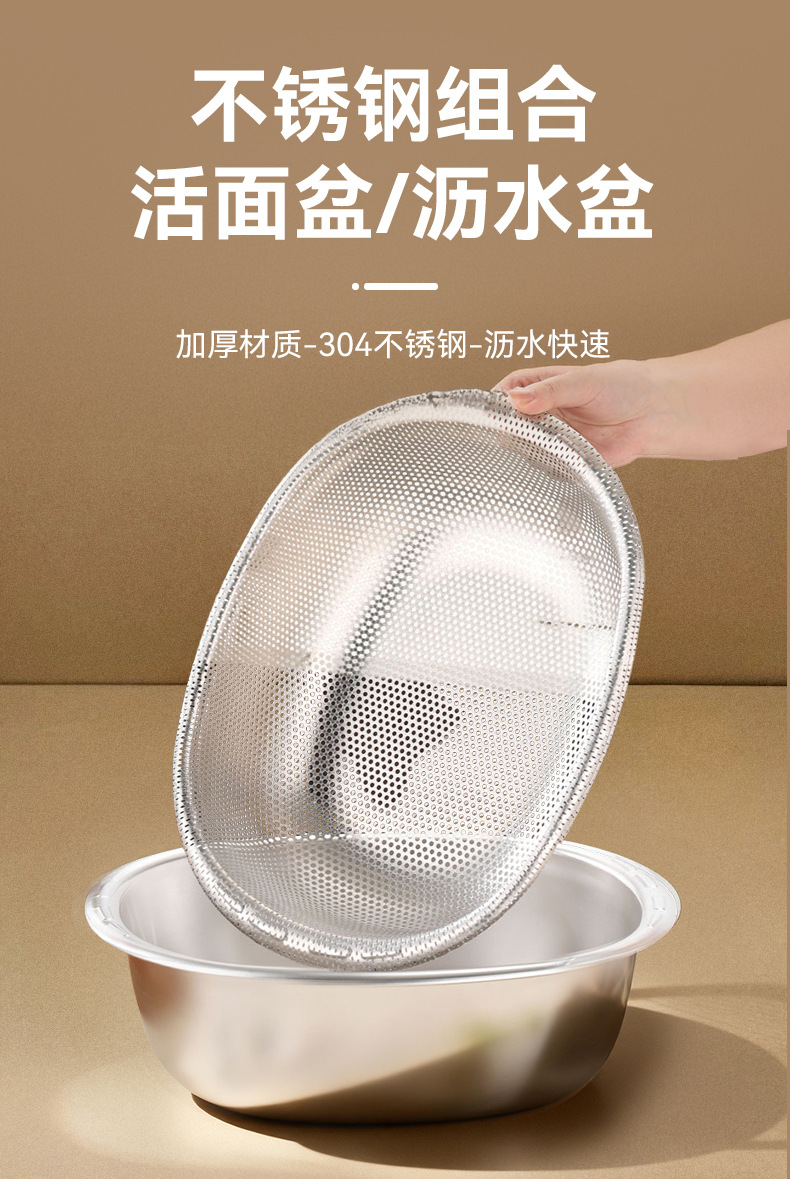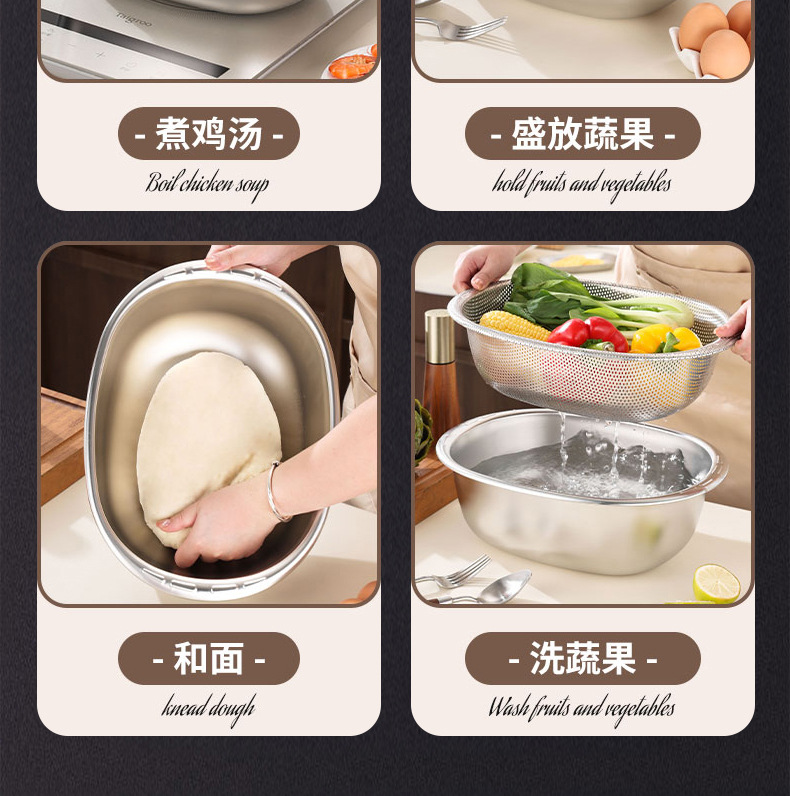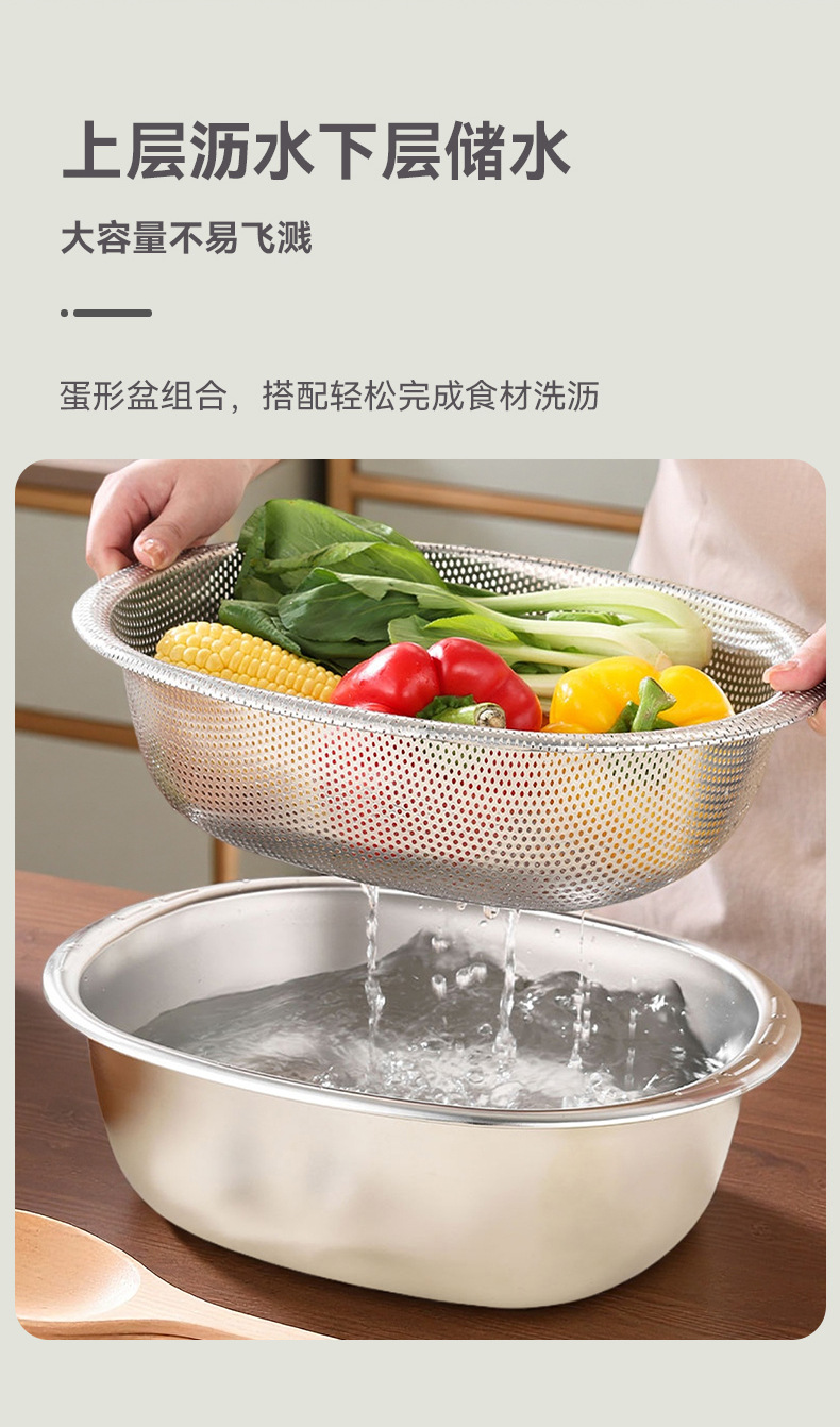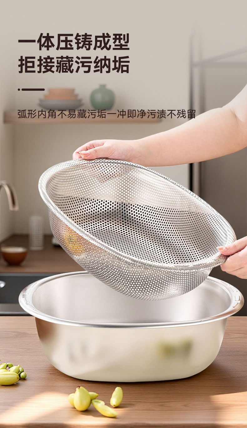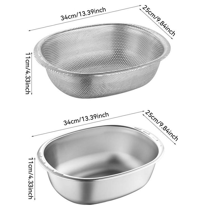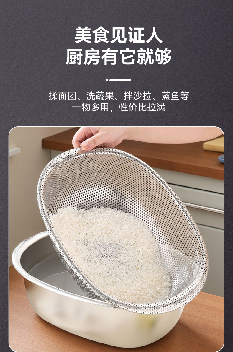 Cuenca de drenaje grande de acero inoxidable para lavar verduras domésticas tamiz de arroz para cocina doméstica multiuso de gran capacidad cuenca de arroz