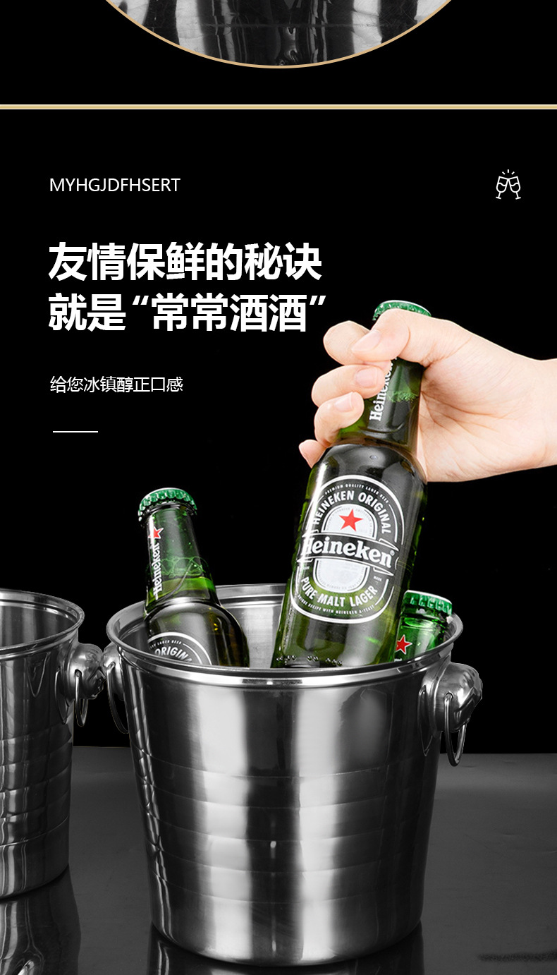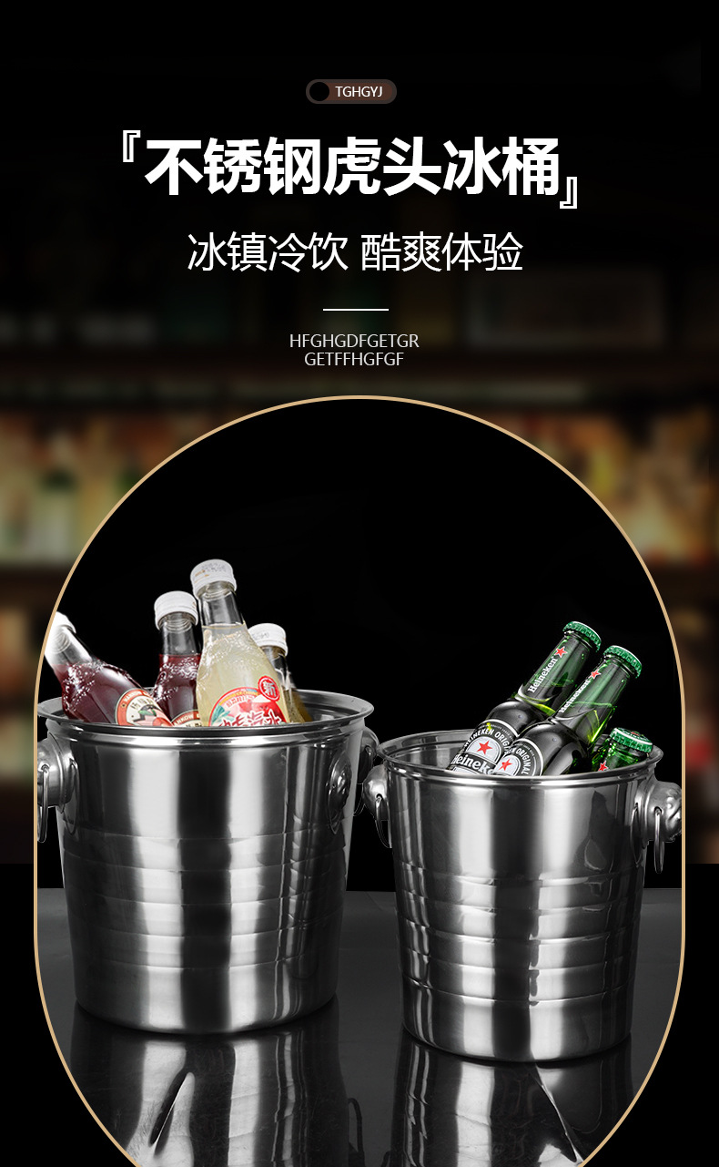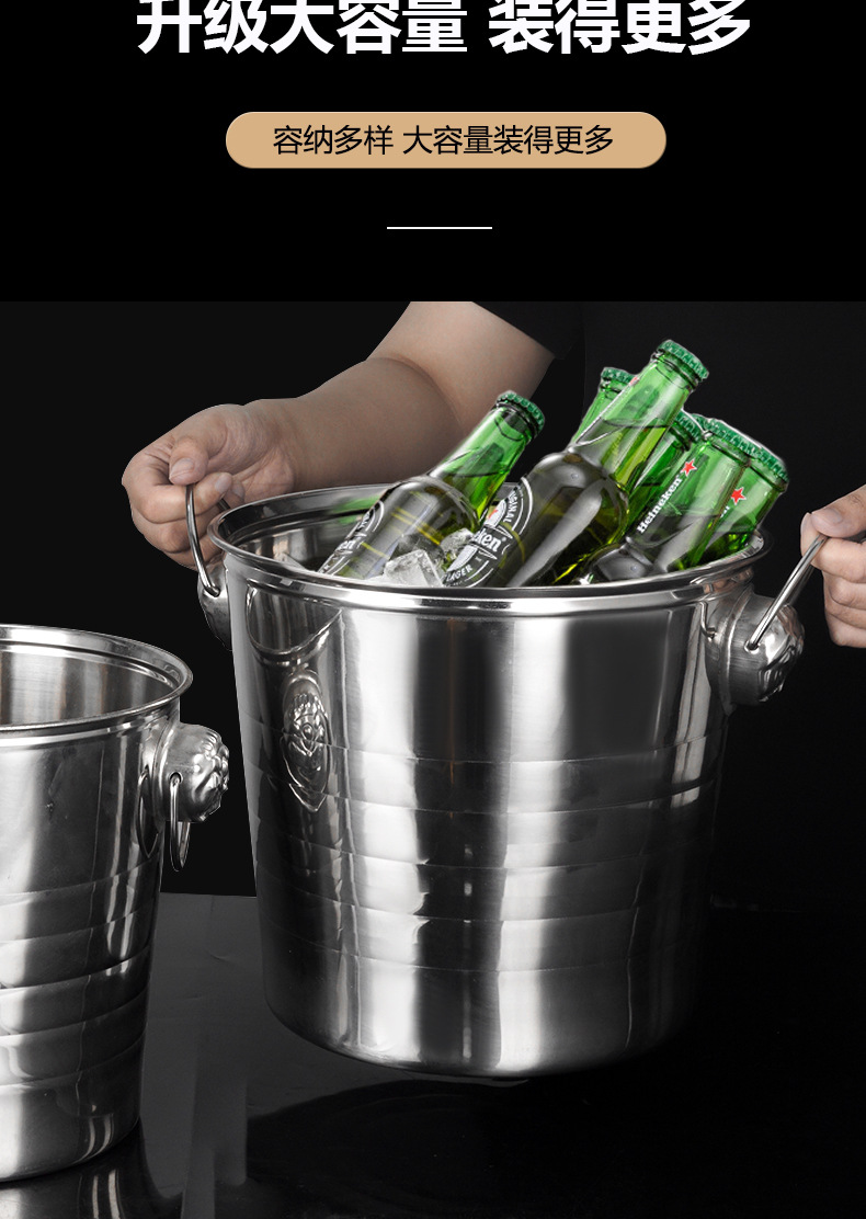 冰桶不锈钢 双耳圆头虎头啤酒桶酒吧手提红酒桶加厚香槟桶收纳桶