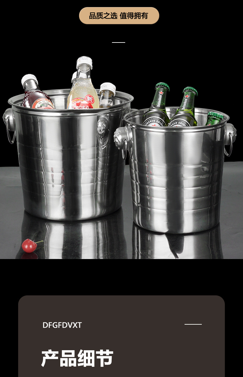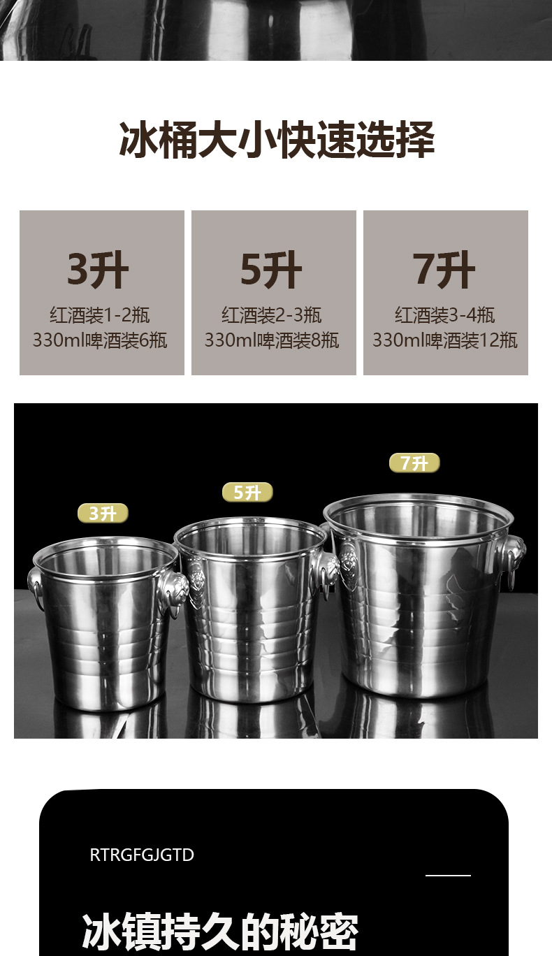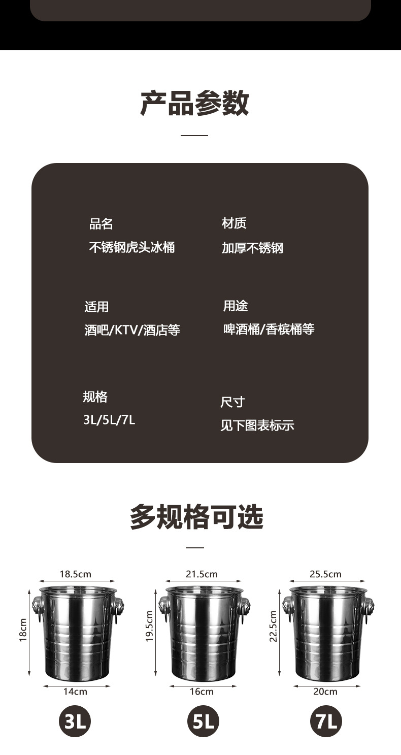 冰桶不锈钢 双耳圆头虎头啤酒桶酒吧手提红酒桶加厚香槟桶收纳桶