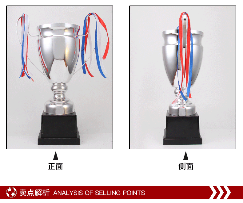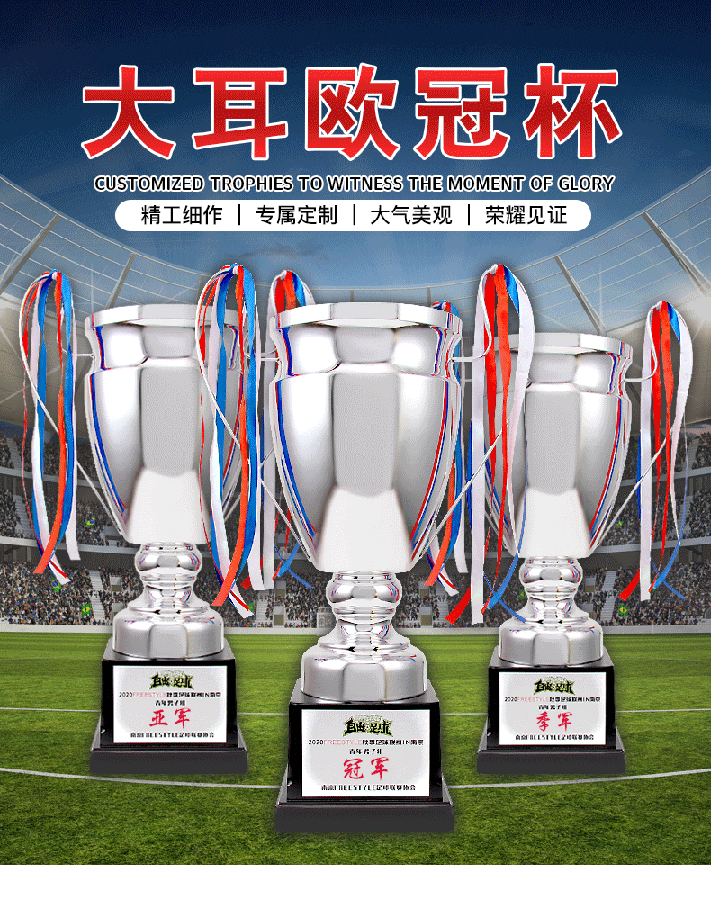 Trofeos de metal de orejas grandes transfronterizas para hacer trofeos de fútbol de baloncesto de oro, plata y bronce de la Liga de Campeones y medallas de honor