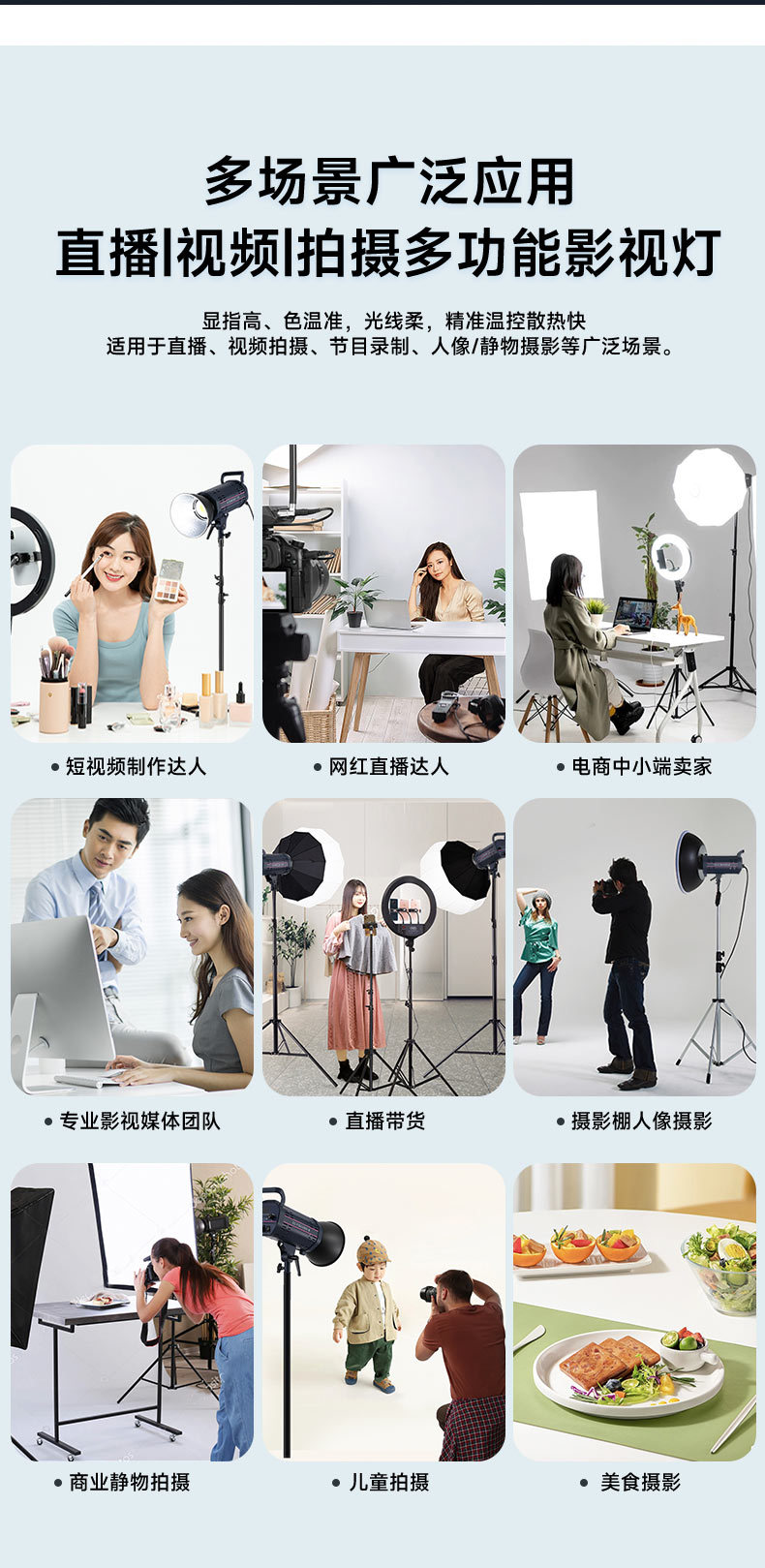 ámbito de aplicación principalFotografía, transmisión en vivo, fotografía, video, iluminación complementaria