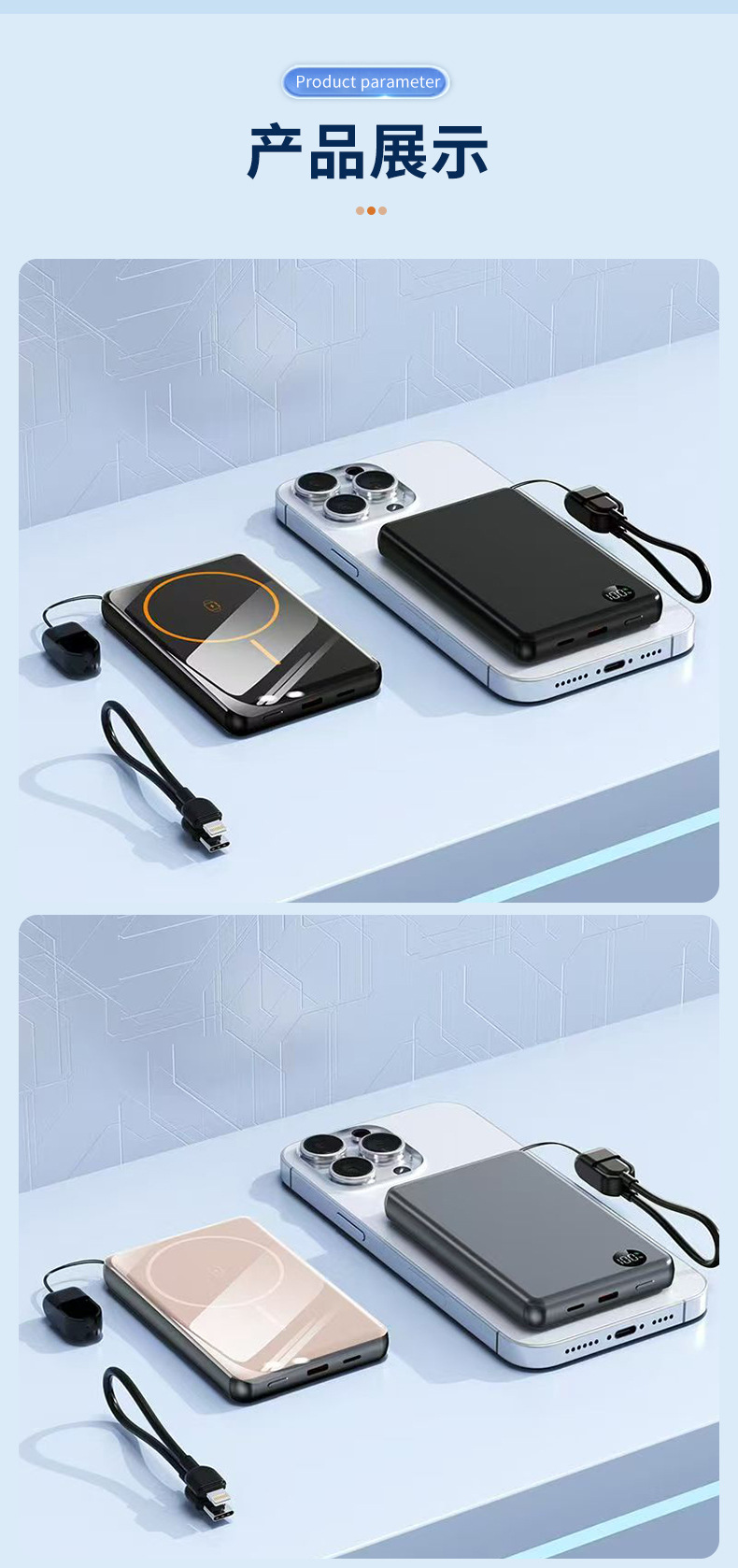 | Capacidad de alimentación | 5000mA Carga rápida (22.5W + Carga inalámbrica 15W), 5000mA Carga rápida (22.5W + Carga inalámbrica 15W + Reloj de carga), 10000mA Carga rápida (22.5W + Carga inalámbrica 15W), 10000mA Carga rápida (22.5W + Carga inalámbrica 15W + Reloj de carga |
