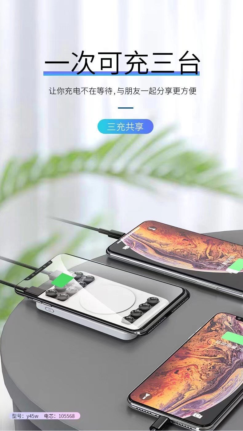 Mini compacto conveniente con energía portátil viaje al aire libre ventosa de teléfono móvil carga compartida inalámbrica puesta en marcha tres