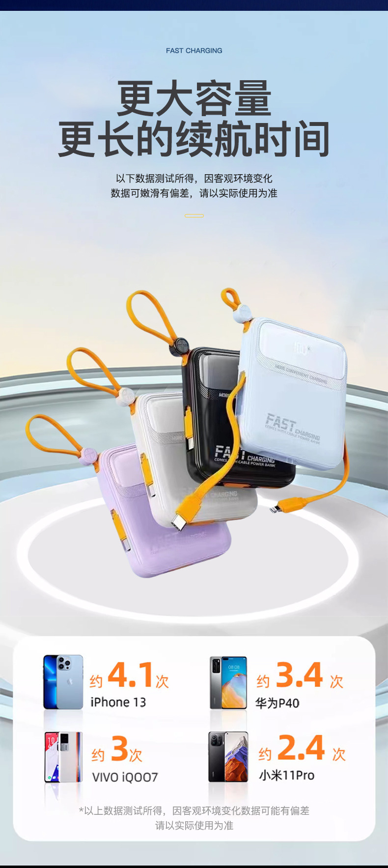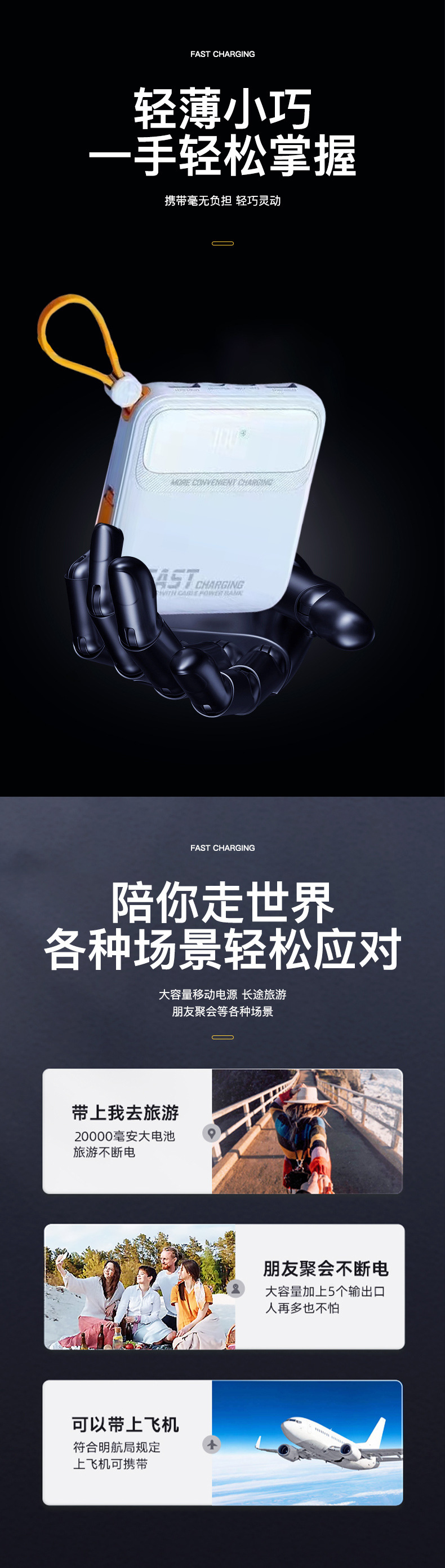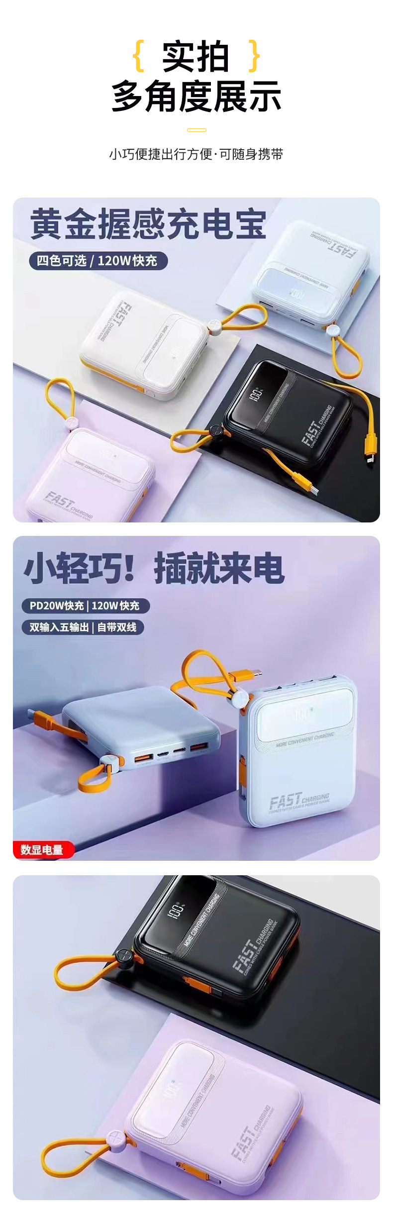 | Capacidad de alimentación | 5000 mA (display falso), 10000 mA (display falso), 20000 mA (display falso), 5000 mA (display verdadero), 10000 mA (display verdadero), 20000 mA (display verdadero), 10000 mA (carga rápida), 20000 mA (carga rápida) |