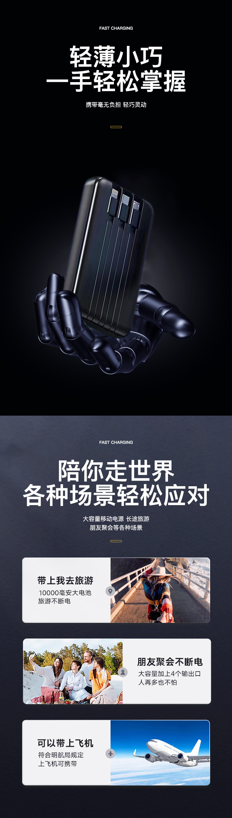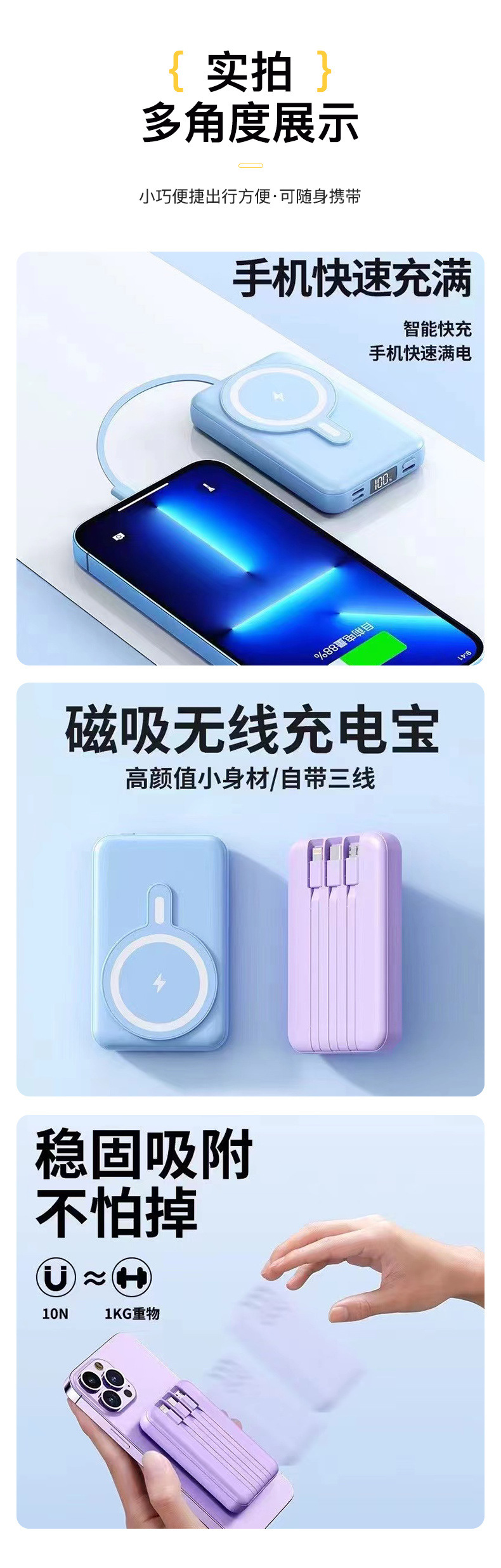 | Capacidad de alimentación | 10000 mA (carga rápida normal + carga inalámbrica 5W) |
