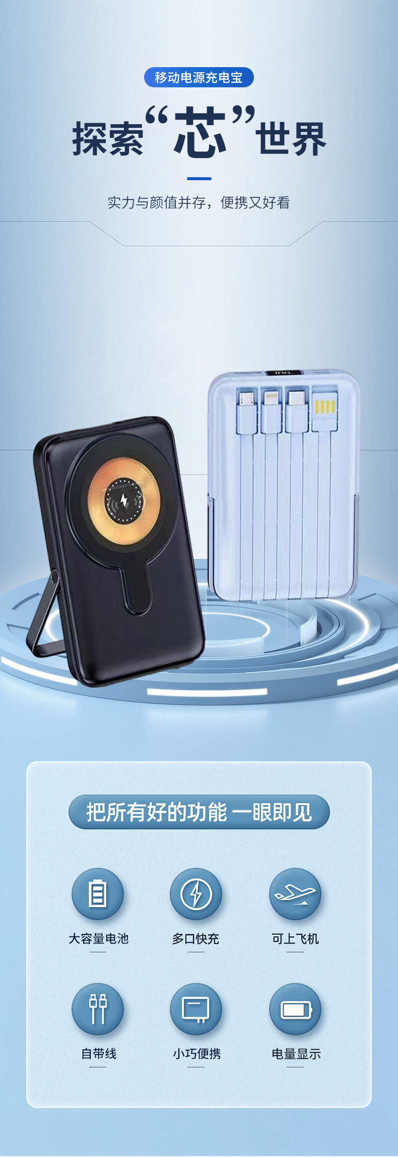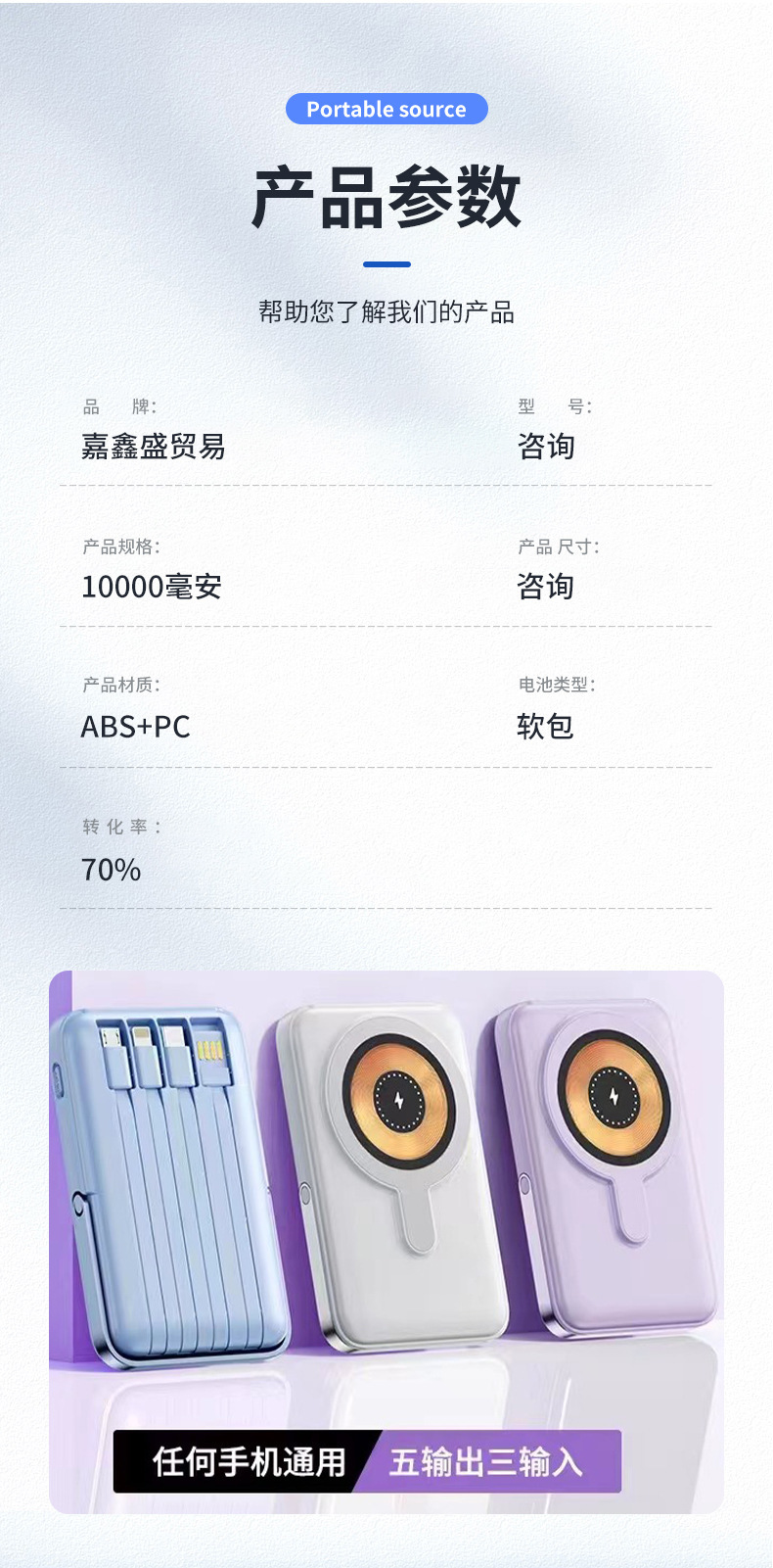 | Capacidad de alimentación | 10000 mA Cargador inalámbrico de carga rápida normal (5W), 10000 mA Cargador rápido + Cargador inalámbrico (15W) |