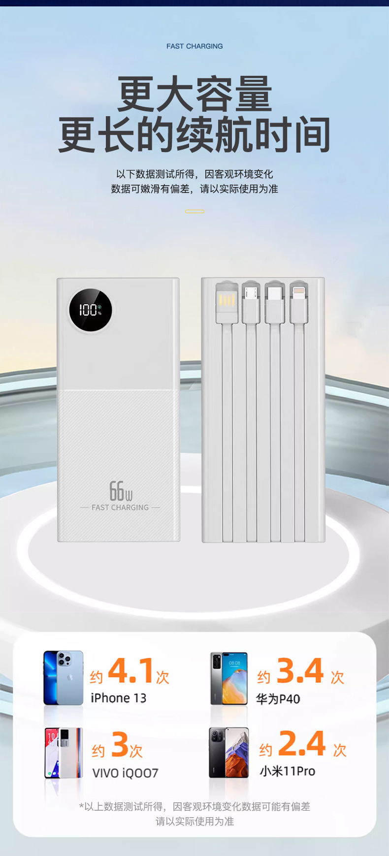 | Capacidad de alimentación | 10000mAh Fast Charge 66W 20000mAh Fast Charge 66W |