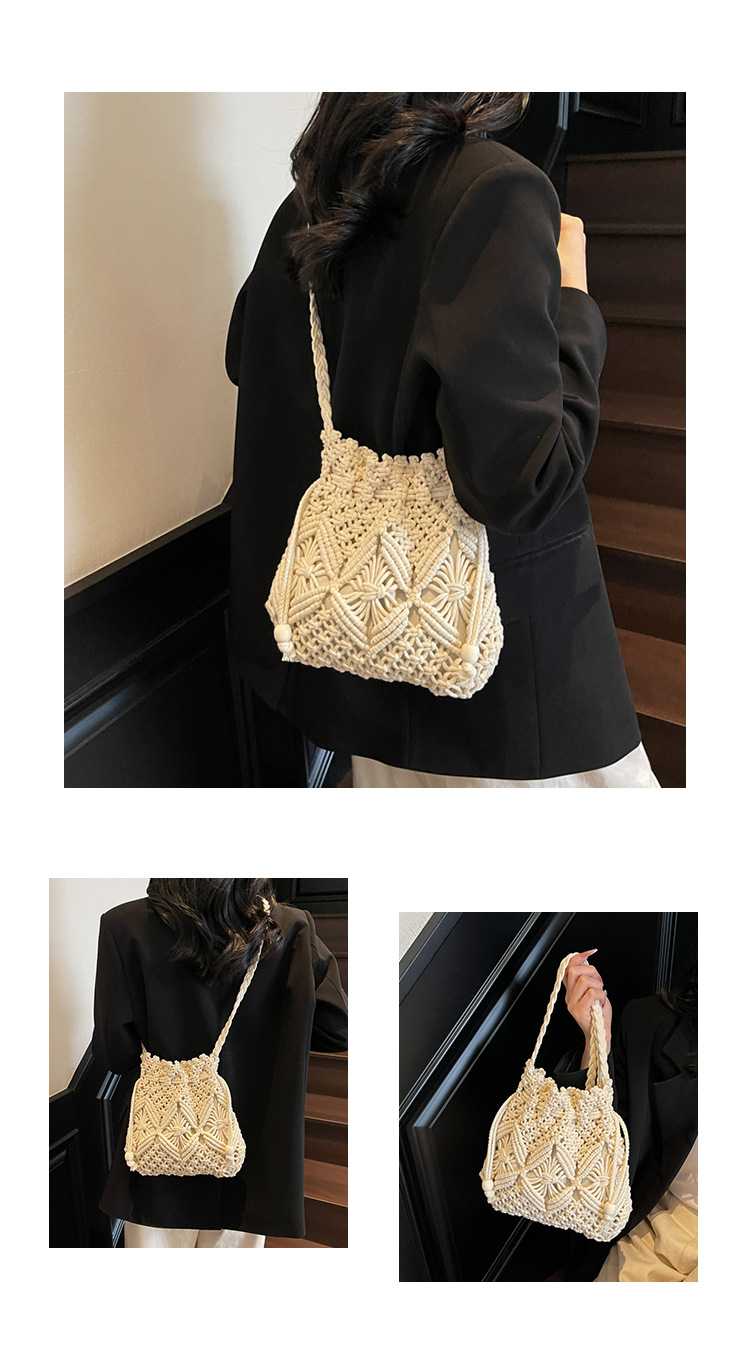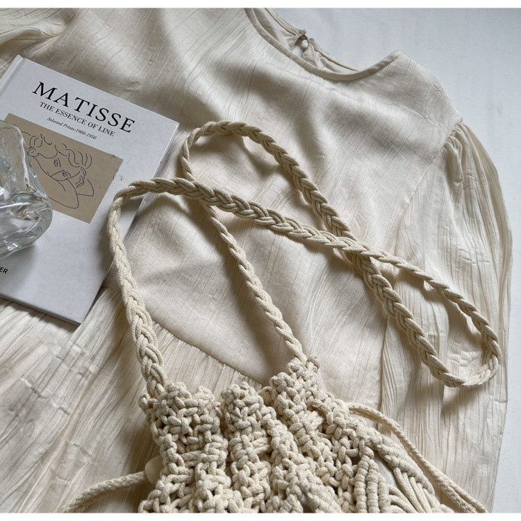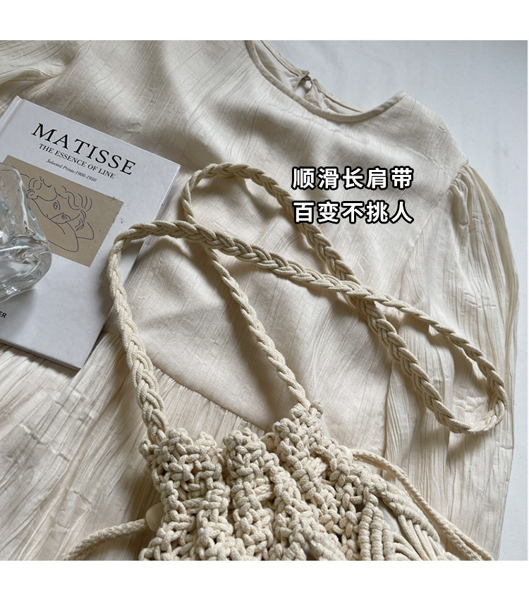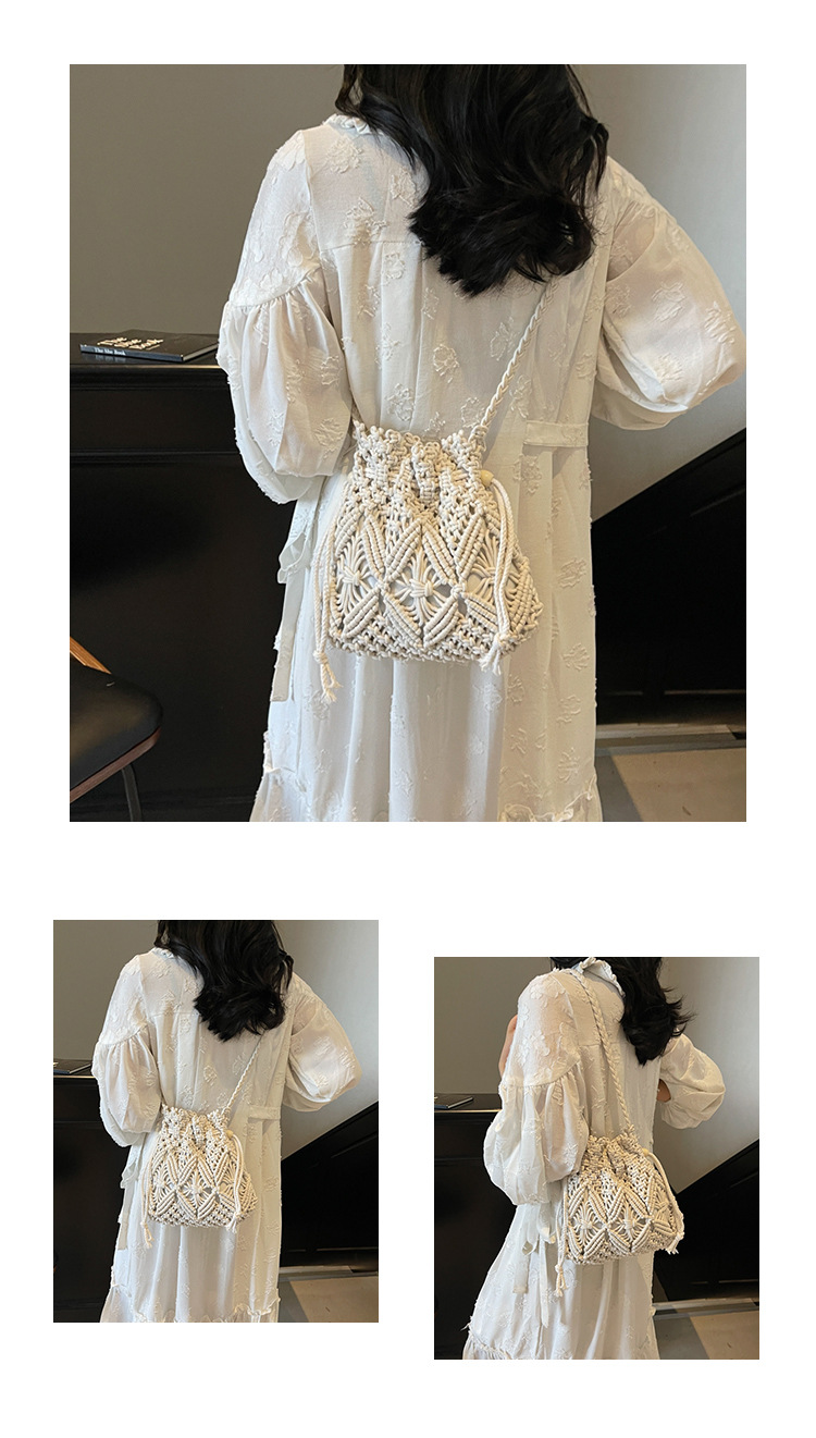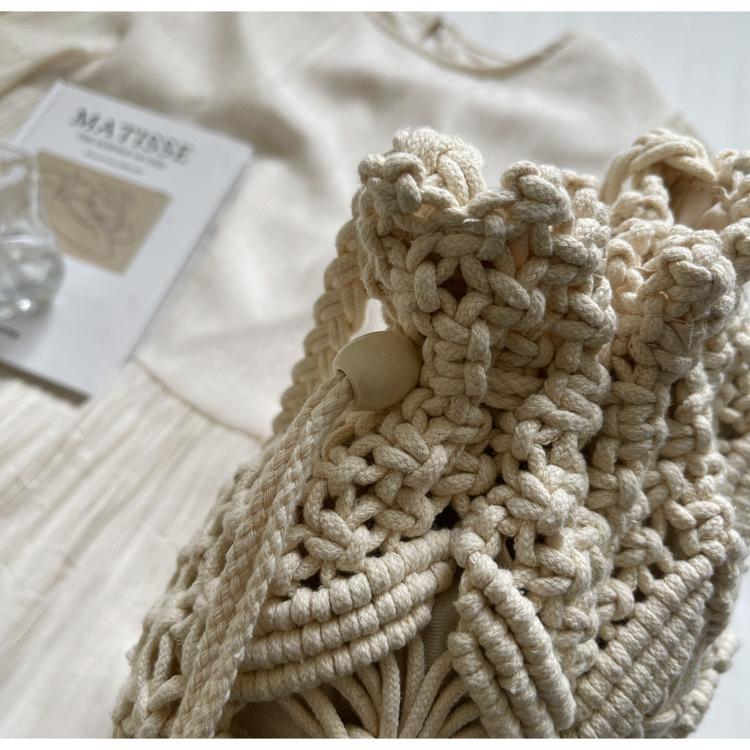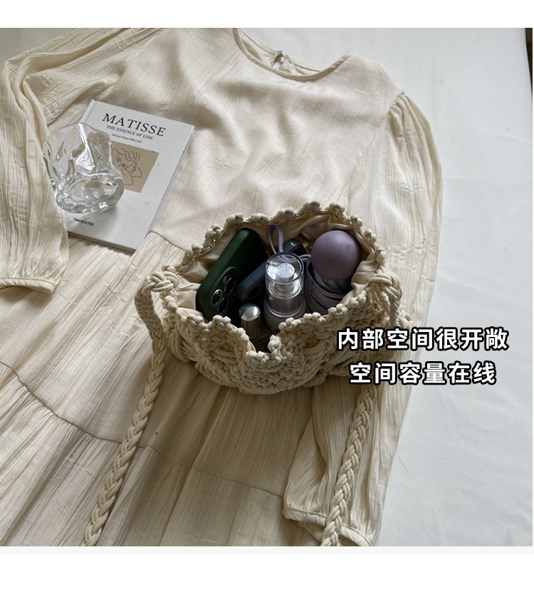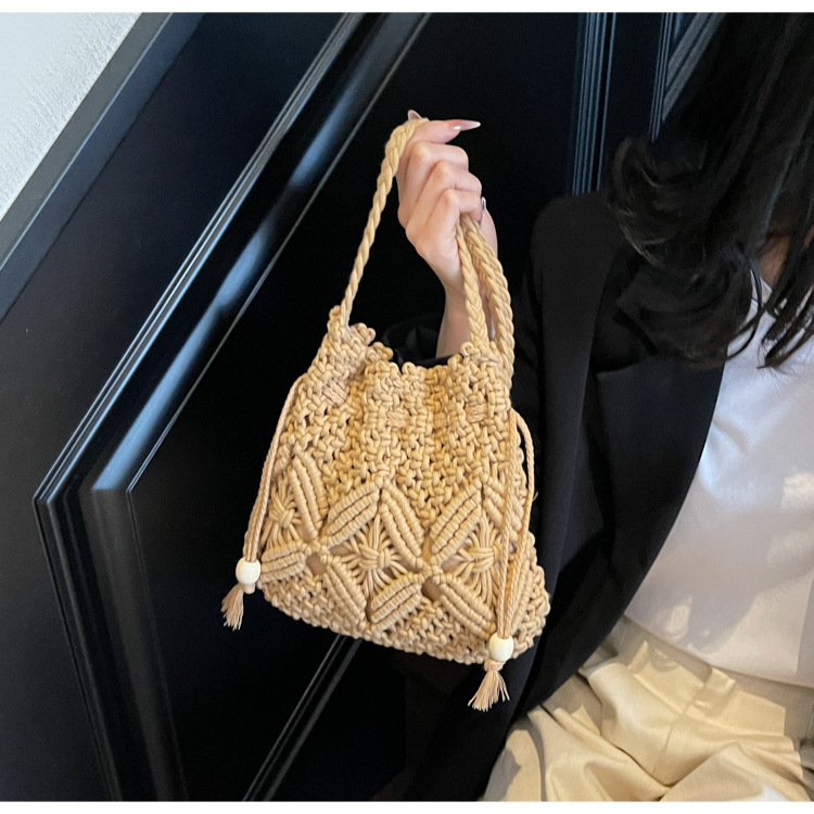 Bolso de cuerda de algodón tejido para mujer verano salvaje 2025 nueva moda diseño de nicho bolso de cubo de mensajero bolso de playa hueco