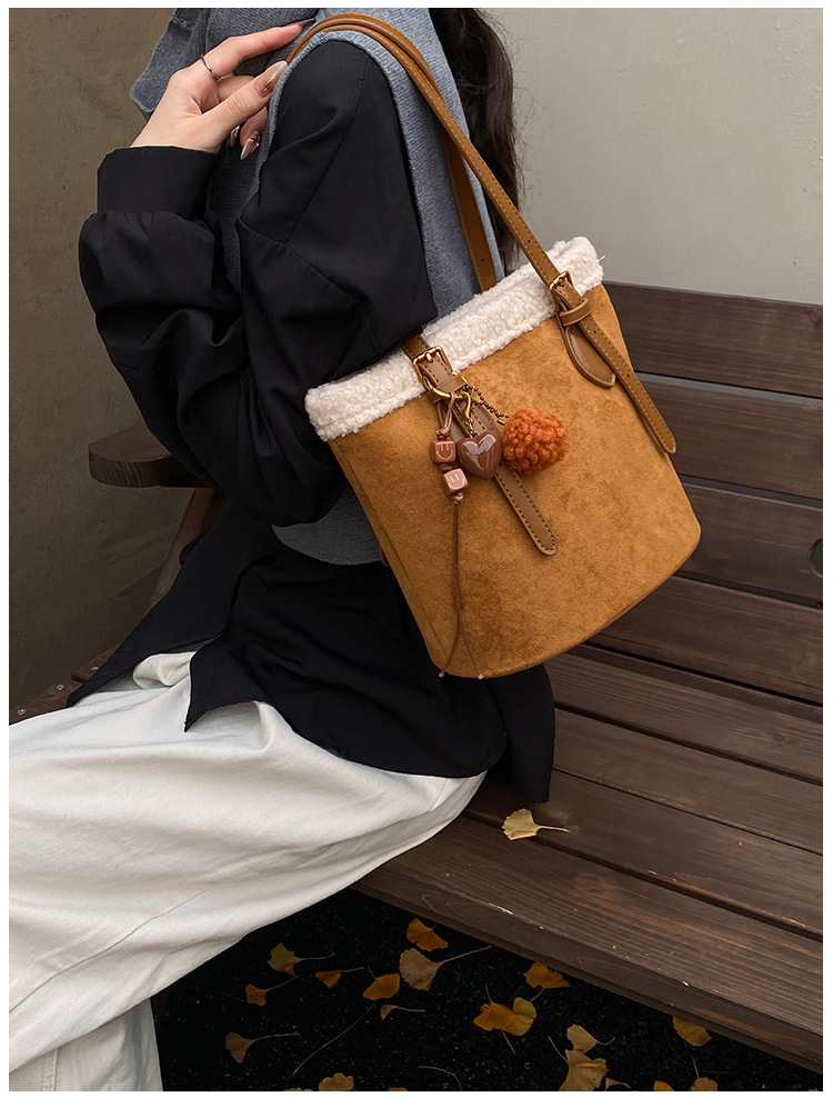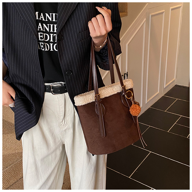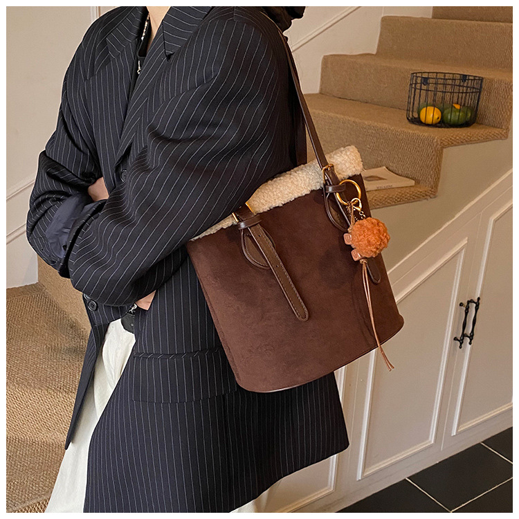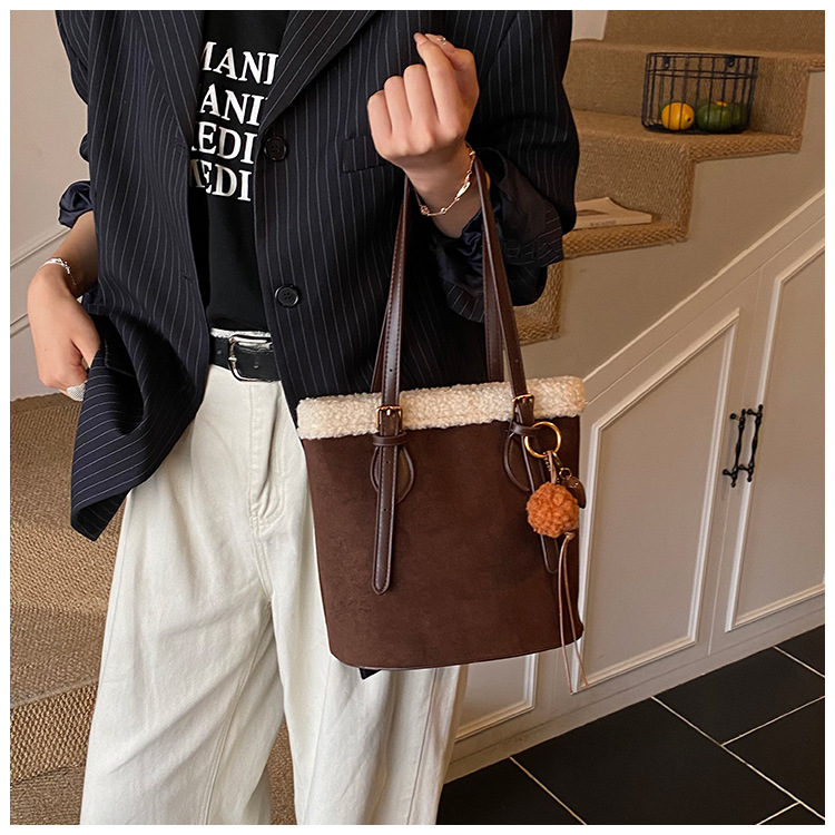 Coreano ultra caliente nicho bolso de cubo portátil para mujeres 2025 nuevo estilo de moda textura versátil alta sensación de hombro mochila