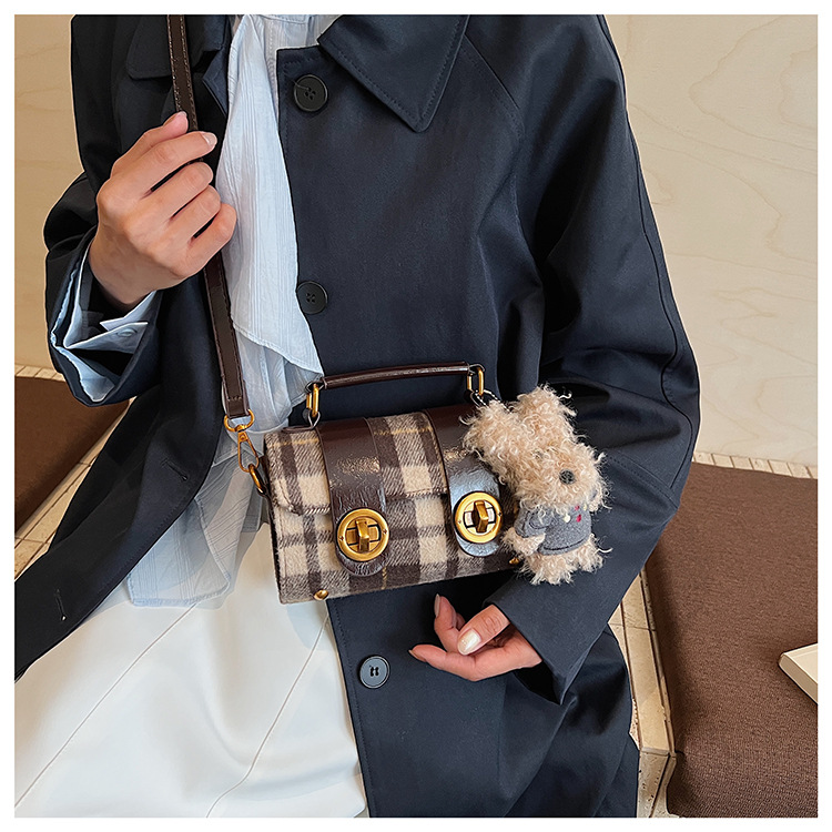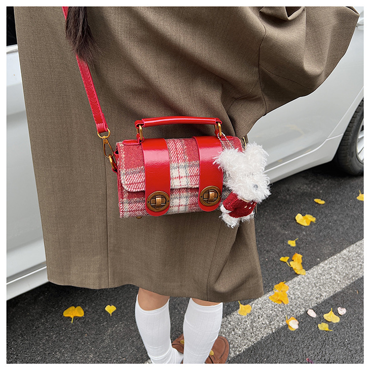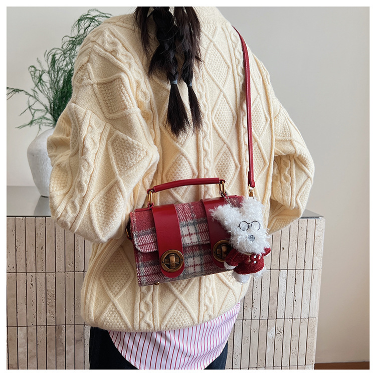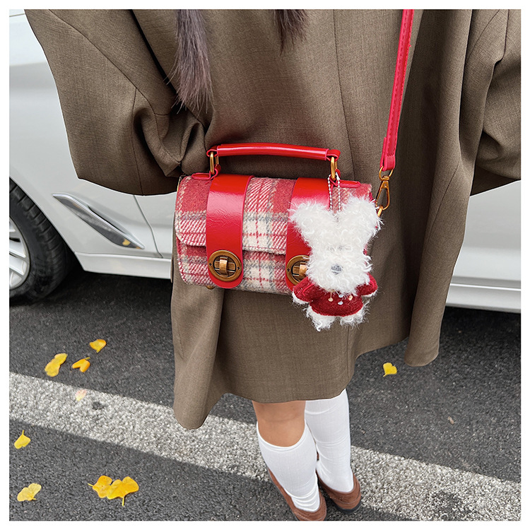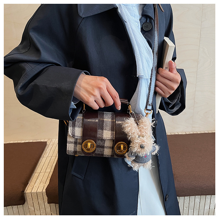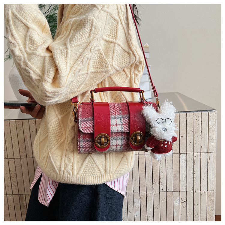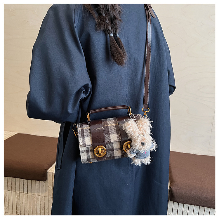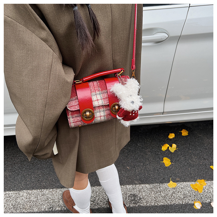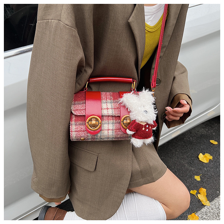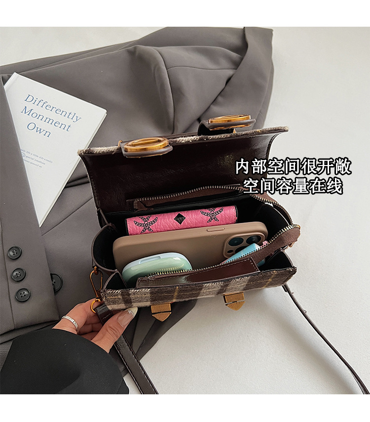 Bolsa de mano a cuadrícula coreana de color contrastante para mujeres 2025 nueva moda personalidad bolso cuadrado de textura superior bolso de tramo inclinado