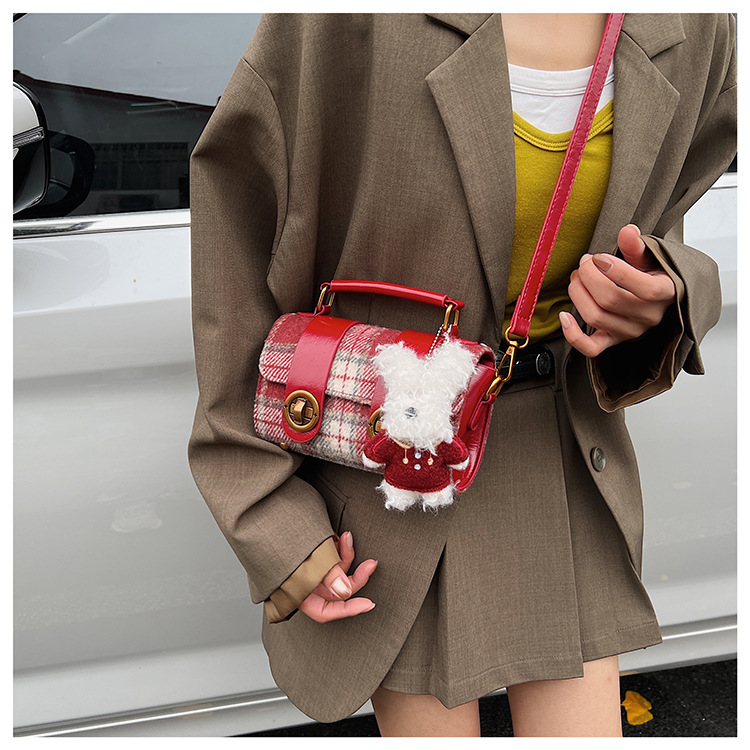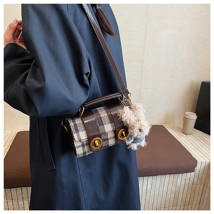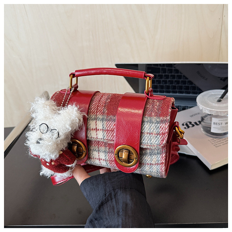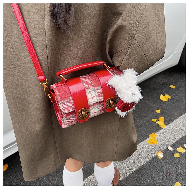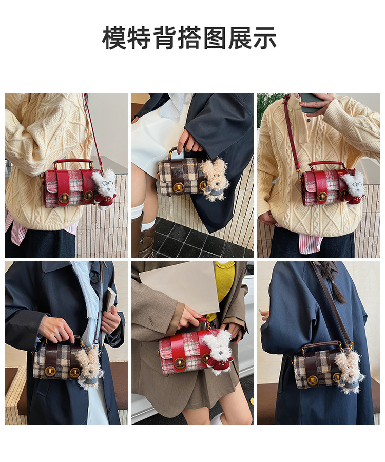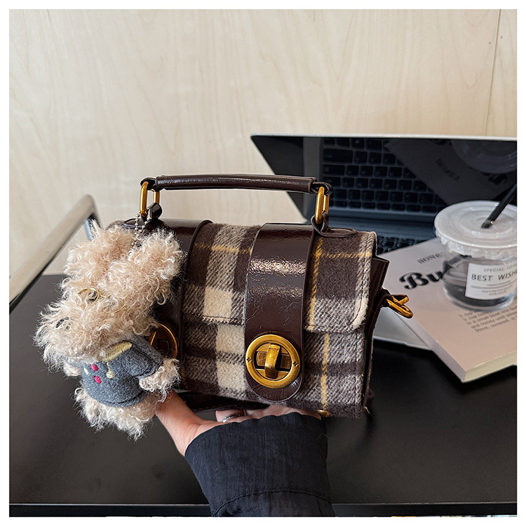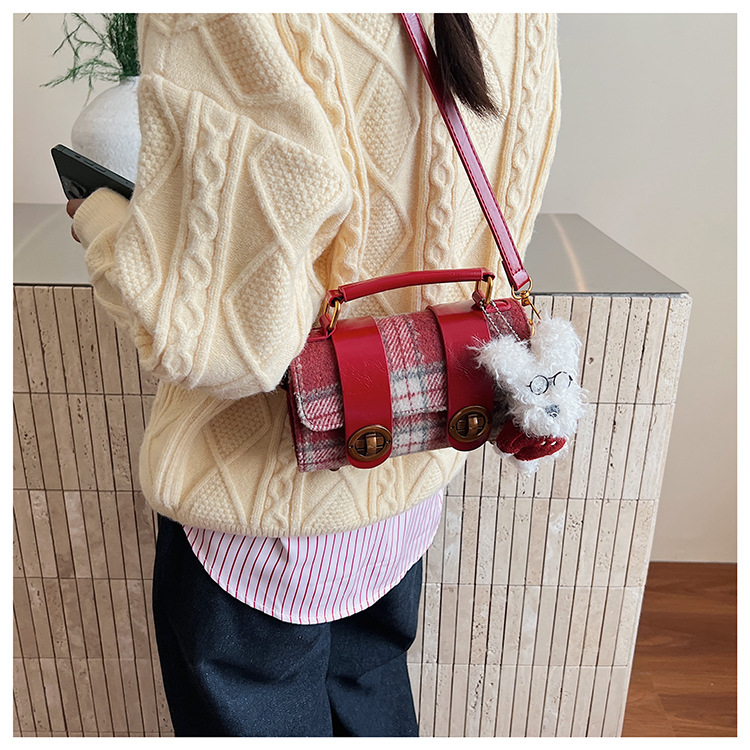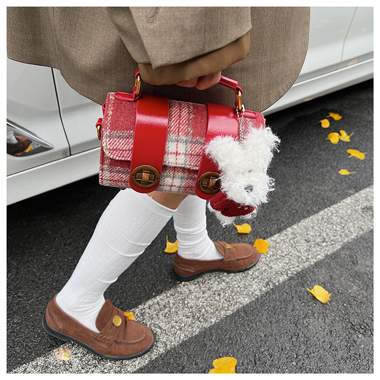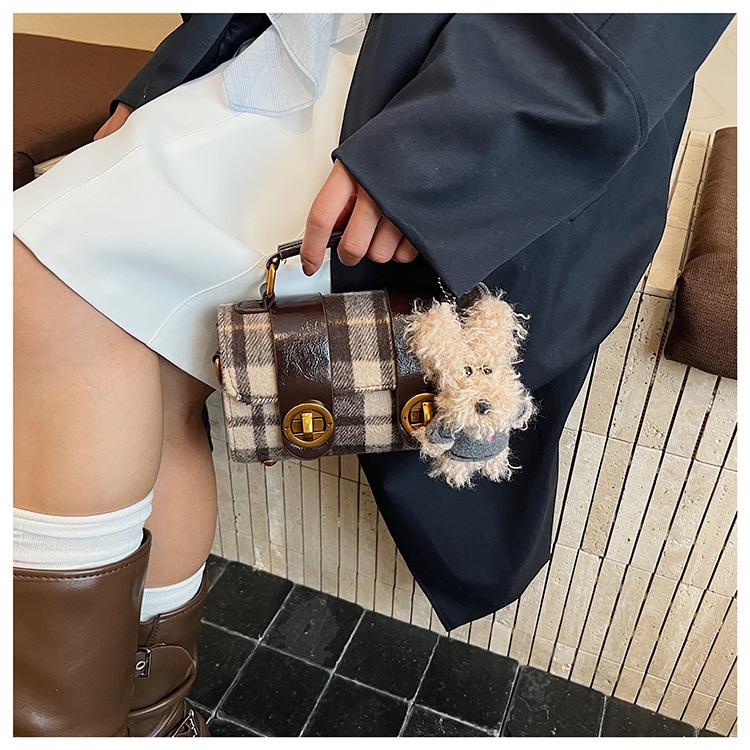 Bolsa de mano a cuadrícula coreana de color contrastante para mujeres 2025 nueva moda personalidad bolso cuadrado de textura superior bolso de tramo inclinado