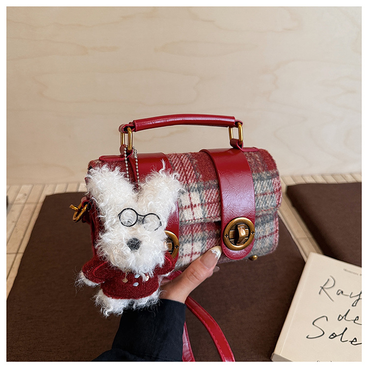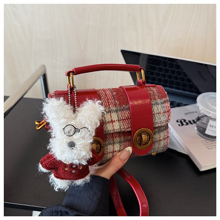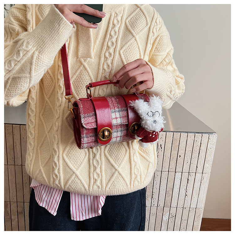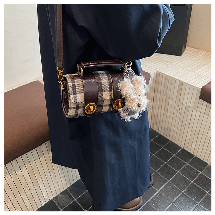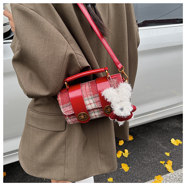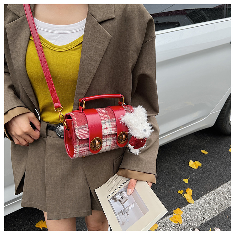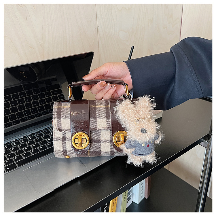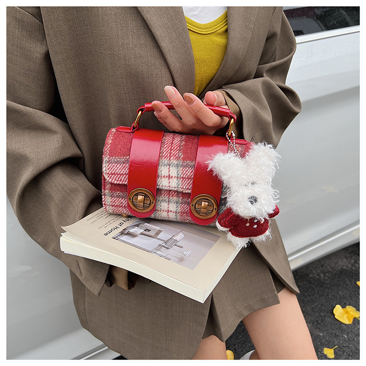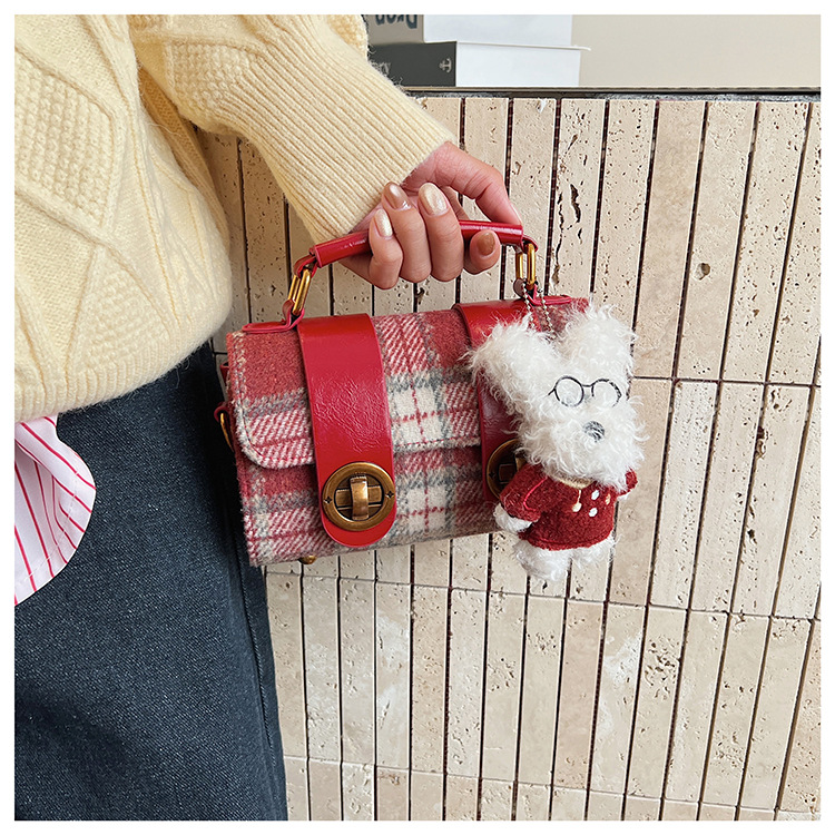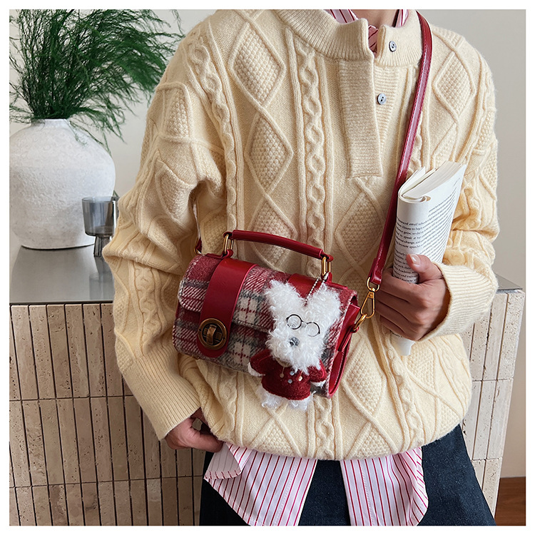 Bolsa de mano a cuadrícula coreana de color contrastante para mujeres 2025 nueva moda personalidad bolso cuadrado de textura superior bolso de tramo inclinado