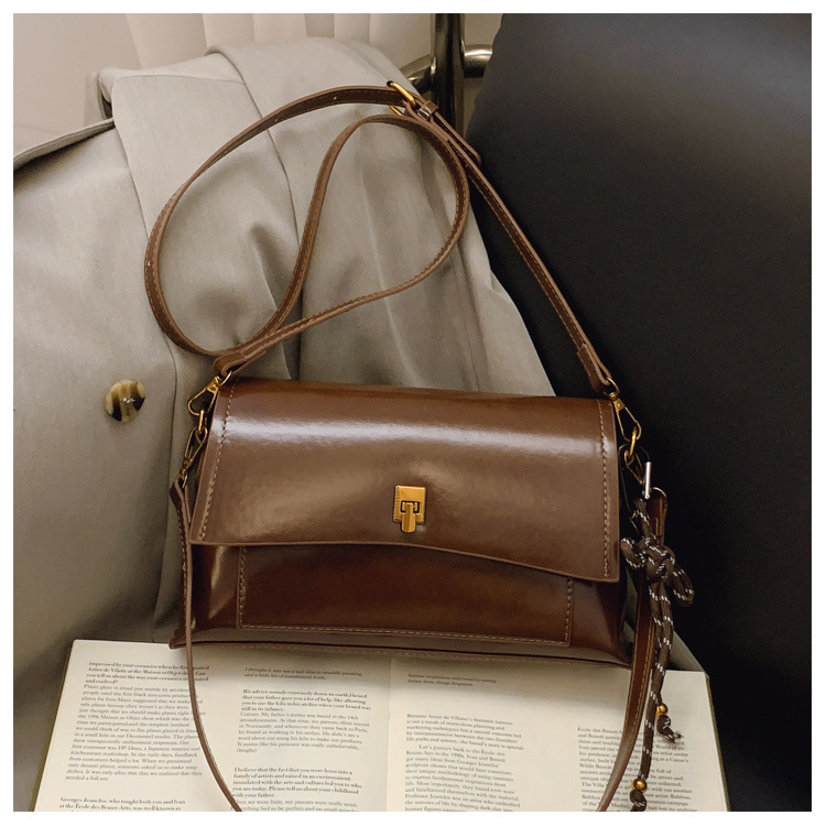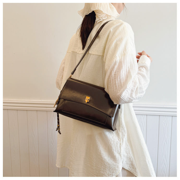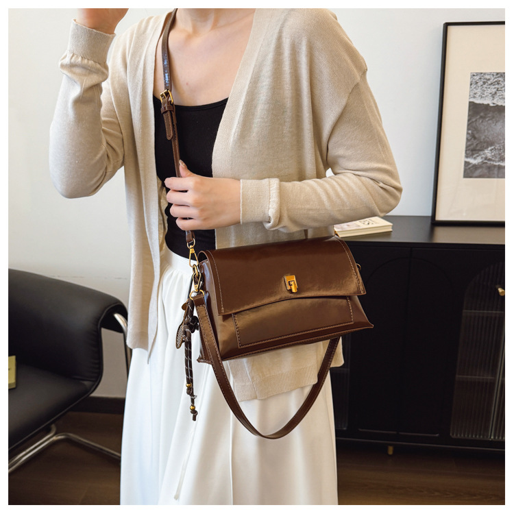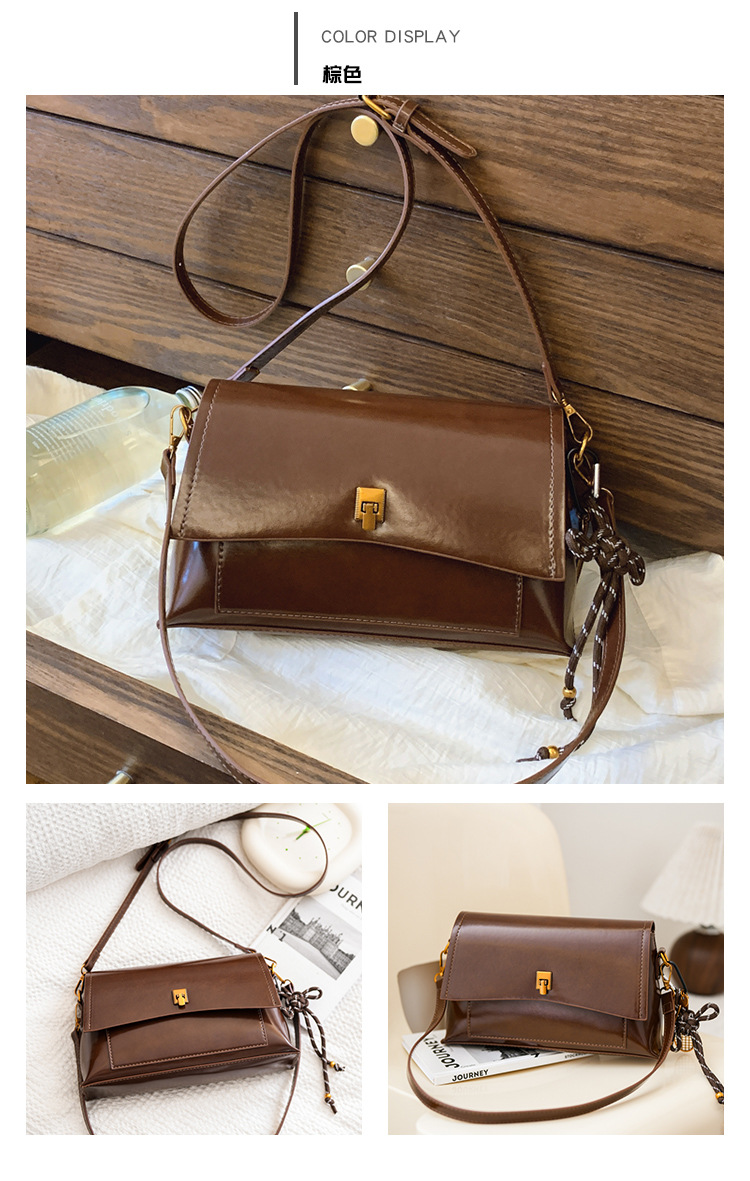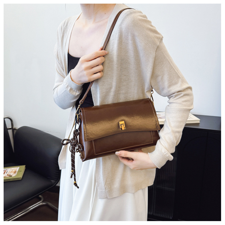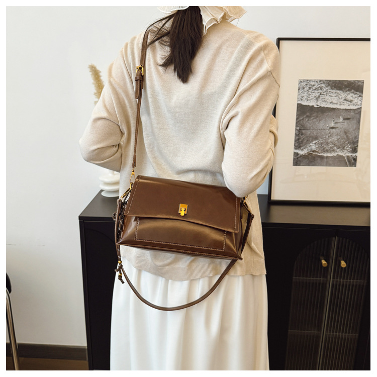 Bolso de axila de cuero de cera de aceite retro de alta gama para mujer 2025 nuevo bolso cuadrado pequeño de un solo hombro de moda simple de cercanías