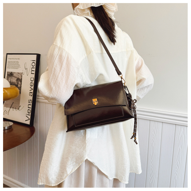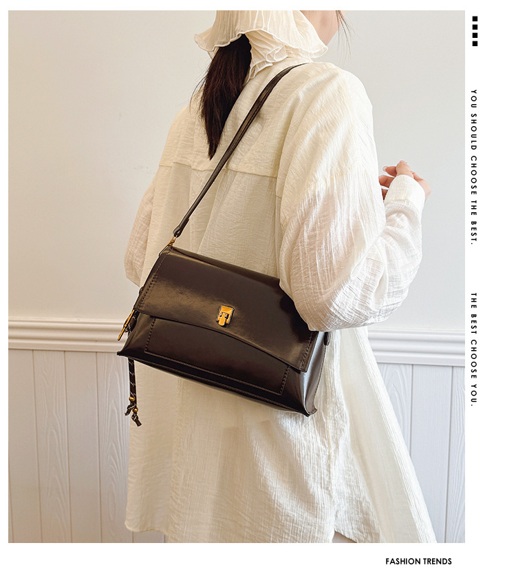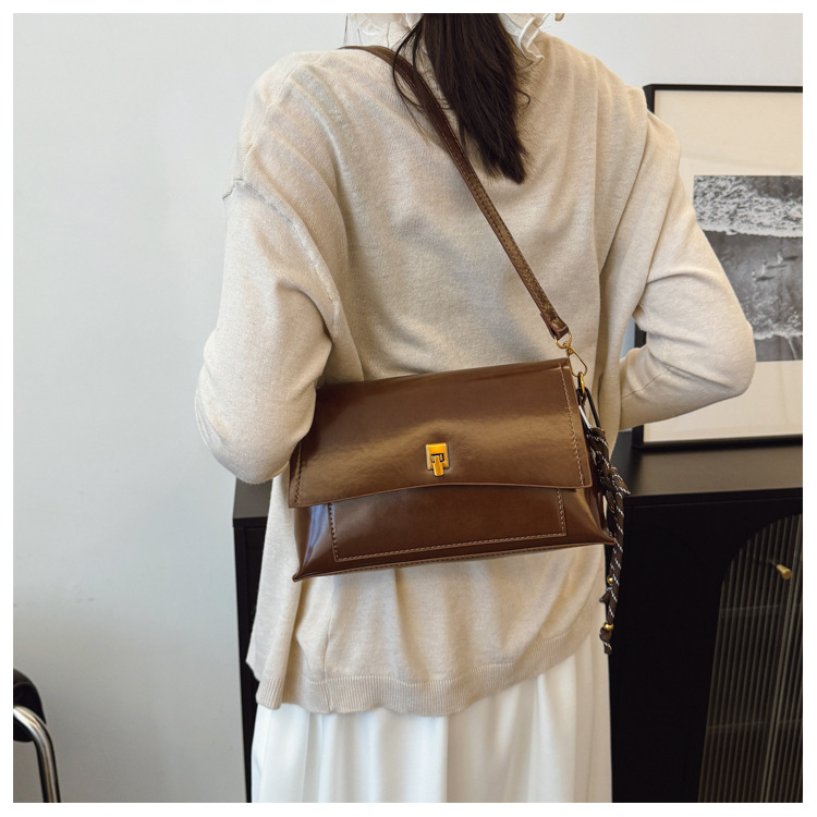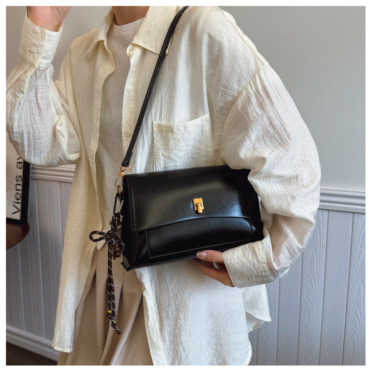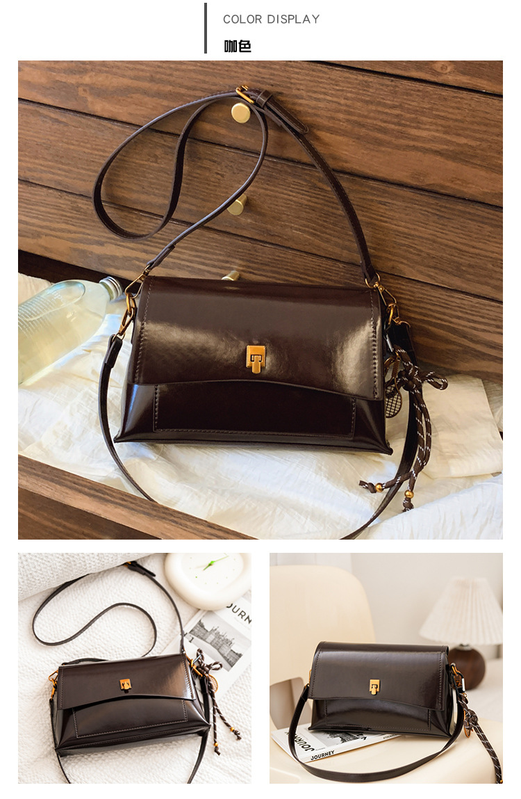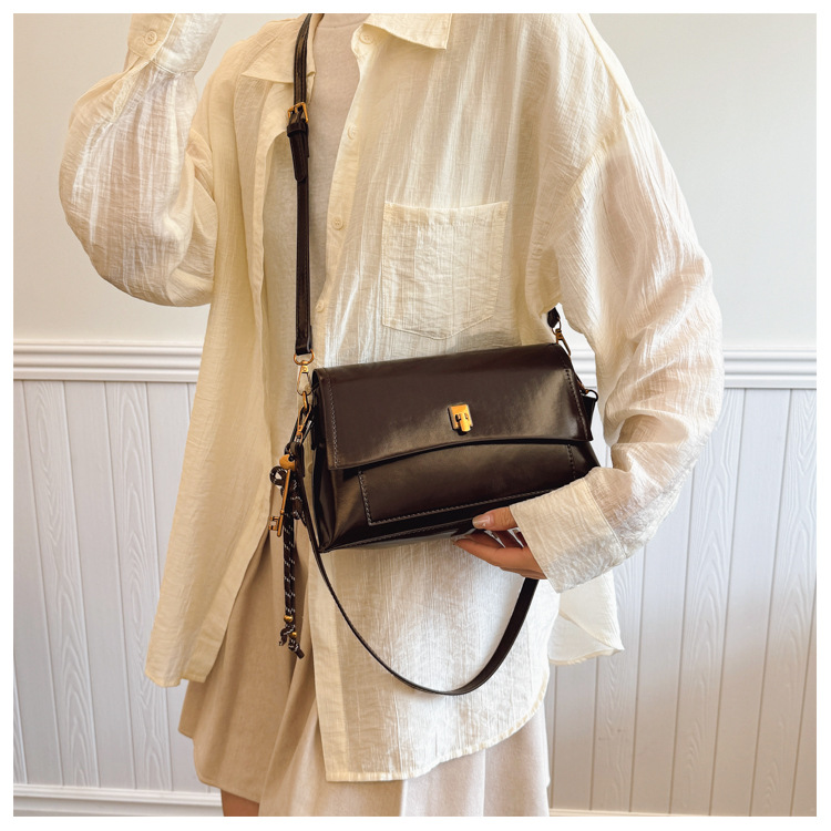 Bolso de axila de cuero de cera de aceite retro de alta gama para mujer 2025 nuevo bolso cuadrado pequeño de un solo hombro de moda simple de cercanías