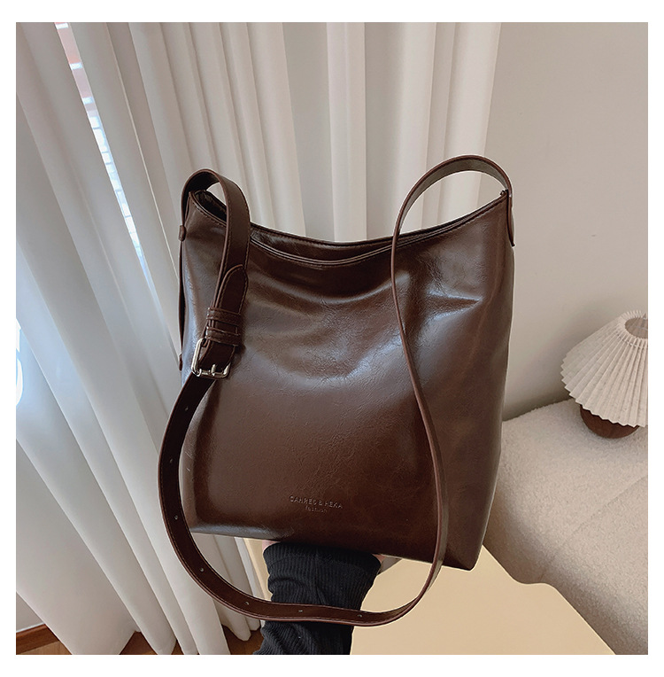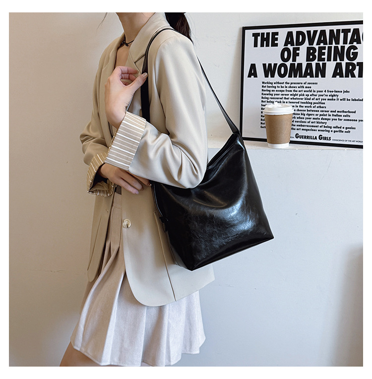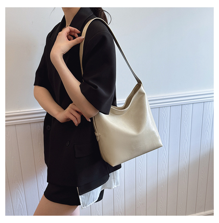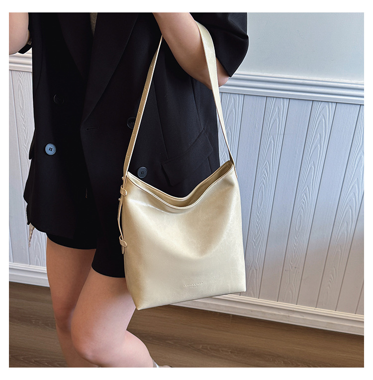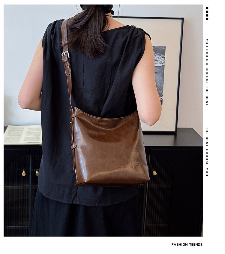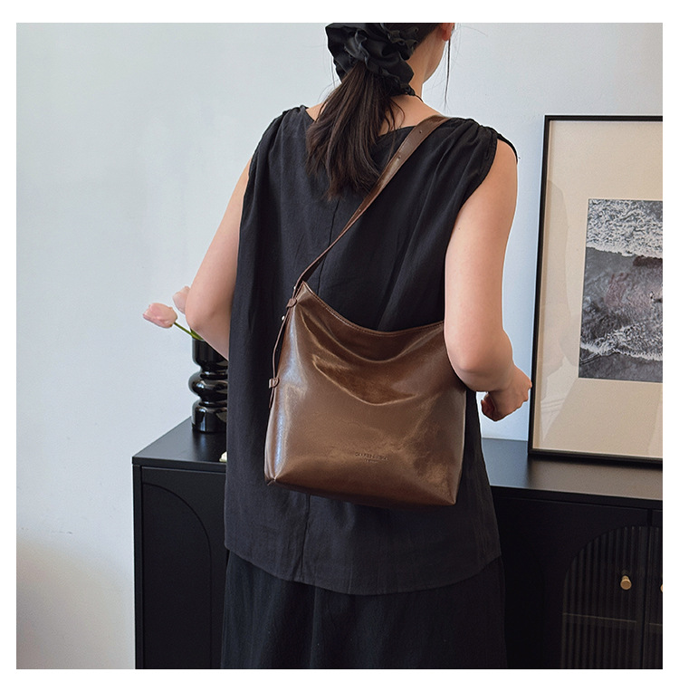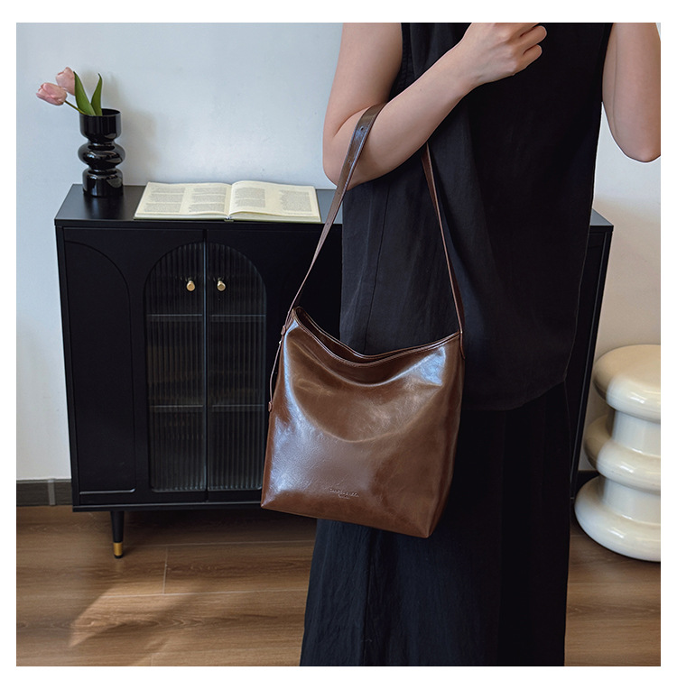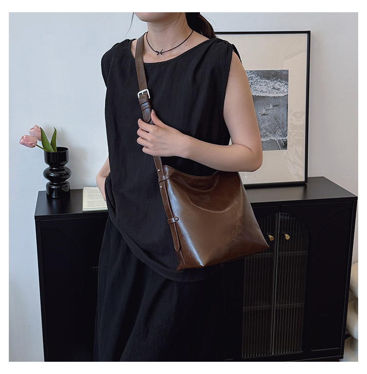 Cross-border retro versátil hombro único brazo bolso para mujeres 2025 nuevo cuero suave ocio de gran capacidad de transporte de viaje bolso de cubo