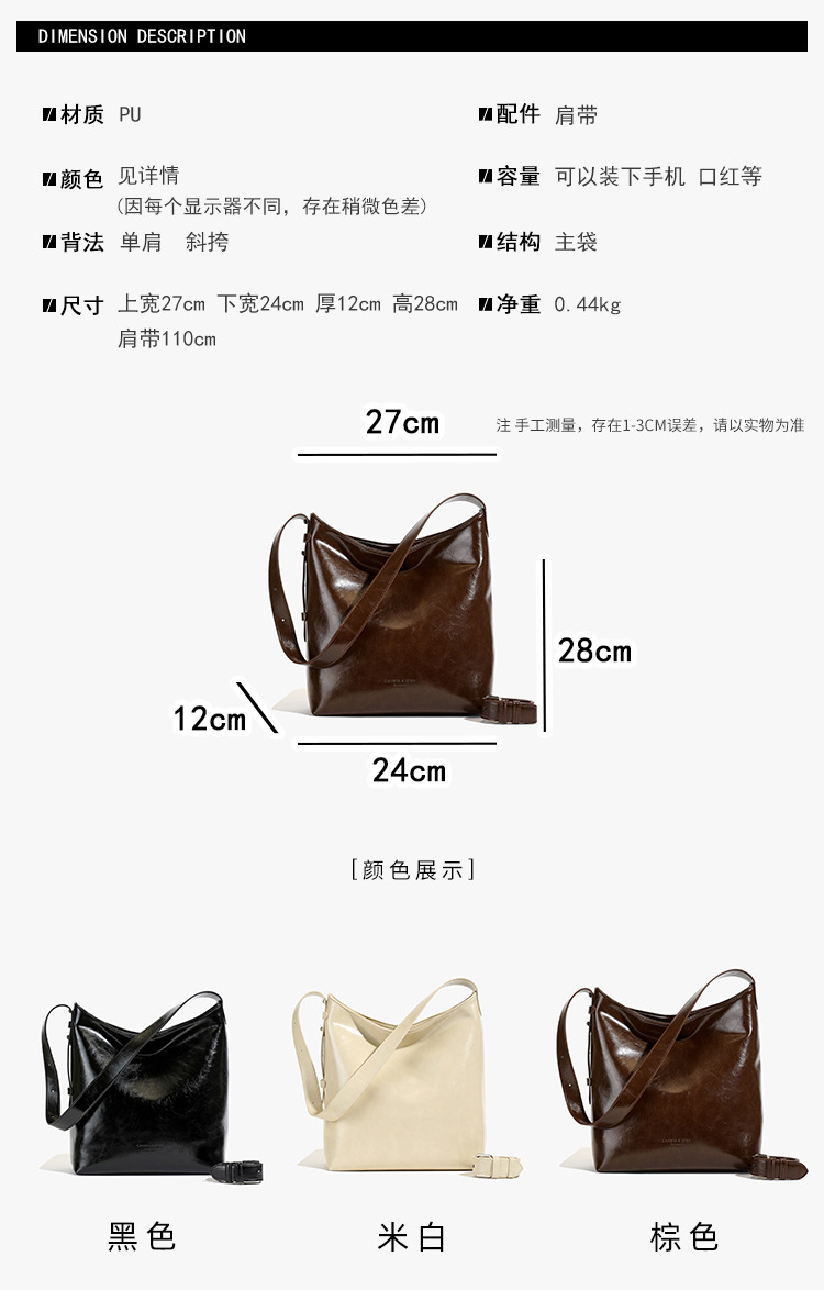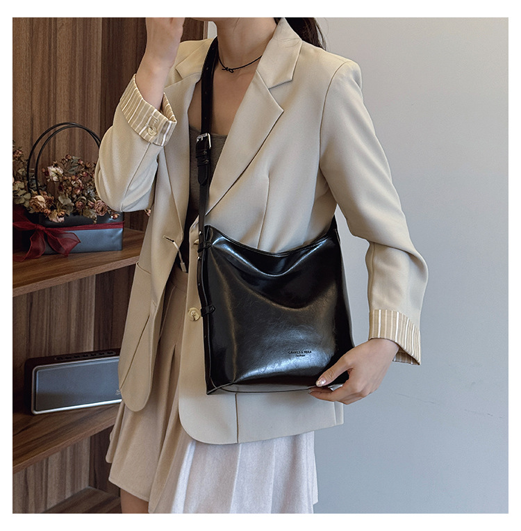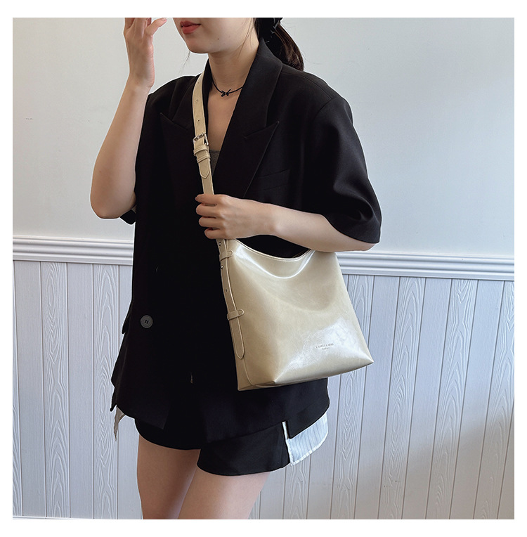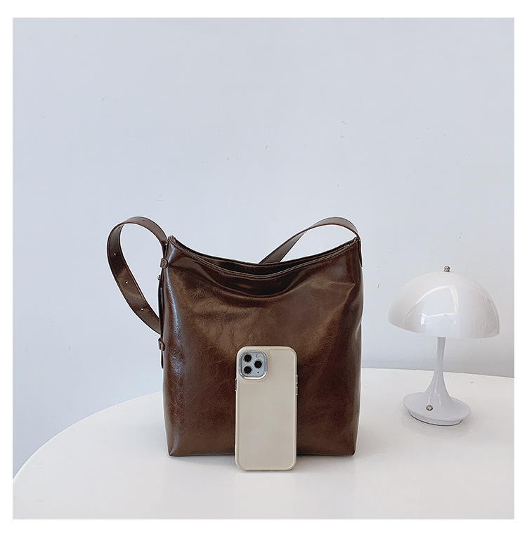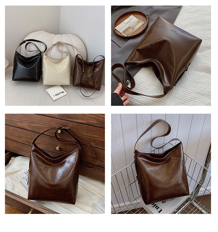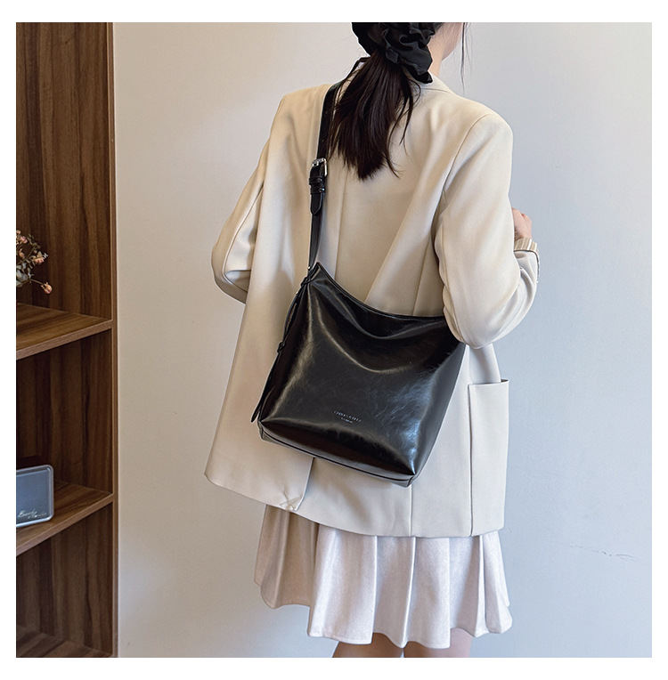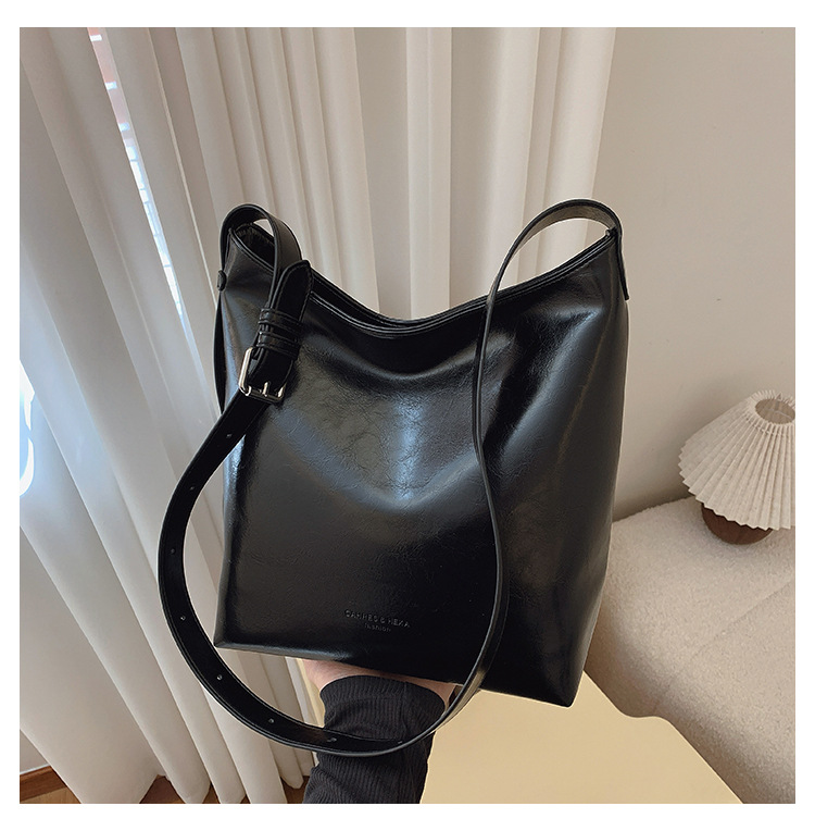 Cross-border retro versátil hombro único brazo bolso para mujeres 2025 nuevo cuero suave ocio de gran capacidad de transporte de viaje bolso de cubo