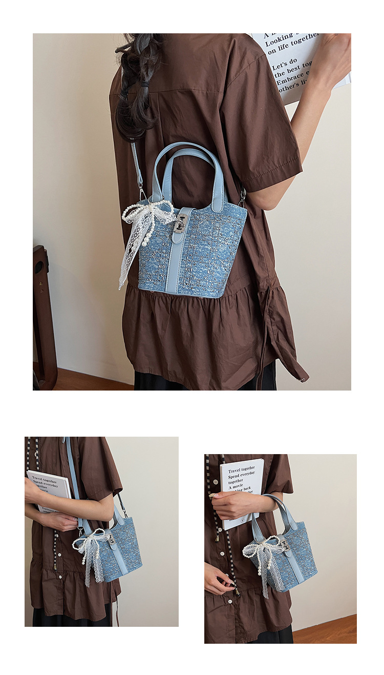 Transfronterizos bolsas de balde de mano mujeres 2025 nuevo bolsas de canasta de denim caliente de verano popular bolsas de mochila versátiles