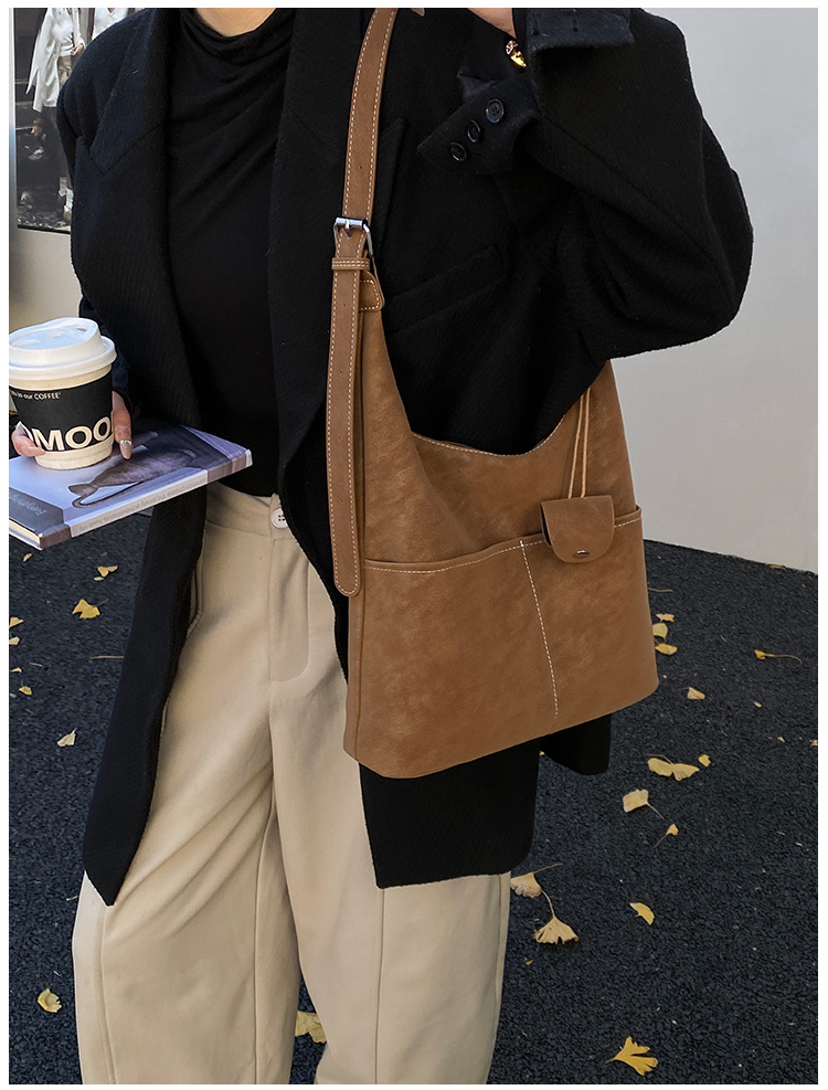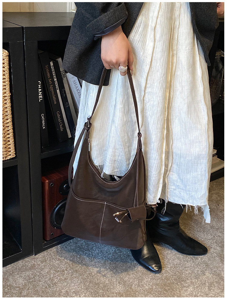 Nichezhong retro bolso de cubo para mujeres 2024 nuevo otoño y invierno versátil bolso de alta sensación bolso de hombro