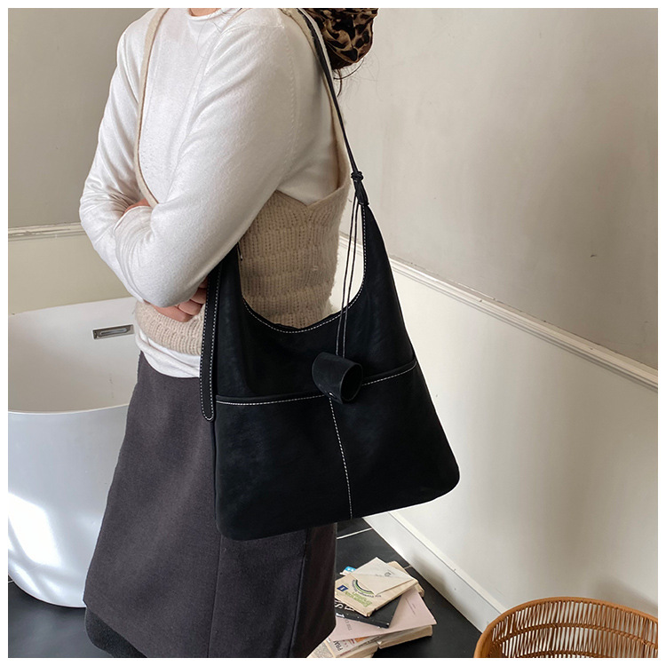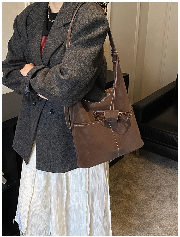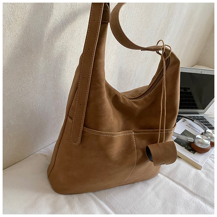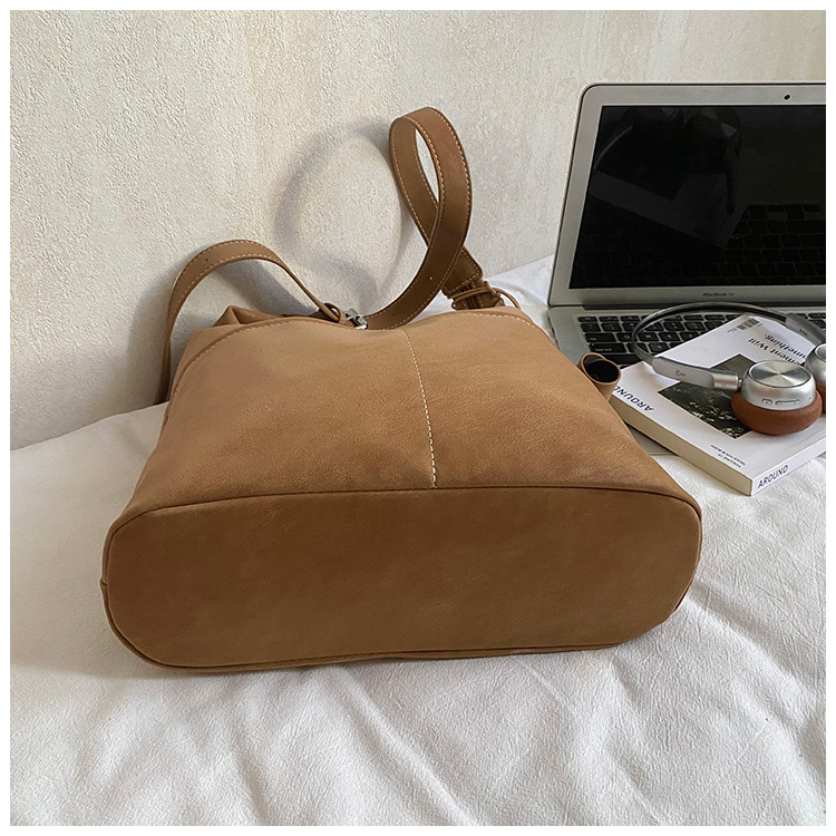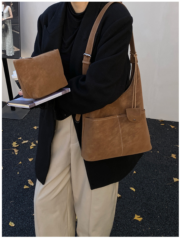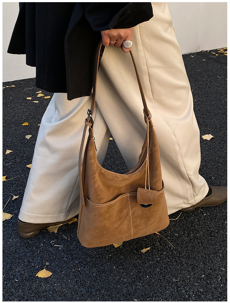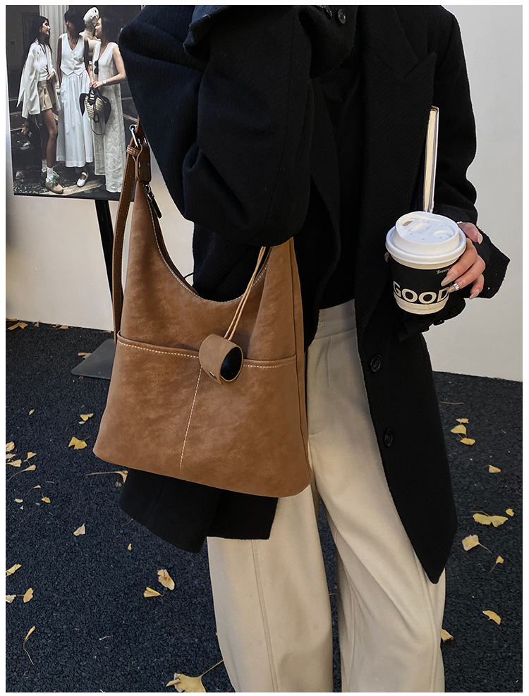 Bolsa de hombro coreana de estilo extranjero de gamuz, bolso de vestir, bolso inferior de mujer otoño-invierno 2025, nuevo nicho retro bolso de cubo de transporte