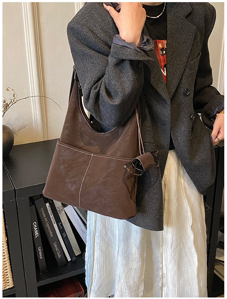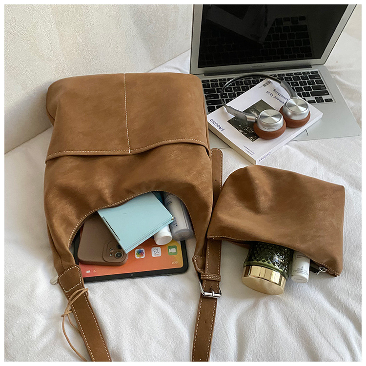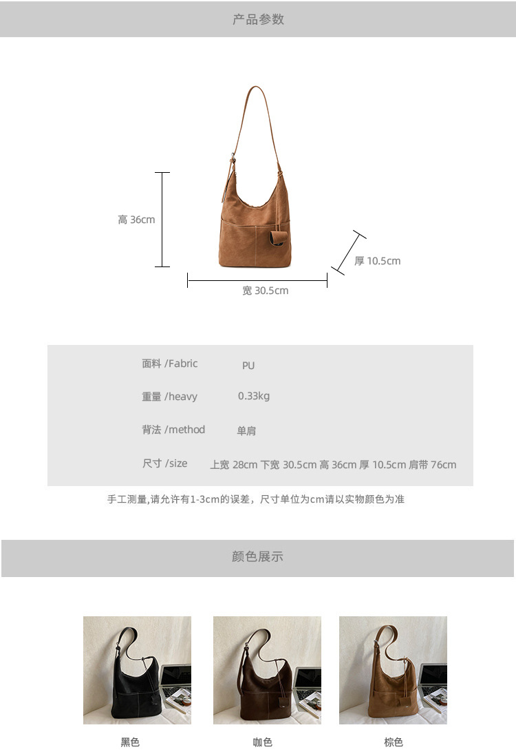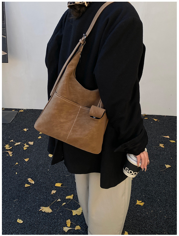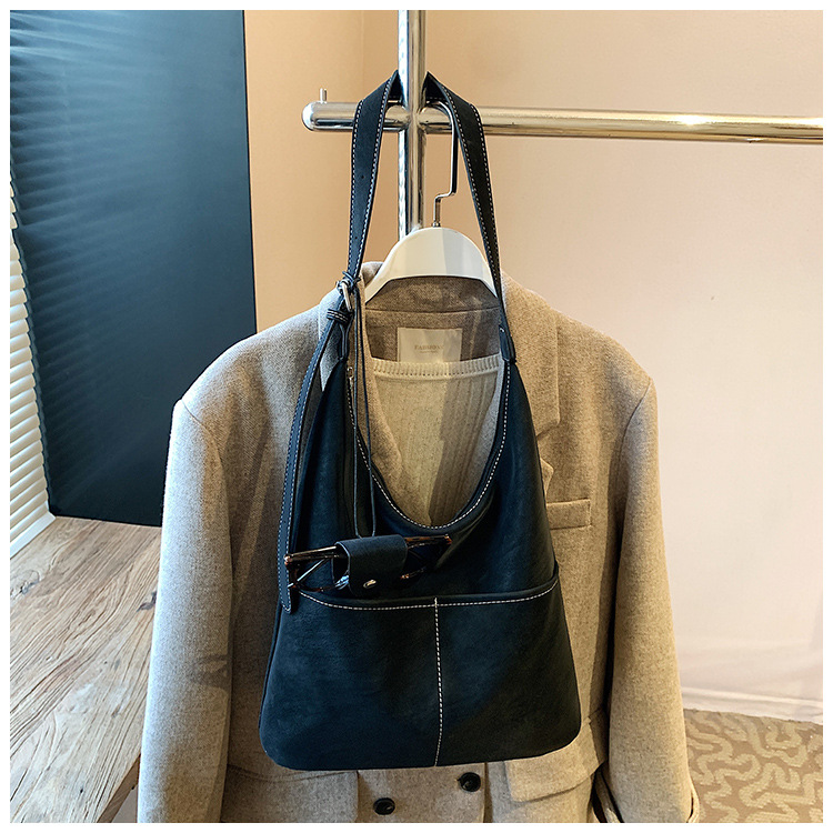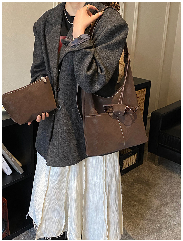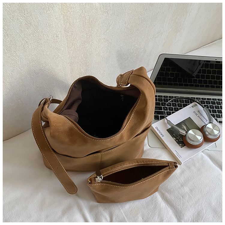 Bolsa de hombro coreana de estilo extranjero de gamuz, bolso de vestir, bolso inferior de mujer otoño-invierno 2025, nuevo nicho retro bolso de cubo de transporte
