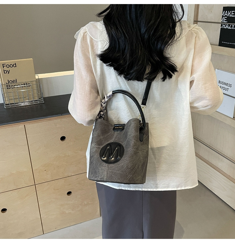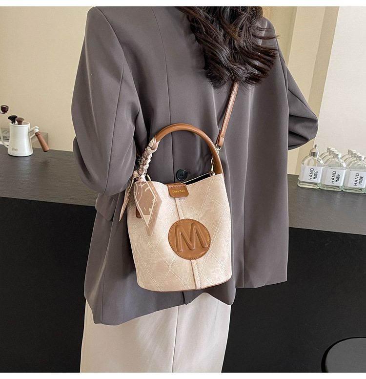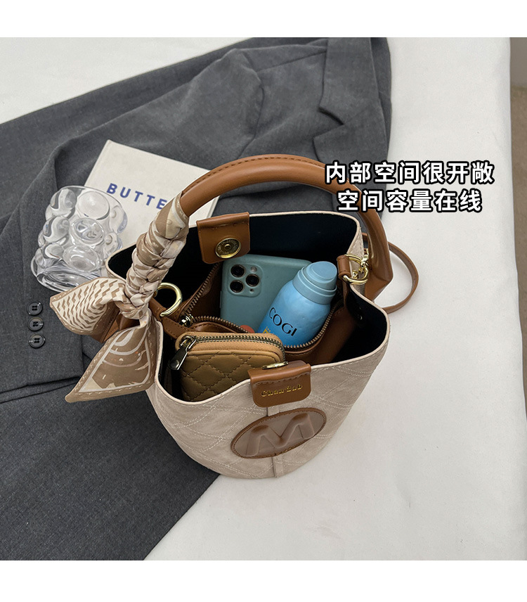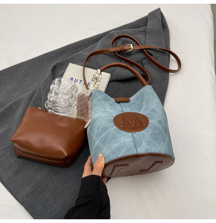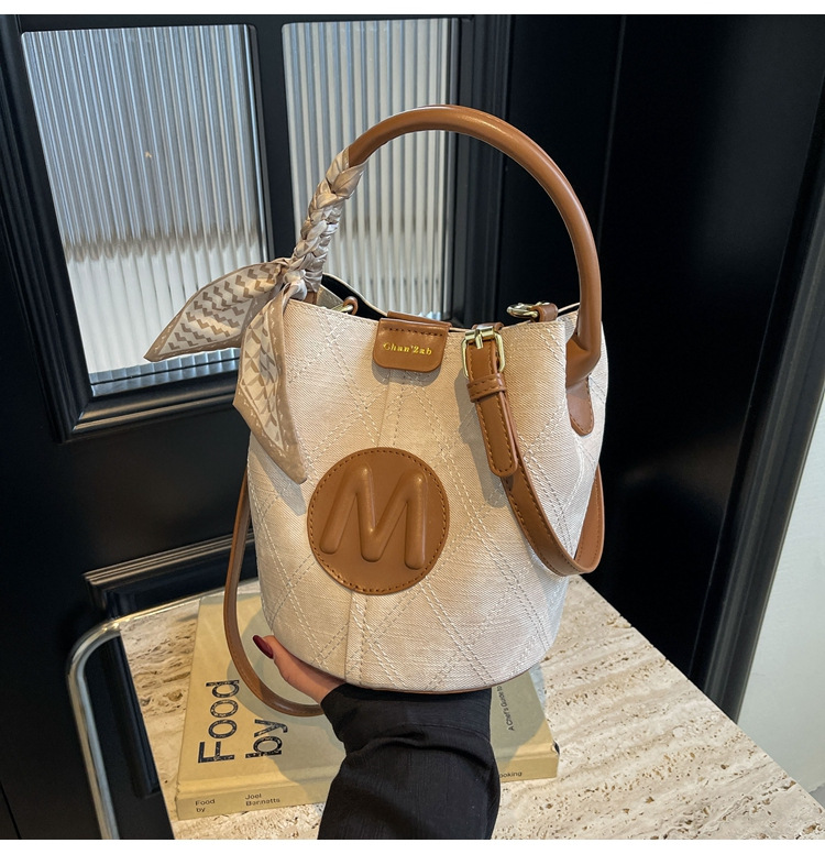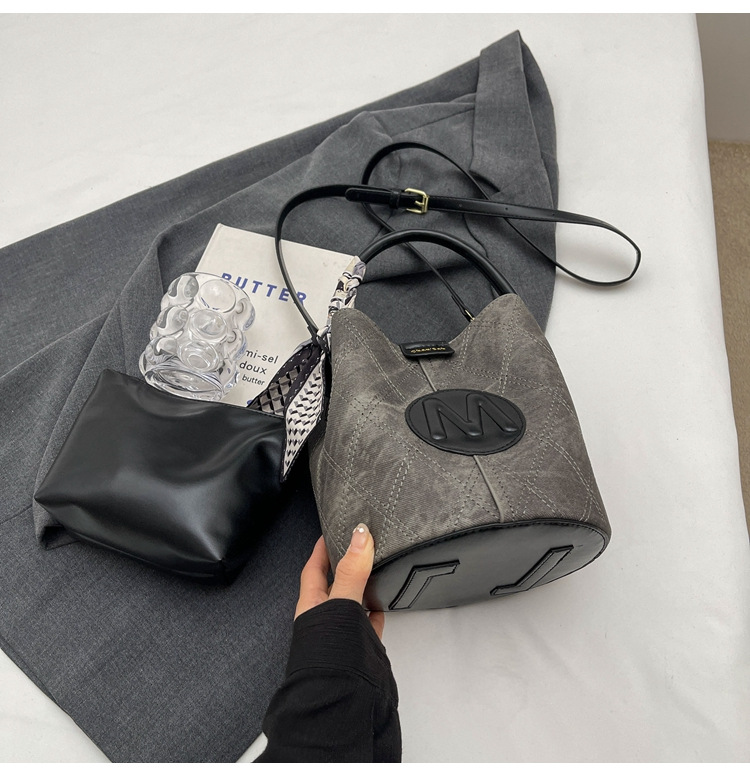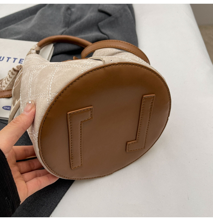 Bolso de cubo para mujer 2025 nuevo bolso de mano de estilo explosivo de color en contraste transfronterizo de moda bolso de mensajero de un solo hombro con textura de alta gama retro