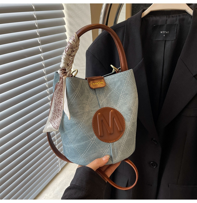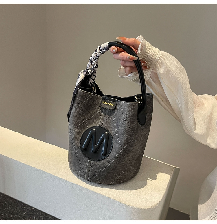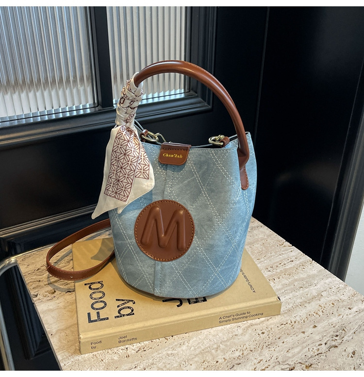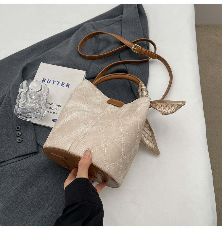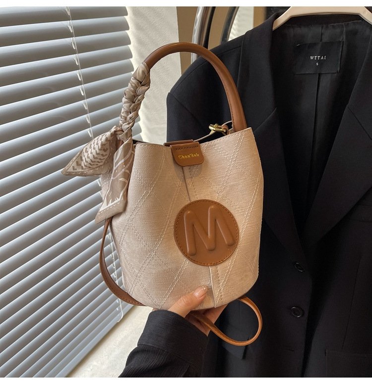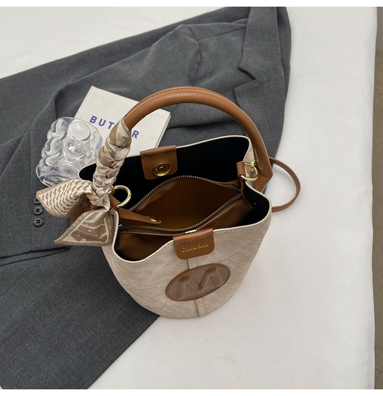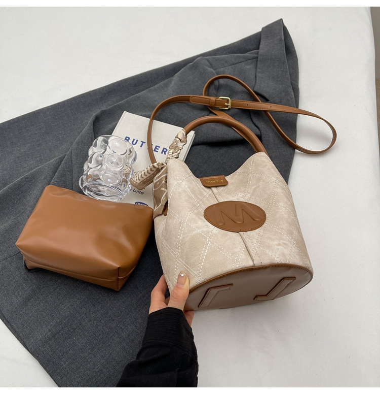 Bolso de cubo para mujer 2025 nuevo bolso de mano de estilo explosivo de color en contraste transfronterizo de moda bolso de mensajero de un solo hombro con textura de alta gama retro