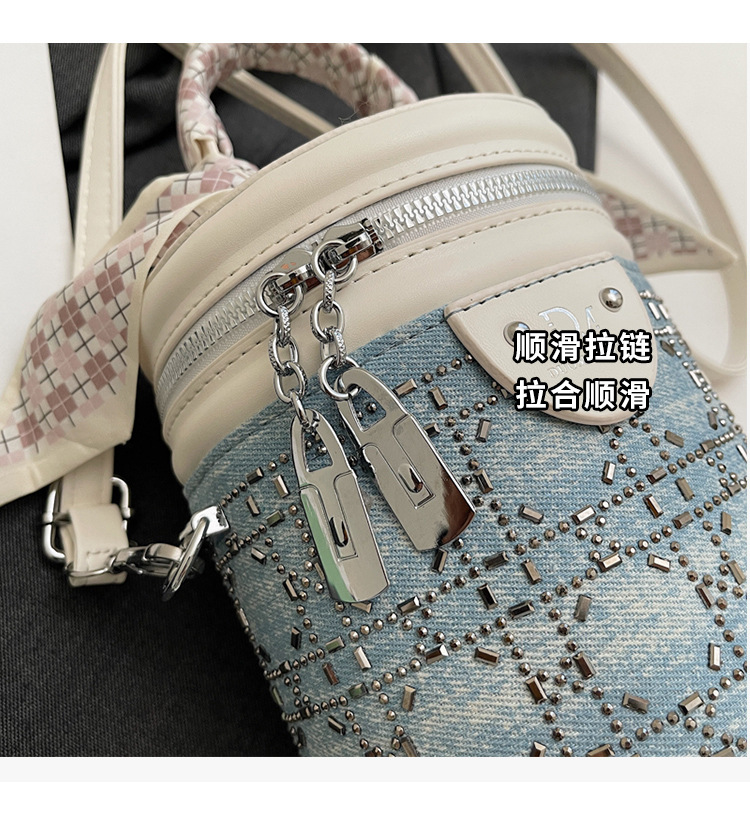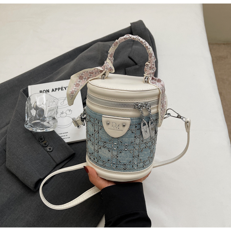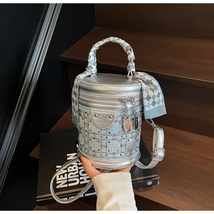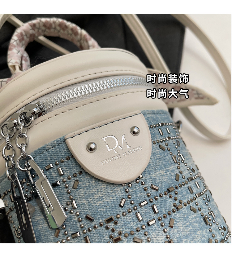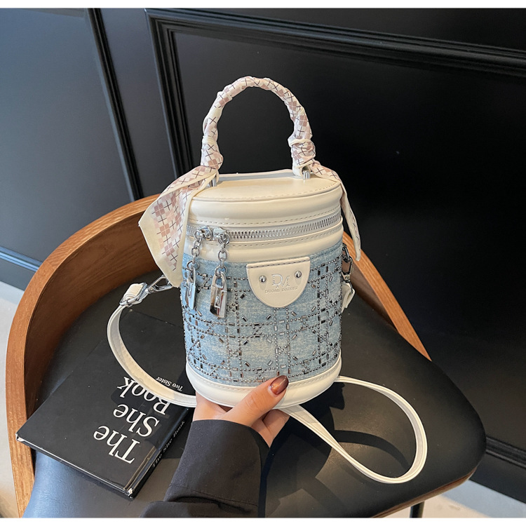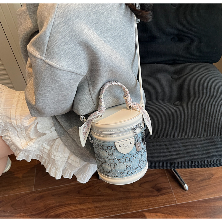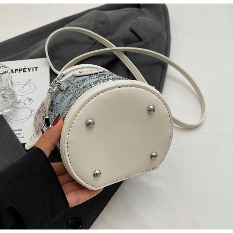 Bolso de cubo de mano de diamantes calientes de nicho popular de verano para mujer 2025 nuevo bolso de hombro de estilo occidental de moda bolso de mensajero de estilo explosivo