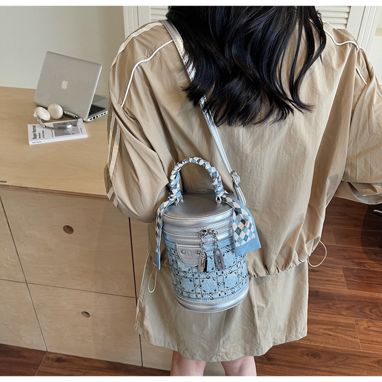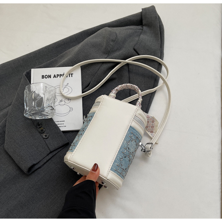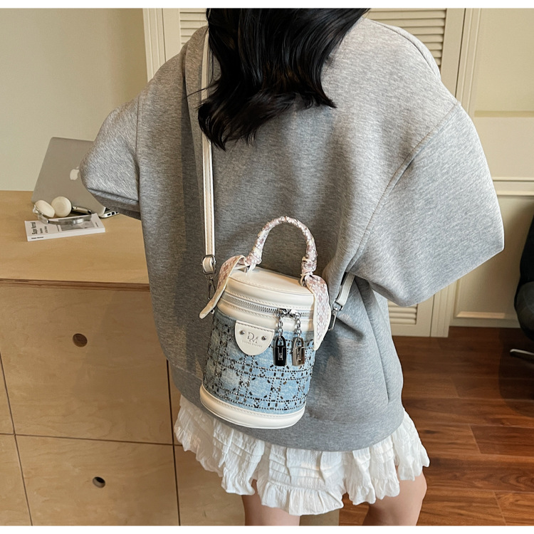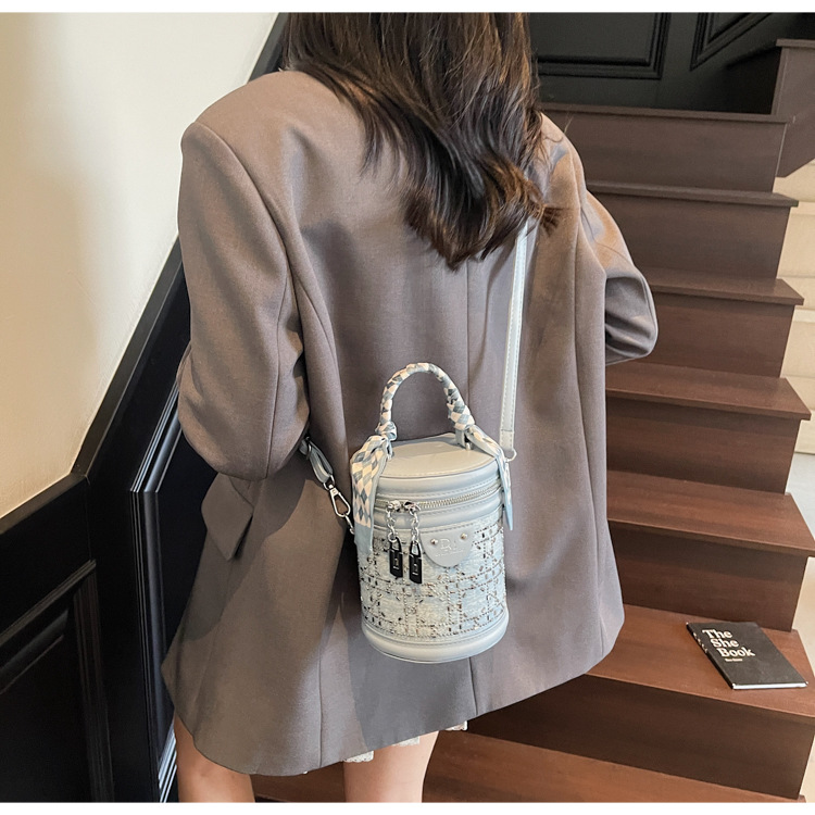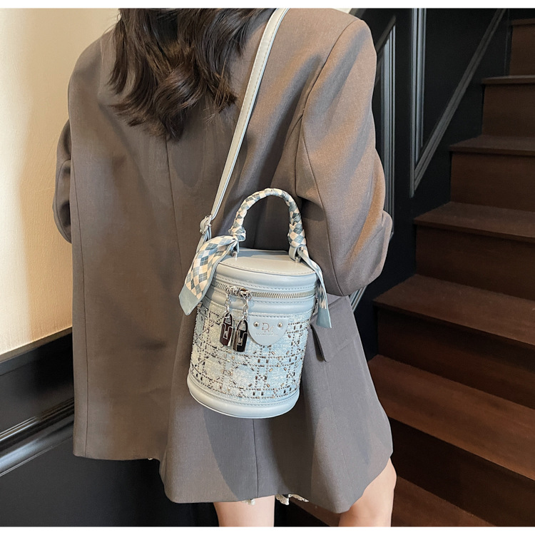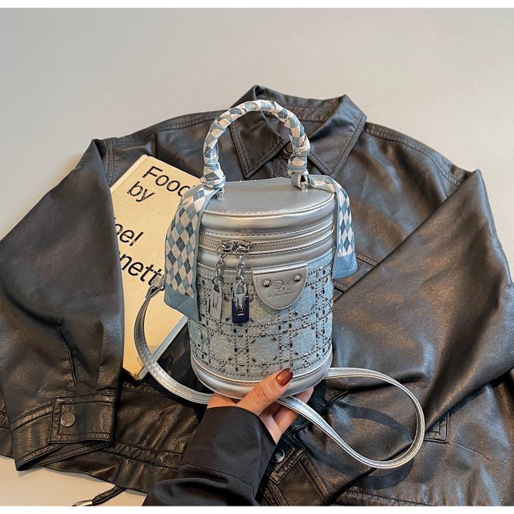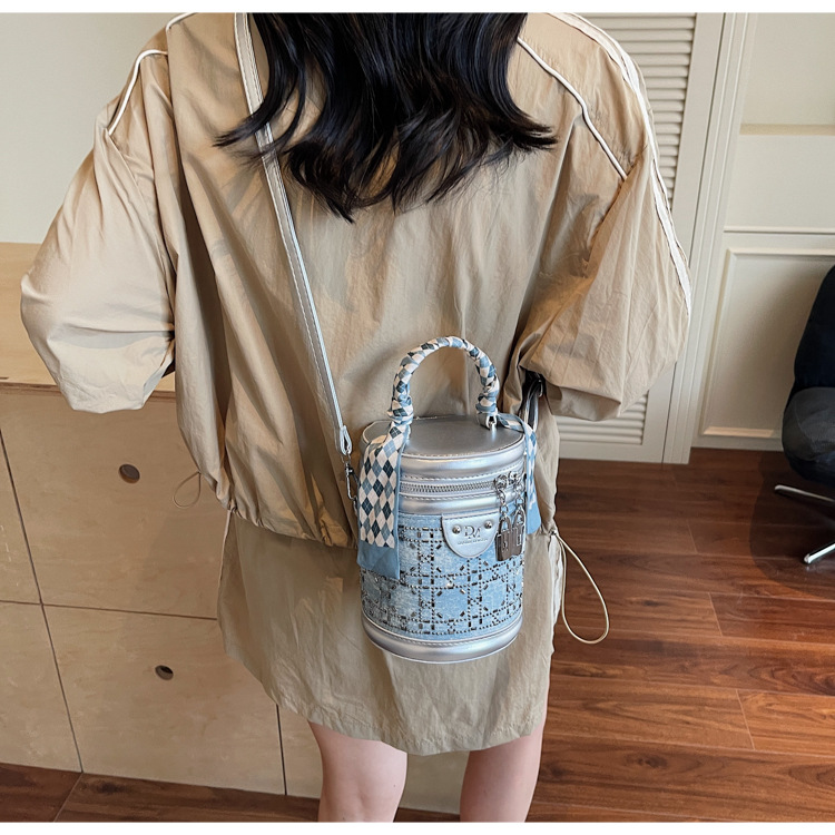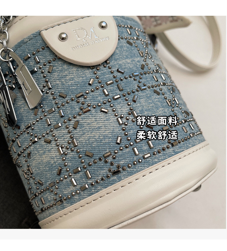 Bolso de cubo de mano de diamantes calientes de nicho popular de verano para mujer 2025 nuevo bolso de hombro de estilo occidental de moda bolso de mensajero de estilo explosivo